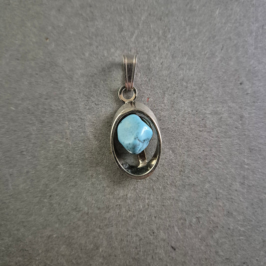 Ovaler Anhänger mit Türkis-Stein – Vintage-Stil in Silberoptik