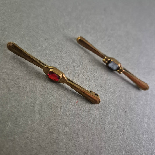 Vintage Broschennadel-Set mit roten und blauen Schmucksteinen