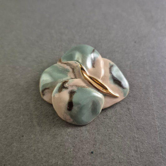 Handgefertigte Keramikbrosche – Blumendesign in Pastelltönen