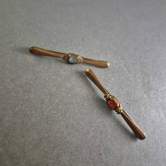 Set aus zwei Vintage-Broschen – Schlanke Form mit Farbsteinen