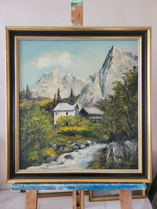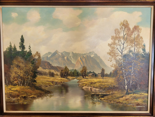 Ölgemälde Gemälde Landschaft M. Vcelak (XX) Berglandschaft Fluss
