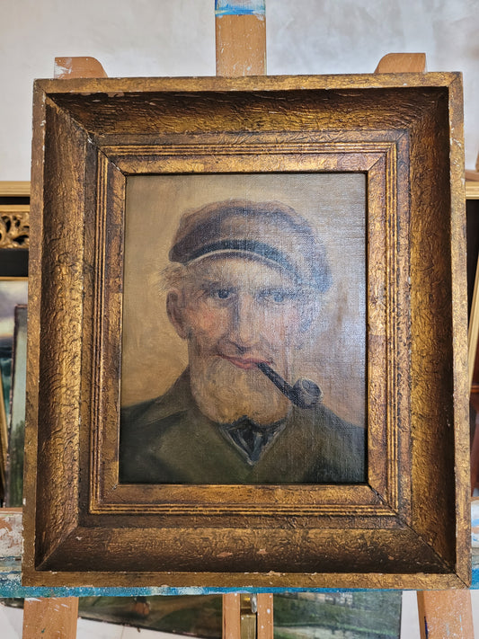 Ölgemälde (XX) Bärtiger Holländischer Mann mit Pfeife 40x33cm