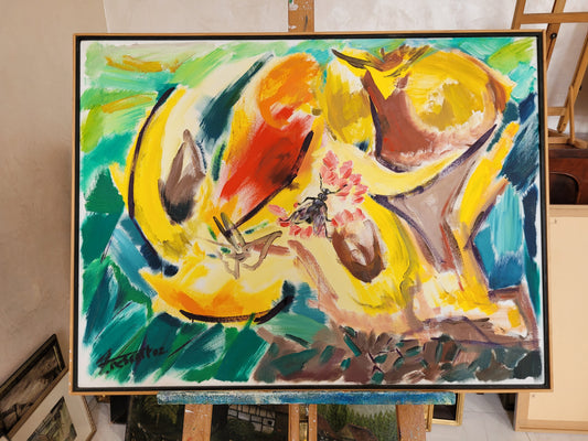 Arno Tresselt (XX) Ölgemälde Abstrakte Kunst mit Tiermotiven