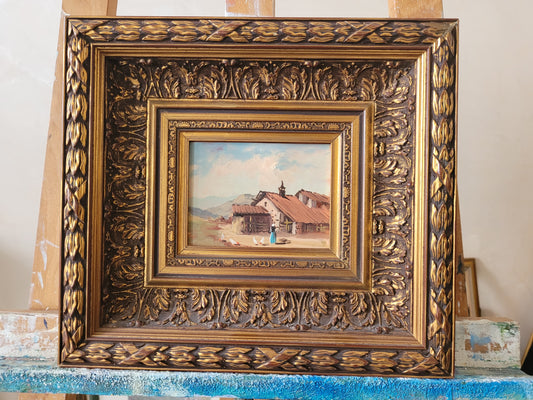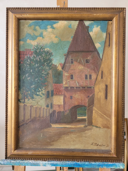 Ölgemälde Gemälde Karl Schäfer (1888-1956) Dorf mit Stadttor 60x50cm