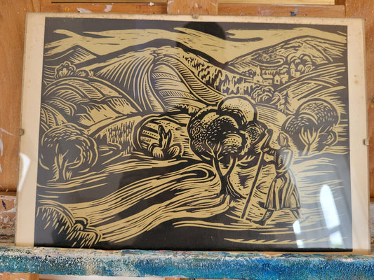 Japan (XX) Original Holzschnitt, Expressive Landschaft