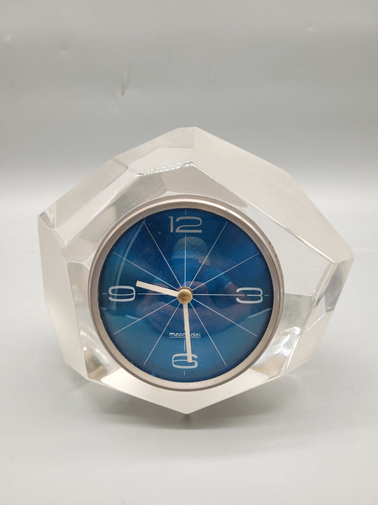 Vintage Mercedes Tischuhr aus Glas und Kristall (70er Jahre)