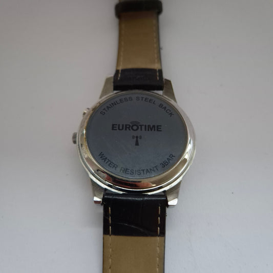 Elegante Eurotime Herrenarmbanduhr – Schwarzes Zifferblatt mit Lederarmband