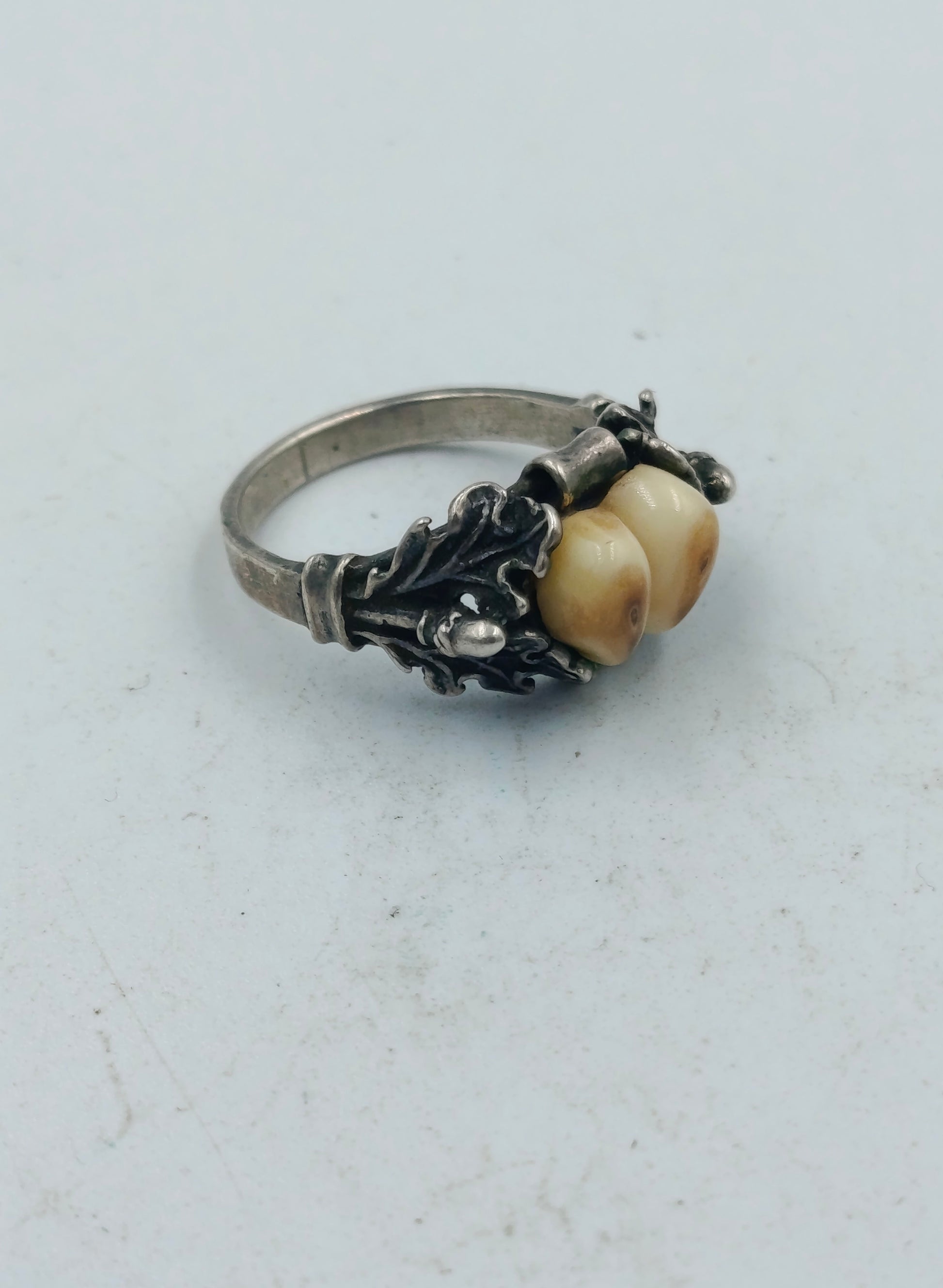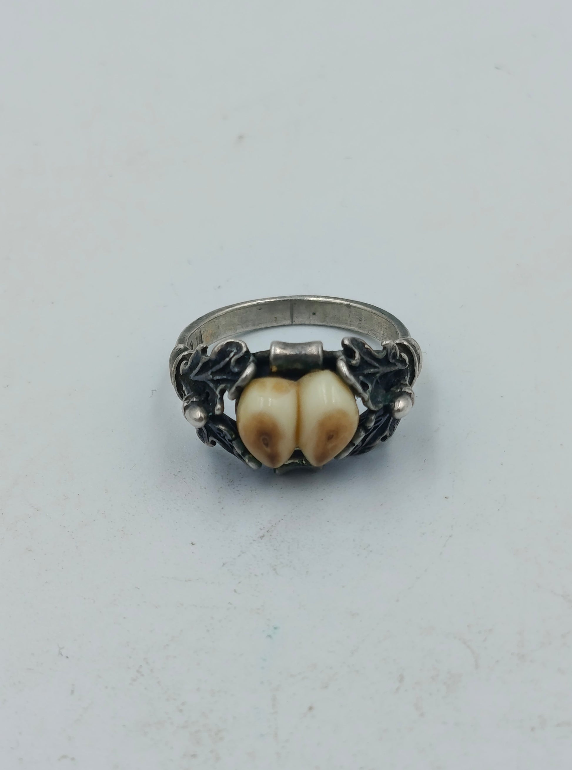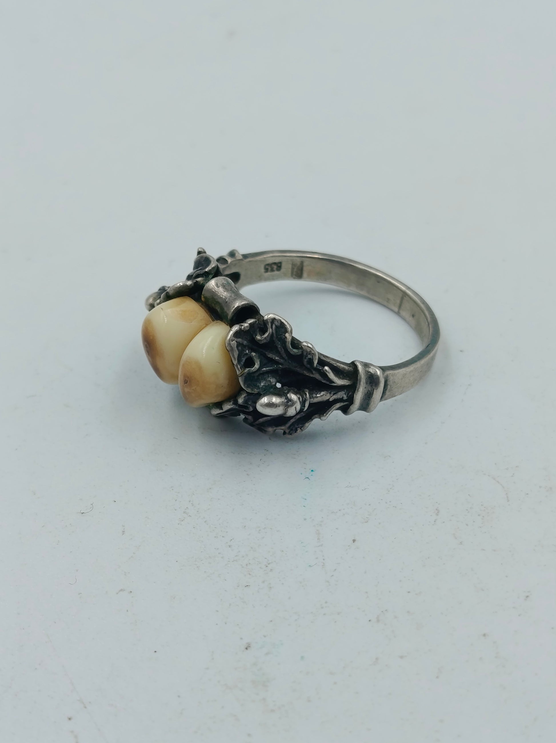835 Silberring mit Hirschzähnen Gr. 56 Jagdschmuck Vintage