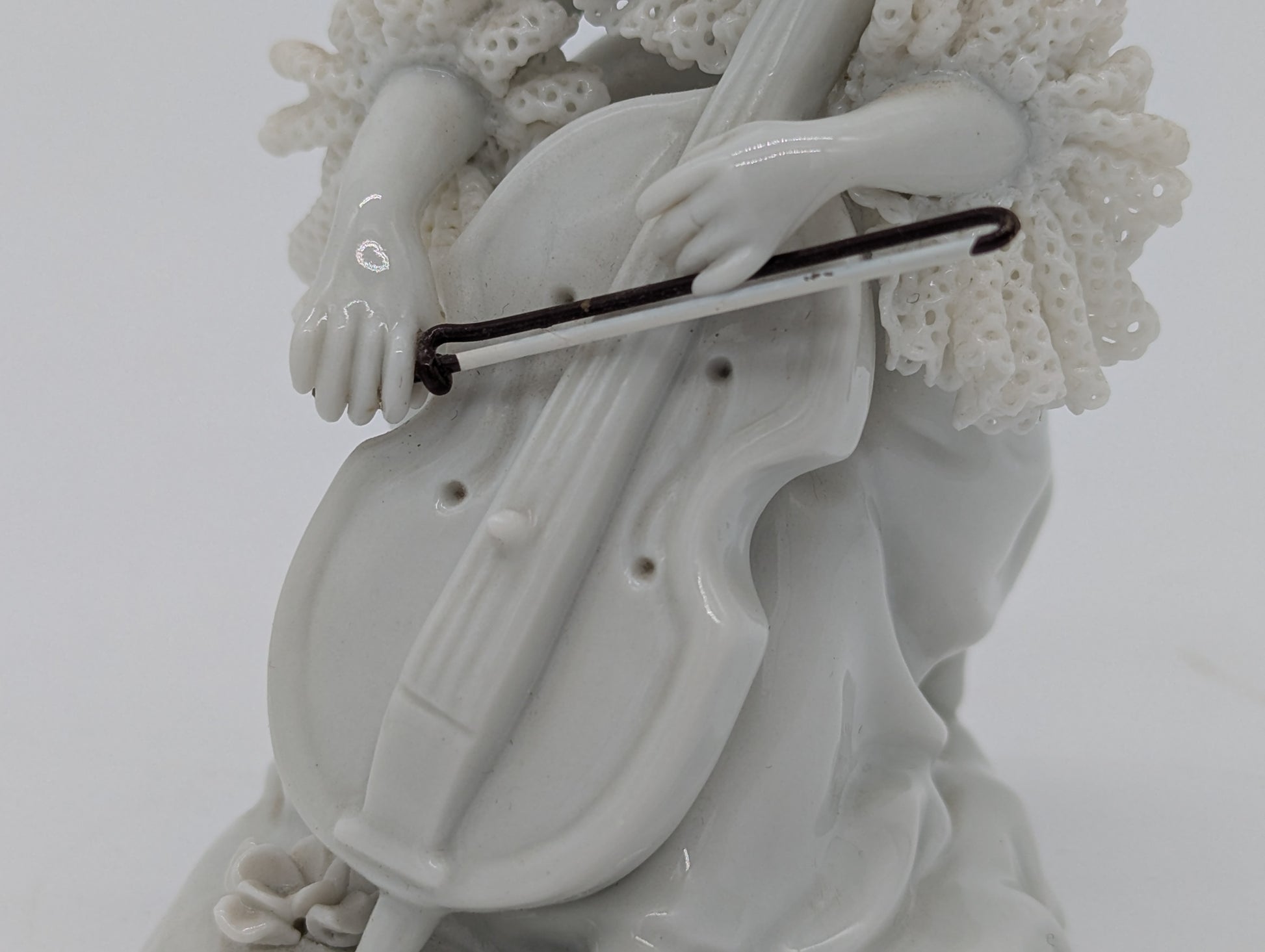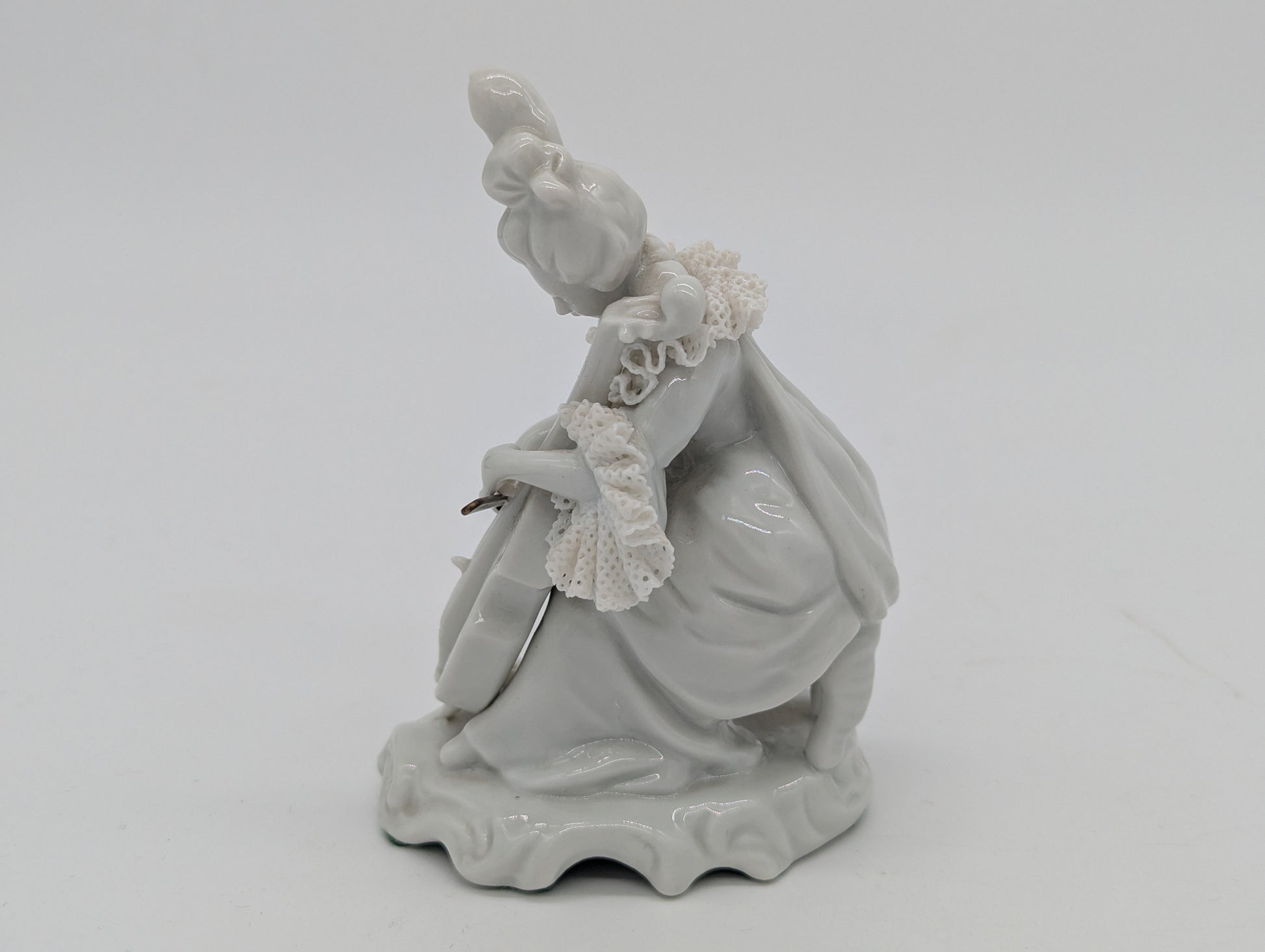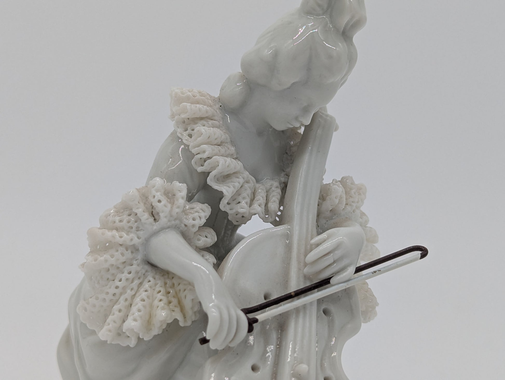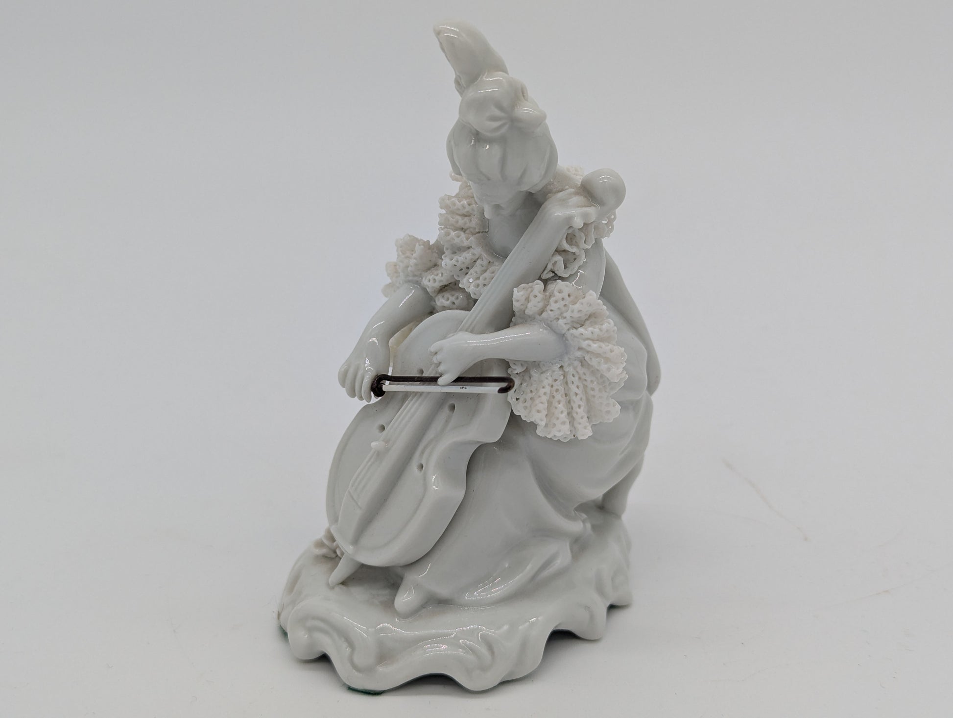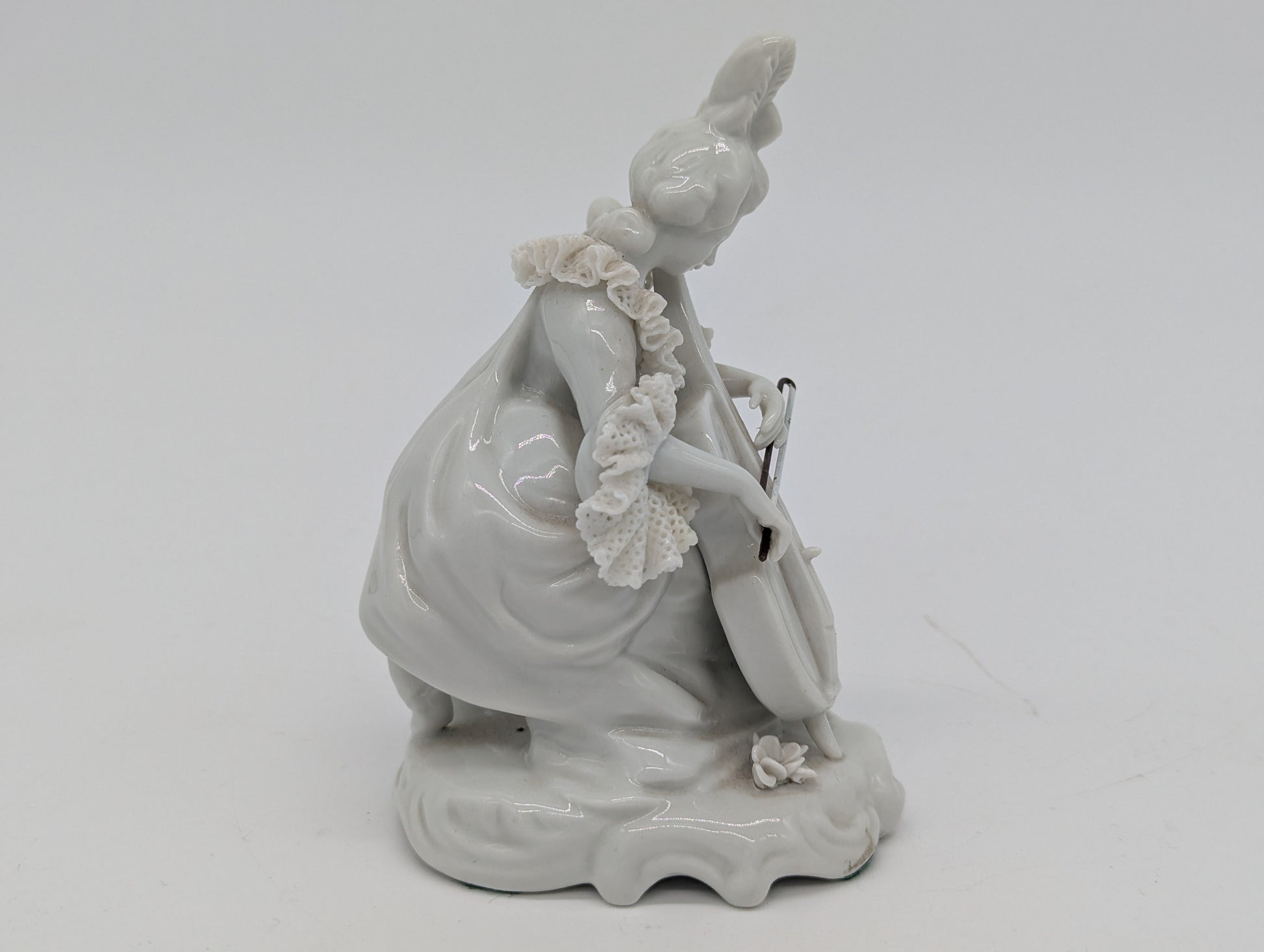 Aelteste Volkstedt Porzellanfigur Dame mit Cello Spitzenporzellan Figur