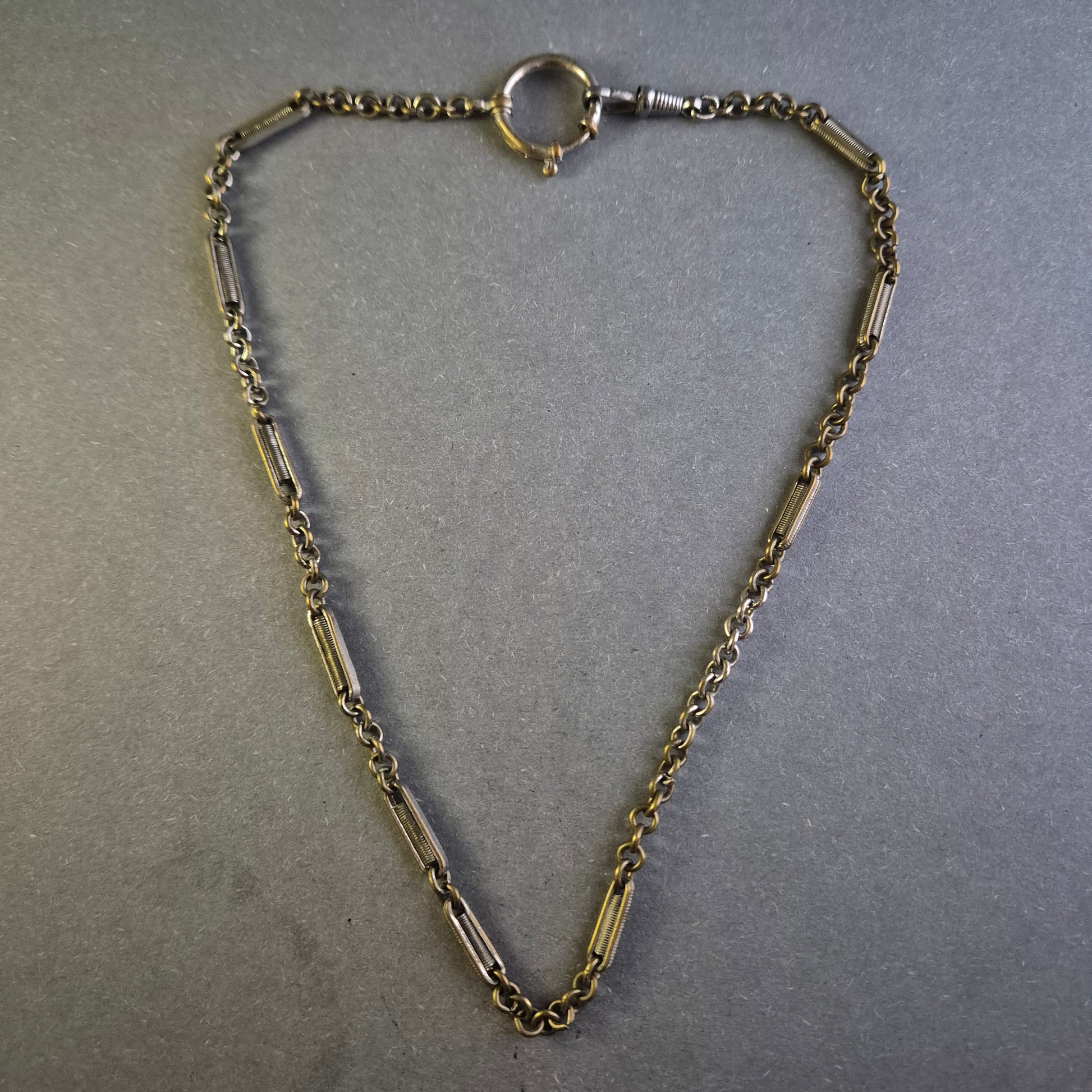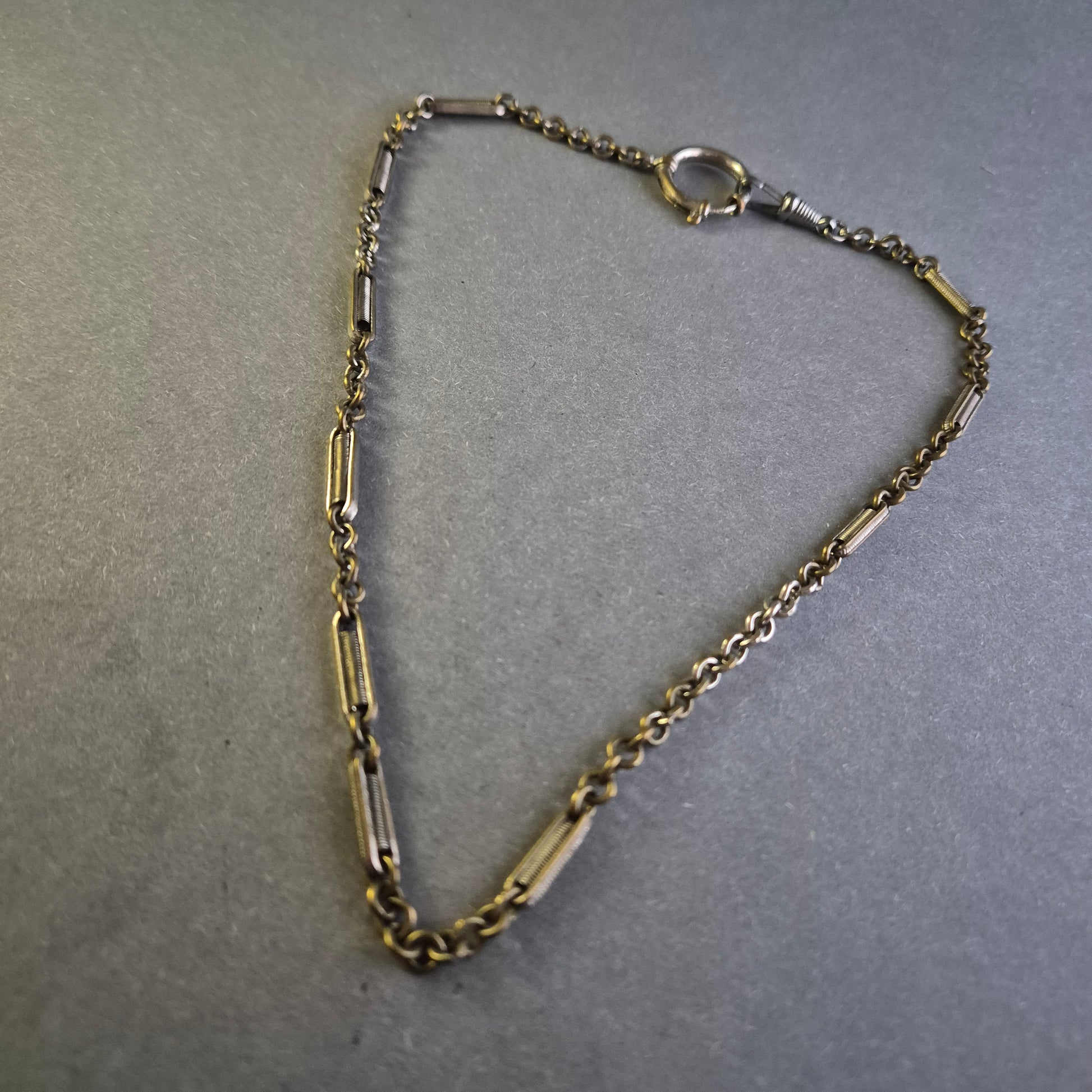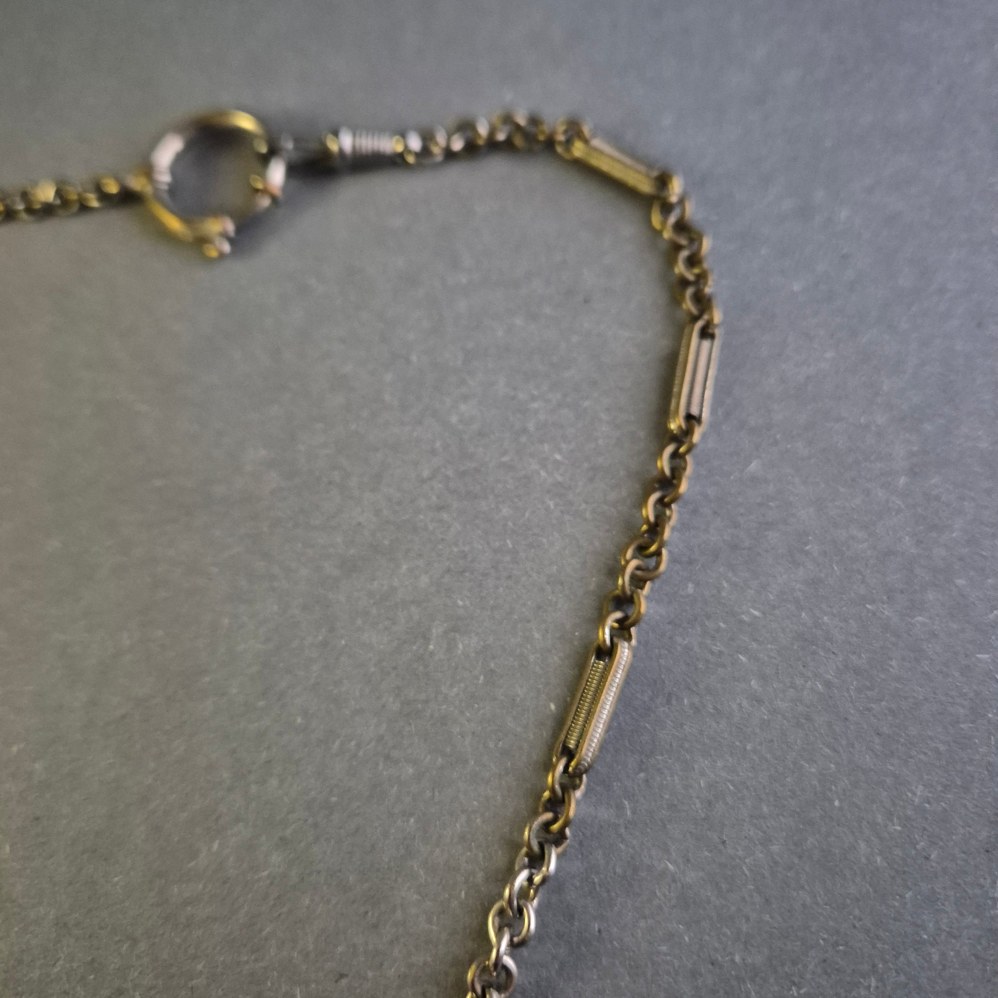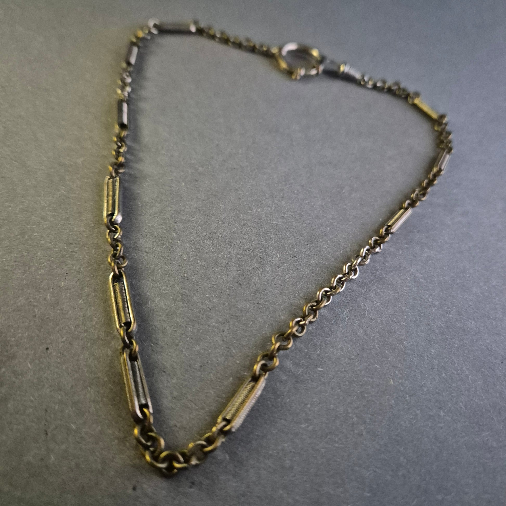 Diese antike Panzerkette überzeugt durch ihr robustes Design und ihre detailreiche Verarbeitung. Die massiven Glieder aus dunklem Metall verleihen ihr eine markante Optik, die sowohl elegant als auch zeitlos wirkt. Durch die stabile Machart und den klassischen Verschluss ist sie ideal für Liebhaber von Vintage- und Antikschmuck.