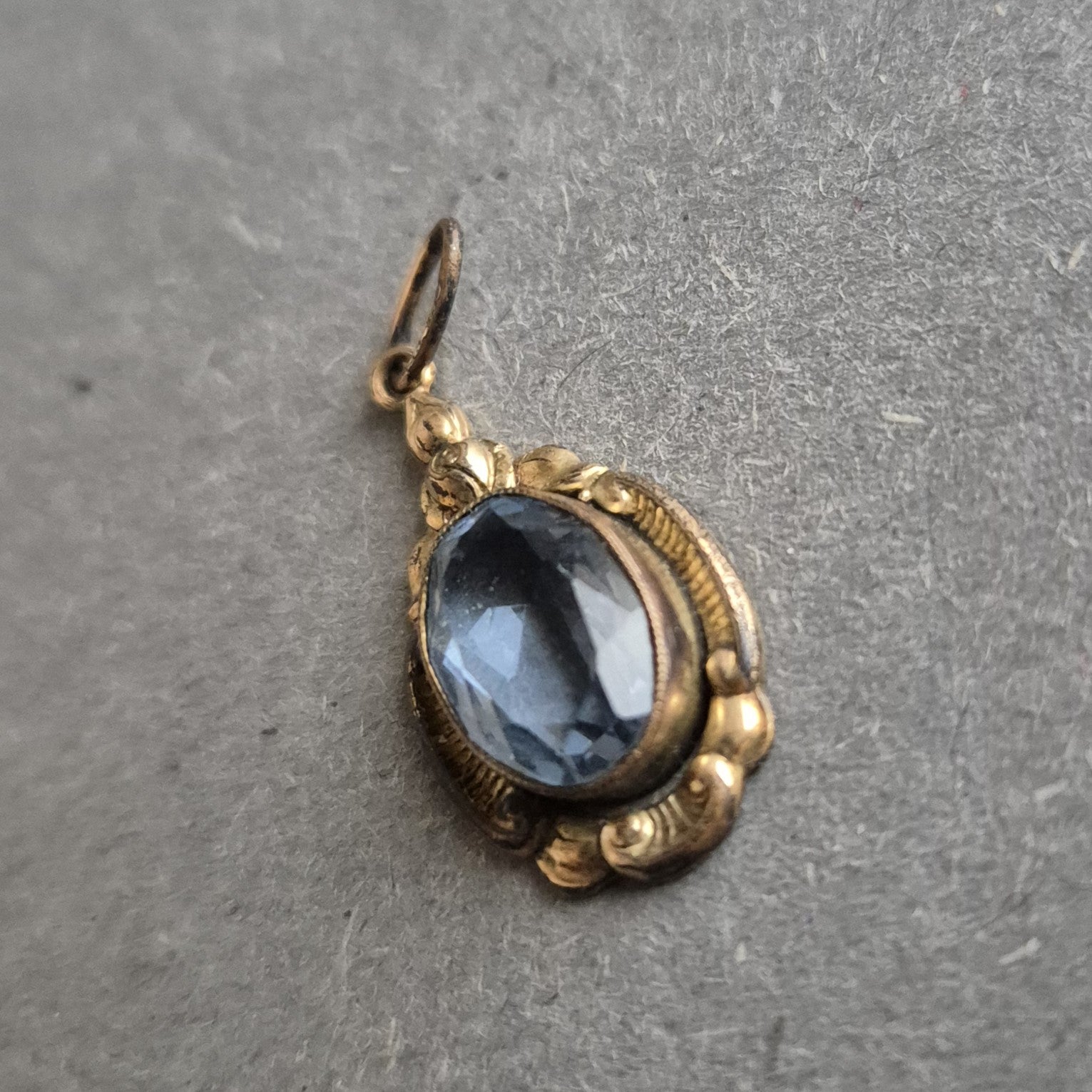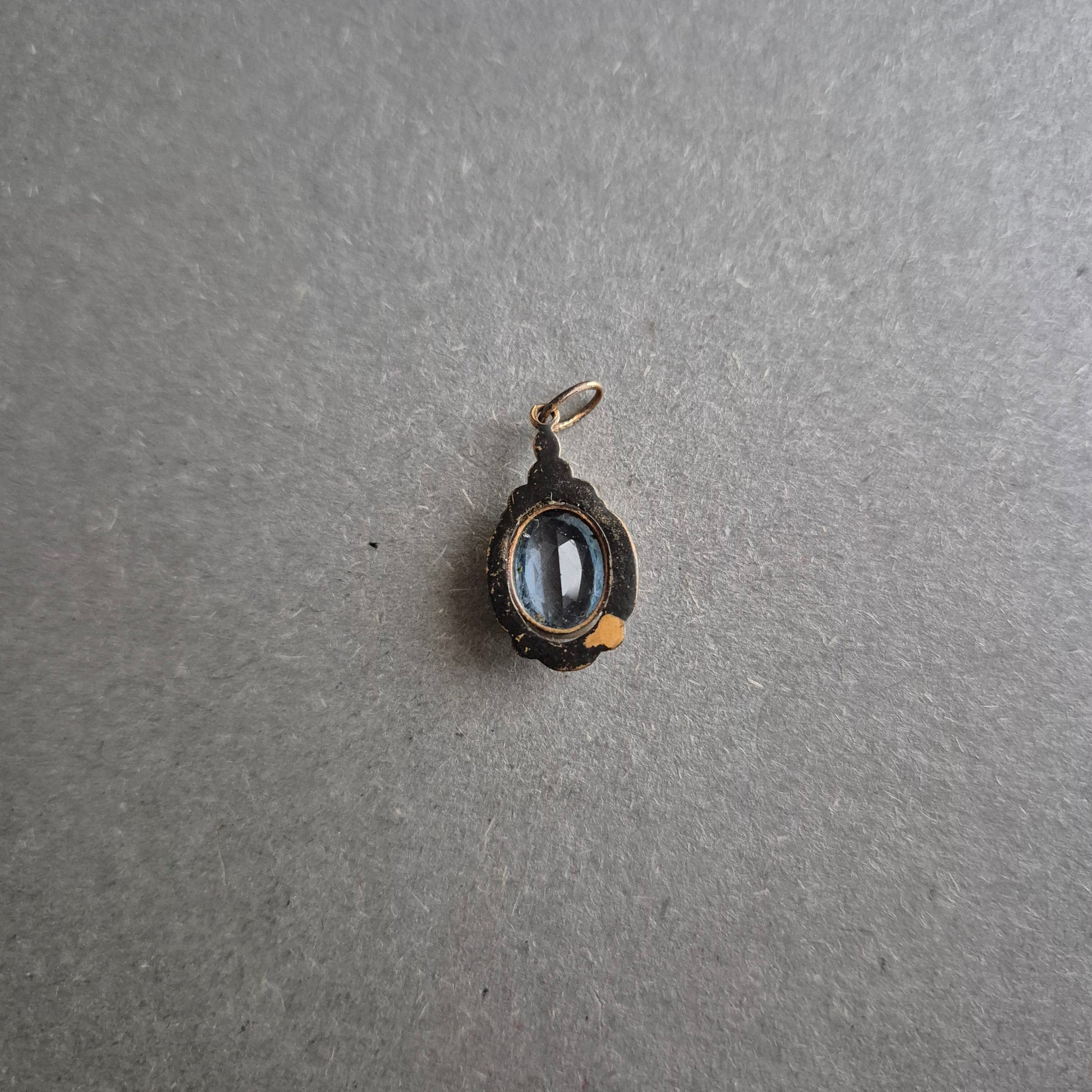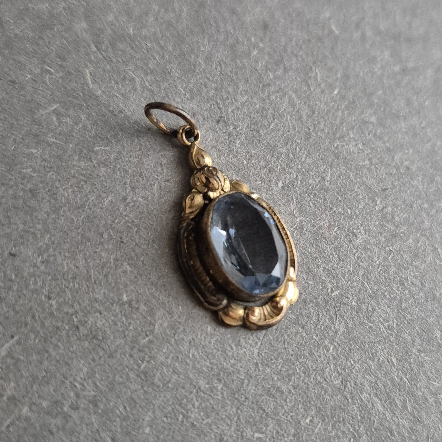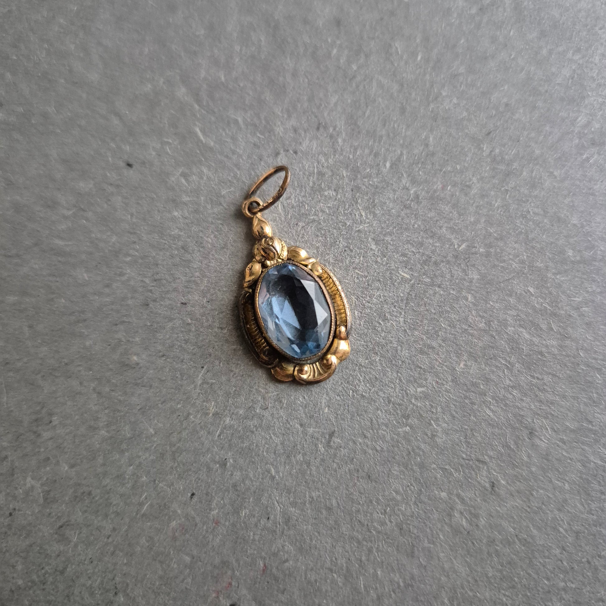 Antiker Anhänger mit blauem Glasstein – Florales Vintage-Design