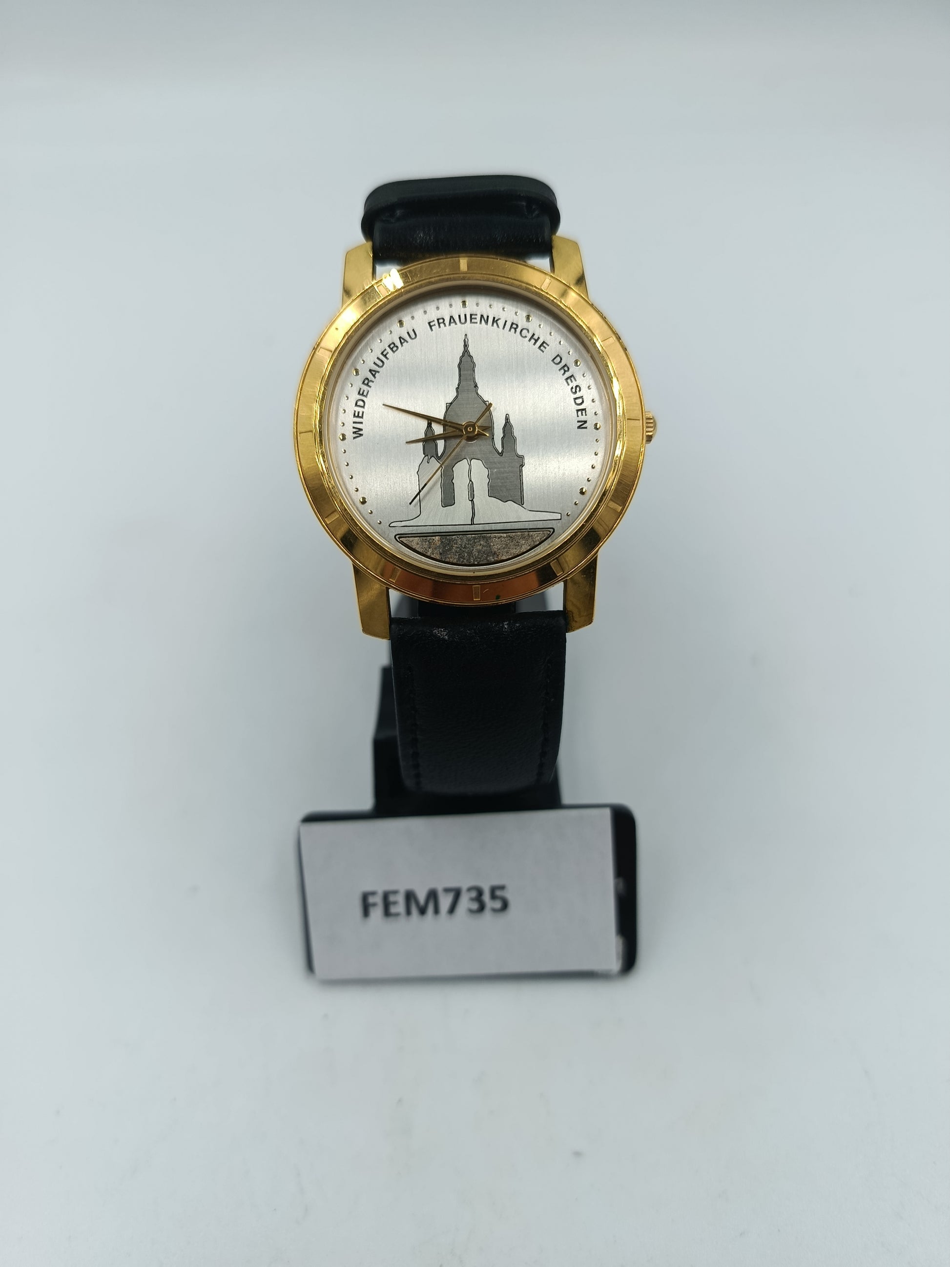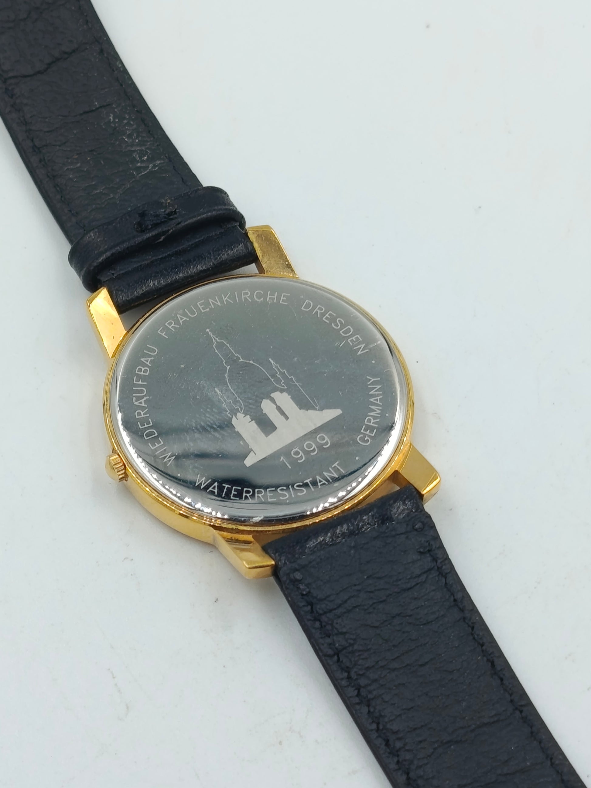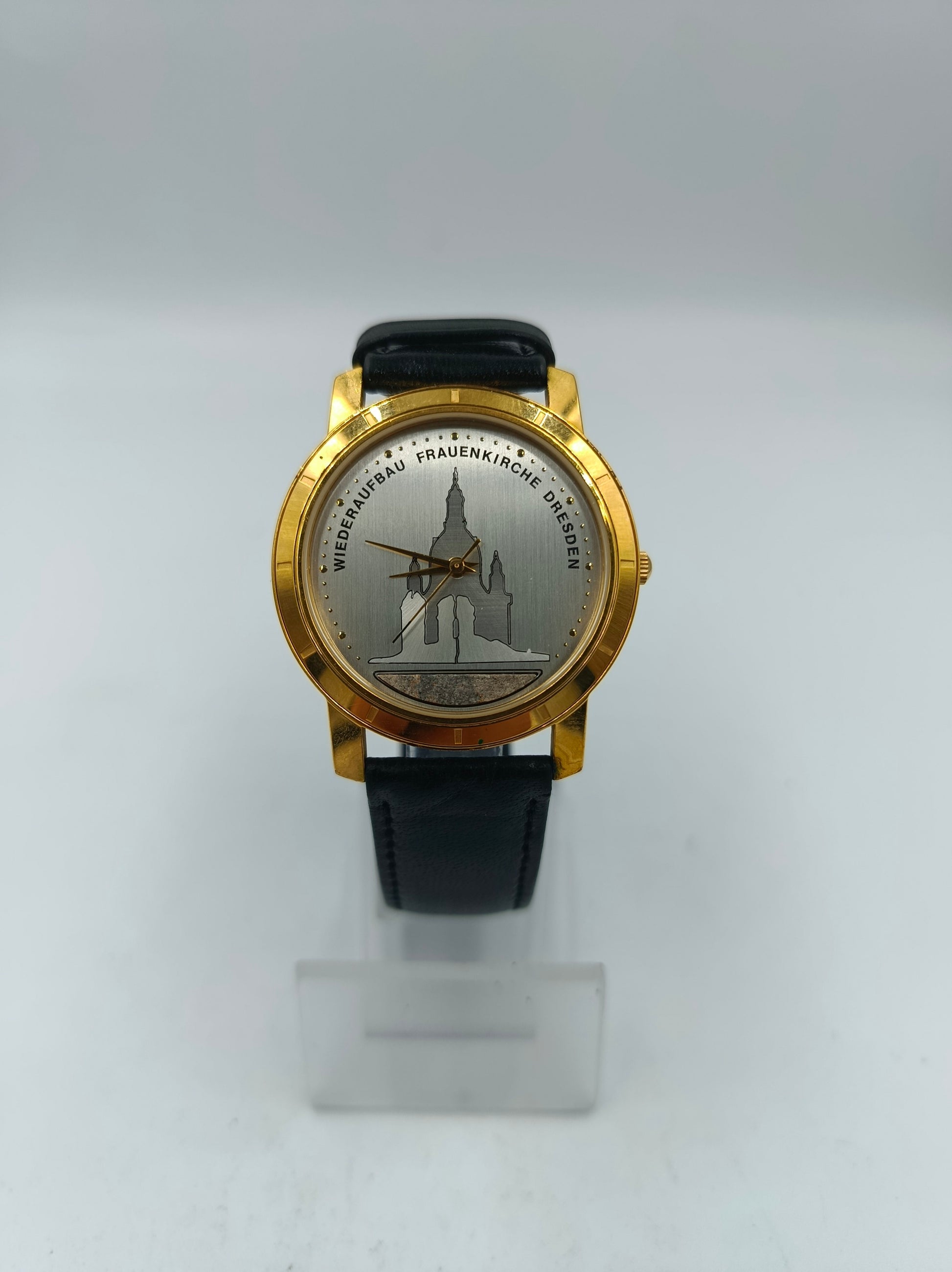 Armbanduhr Frauenkirche Dresden 1999 Goldfarben mit Lederband