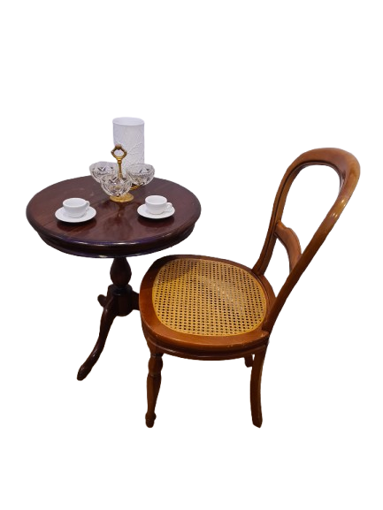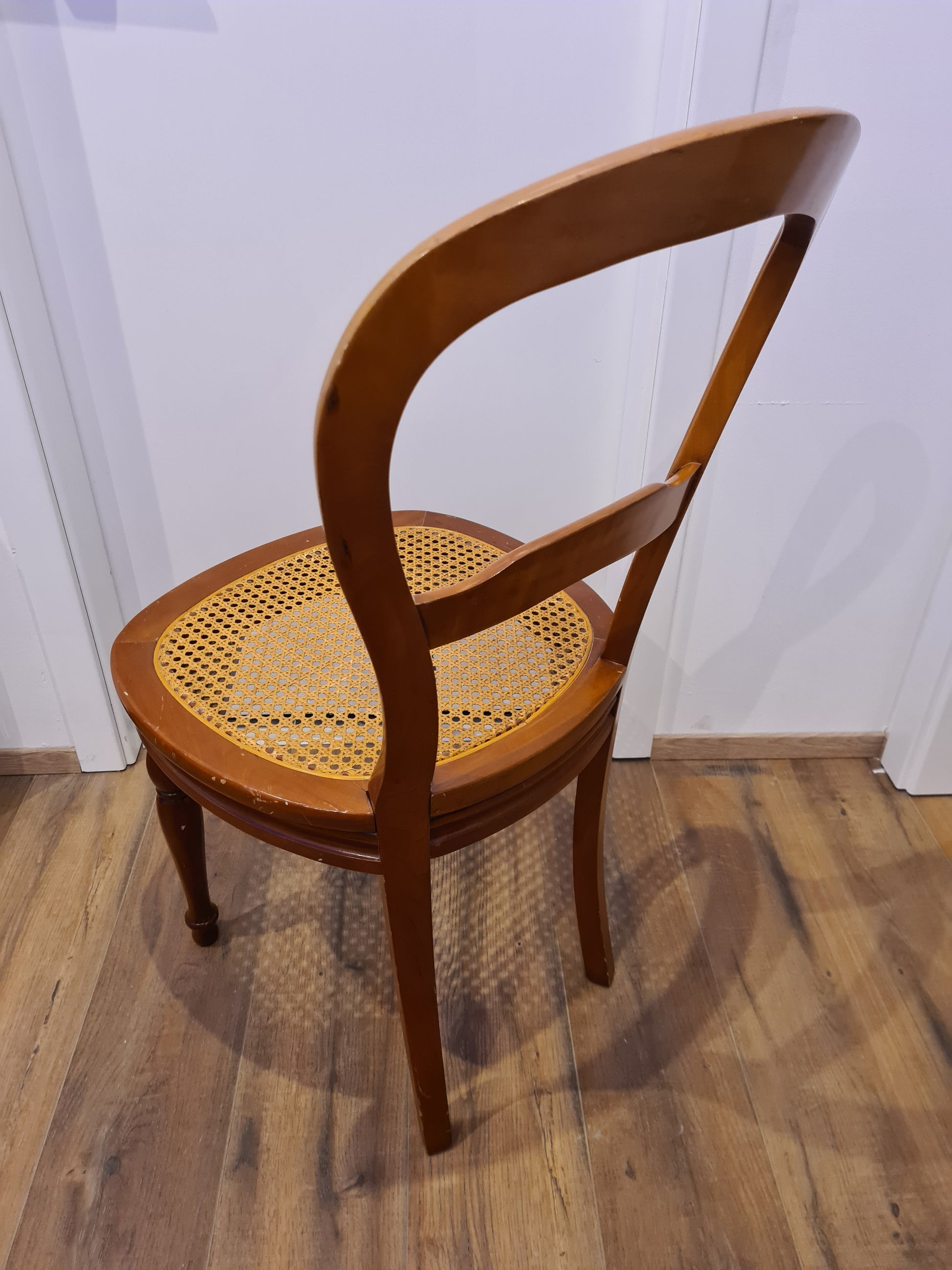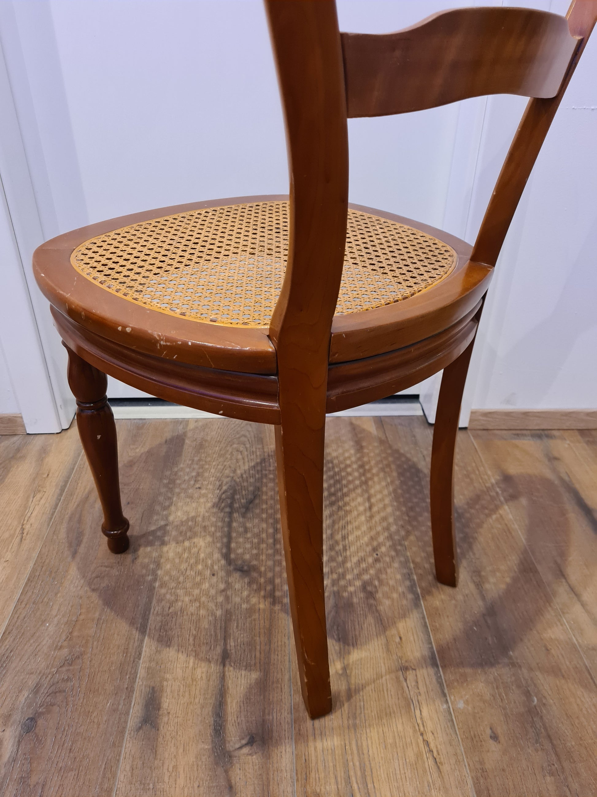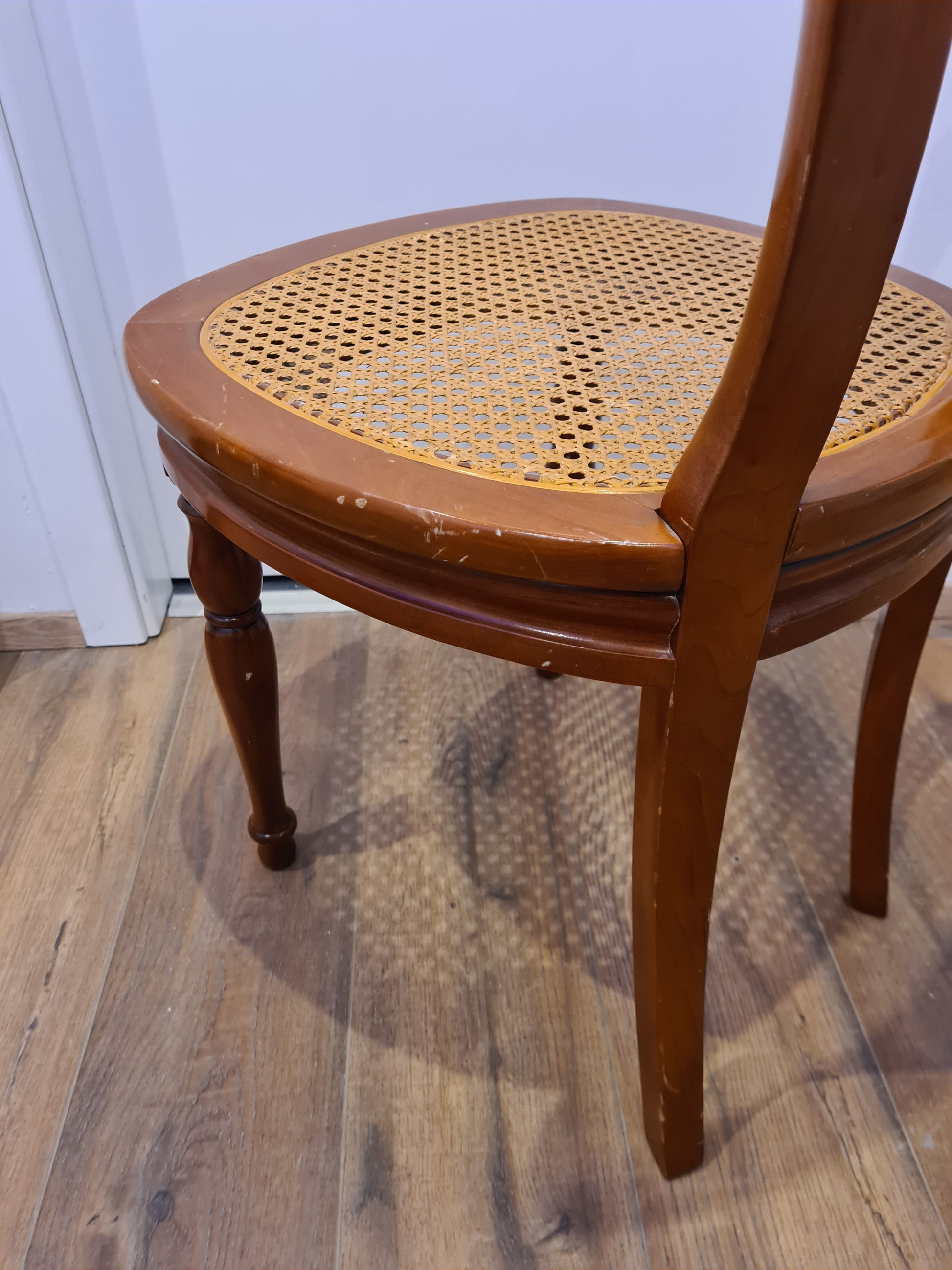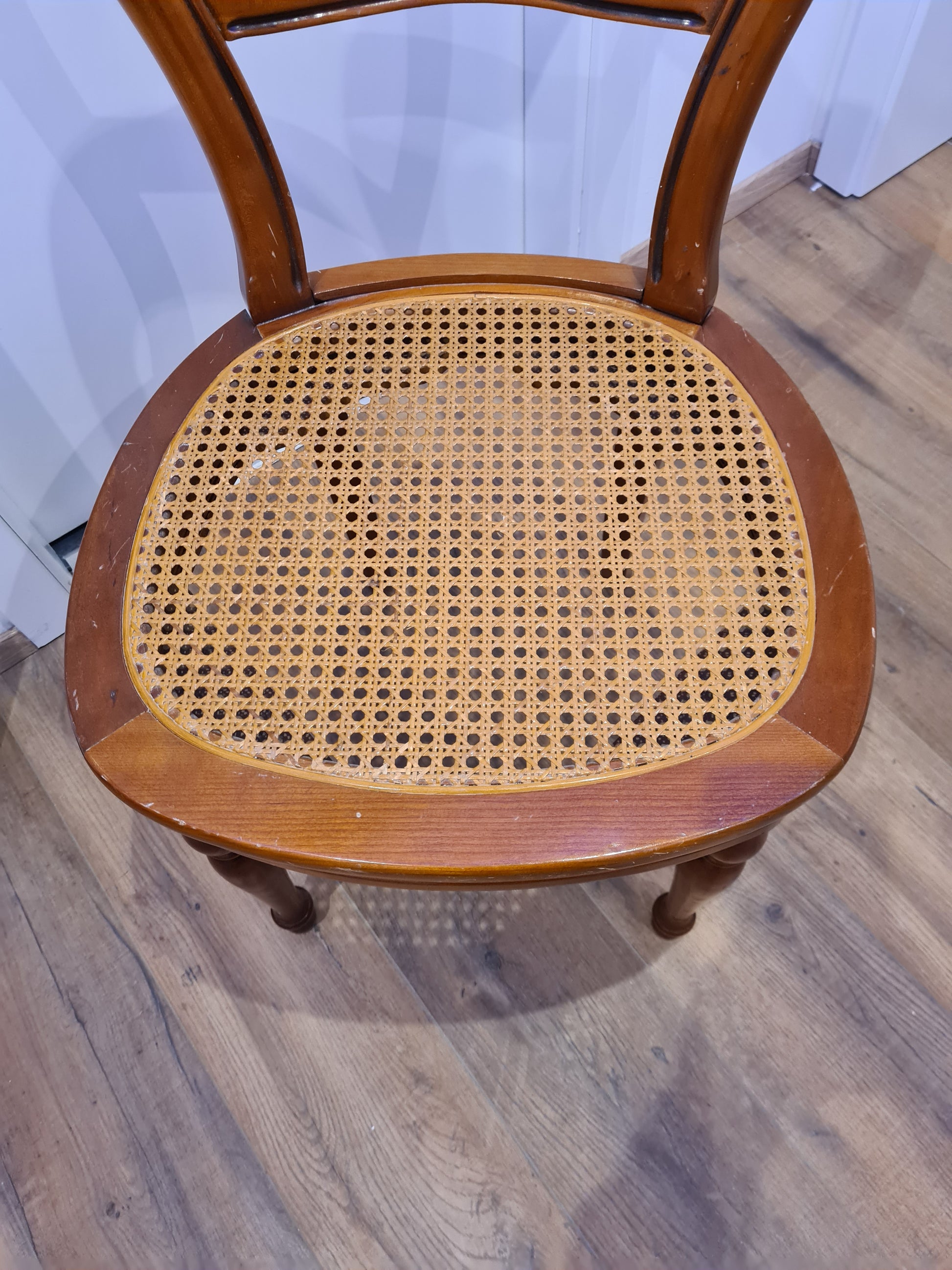 angeboten wird ein Barock-Stuhl aus Holz mit geflechteter Sitzfläche – ein elegantes und zeitloses Möbelstück.