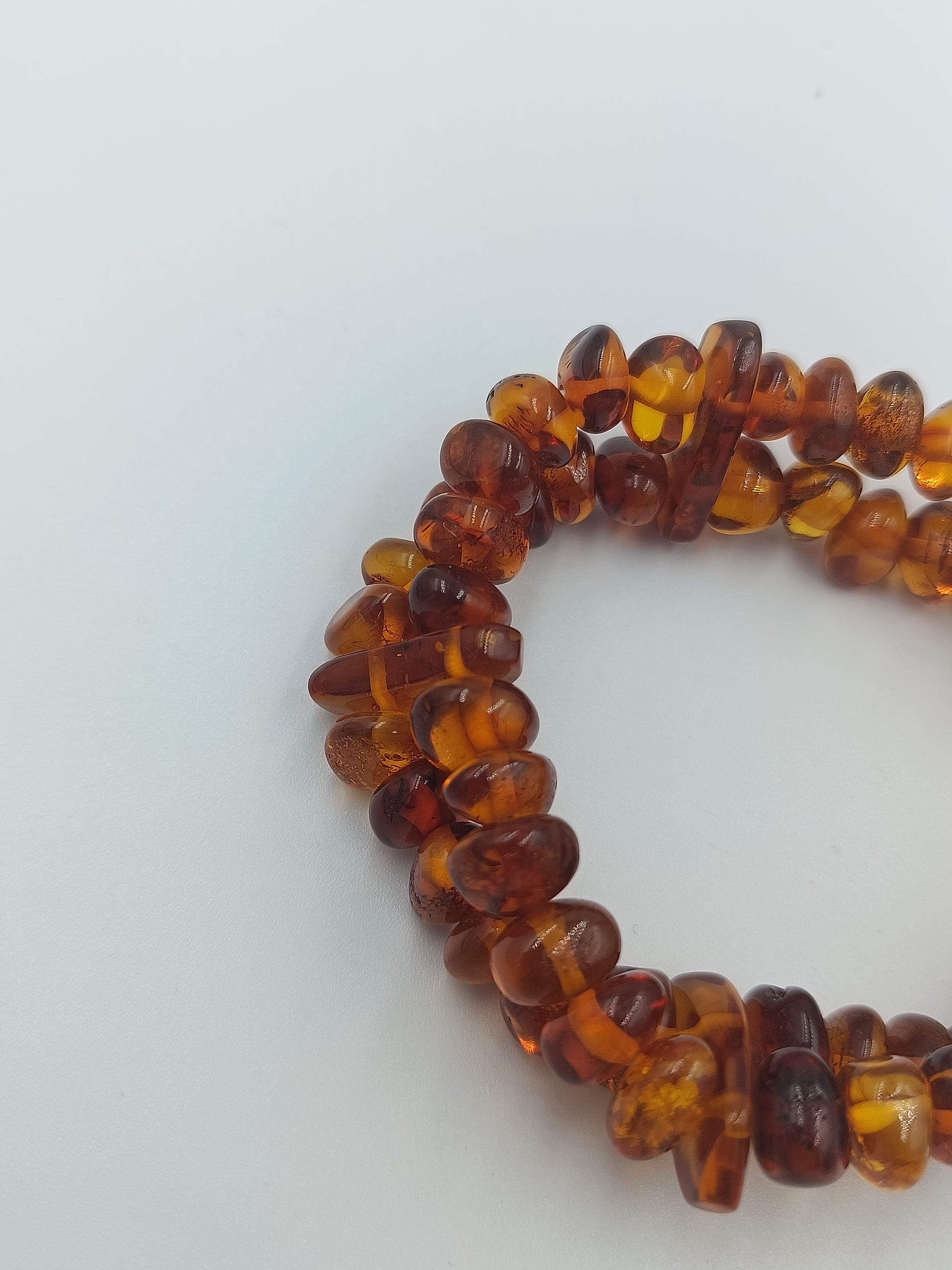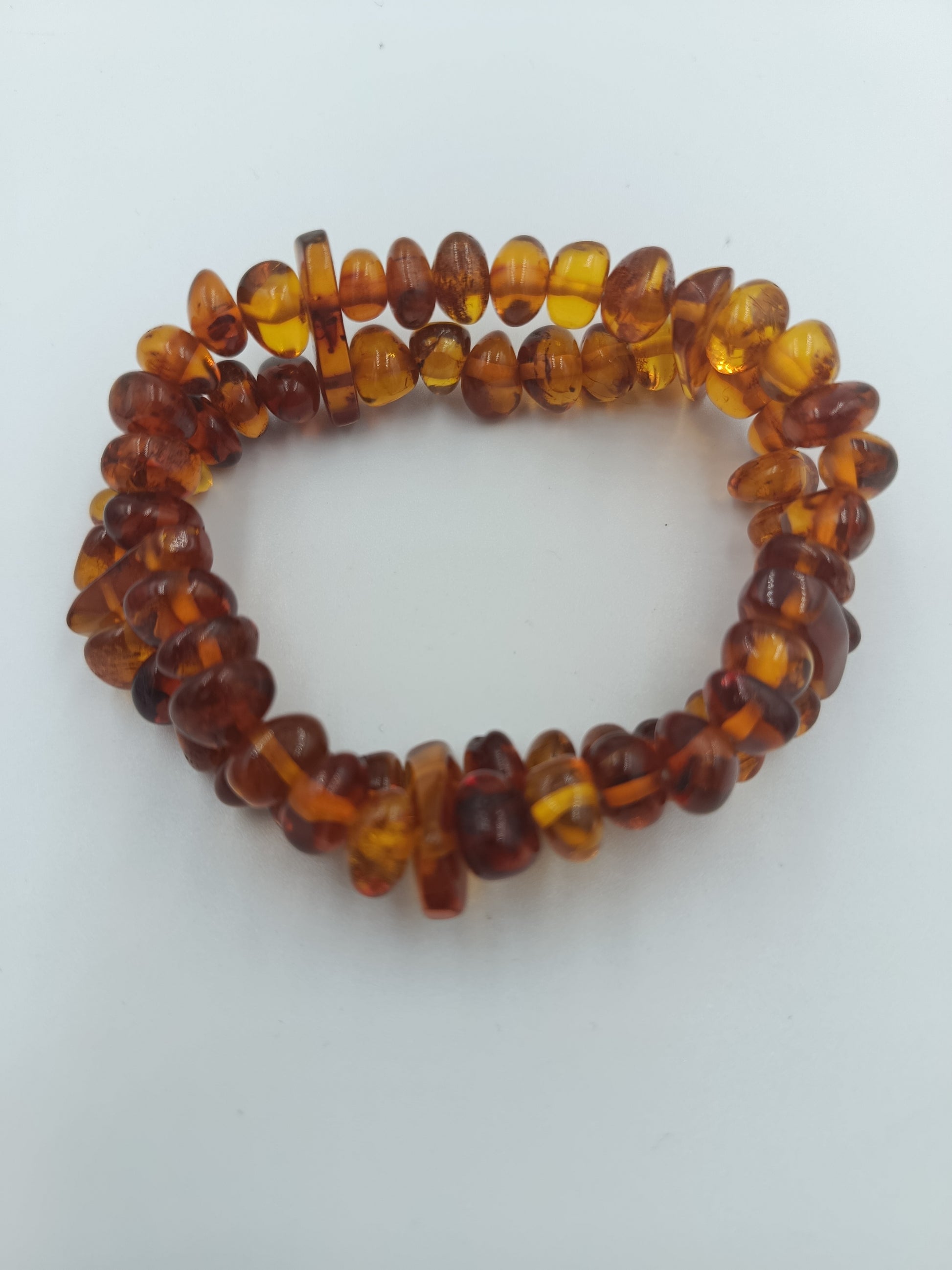 Dieses wunderschöne Armband besteht aus echten Bernsteinen in warmen Honig- und Cognac-Tönen. Die organische Form der Perlen verleiht dem Schmuckstück einen natürlichen, zeitlosen Charme. Durch das elastische Band ist es angenehm zu tragen und passt sich flexibel dem Handgelenk an.