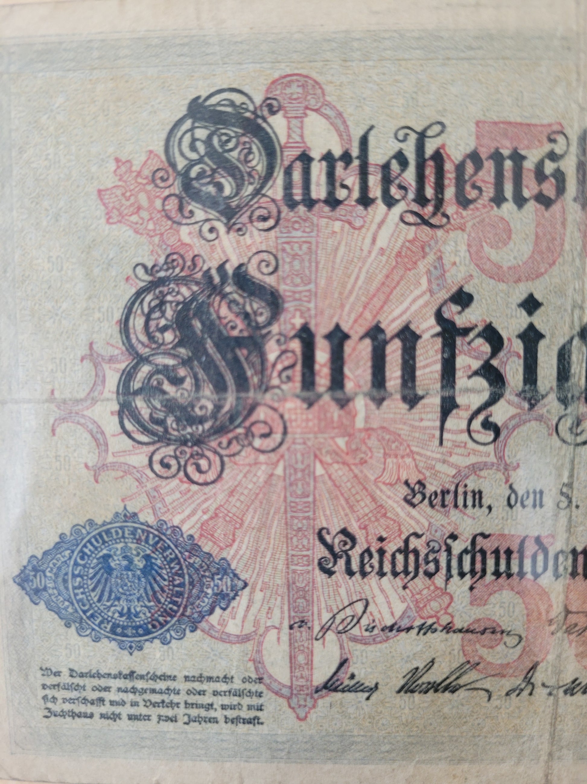 Darlehenskassenschein Fünfzig Mark Berlin 1914 Reichsschuldenverwaltung