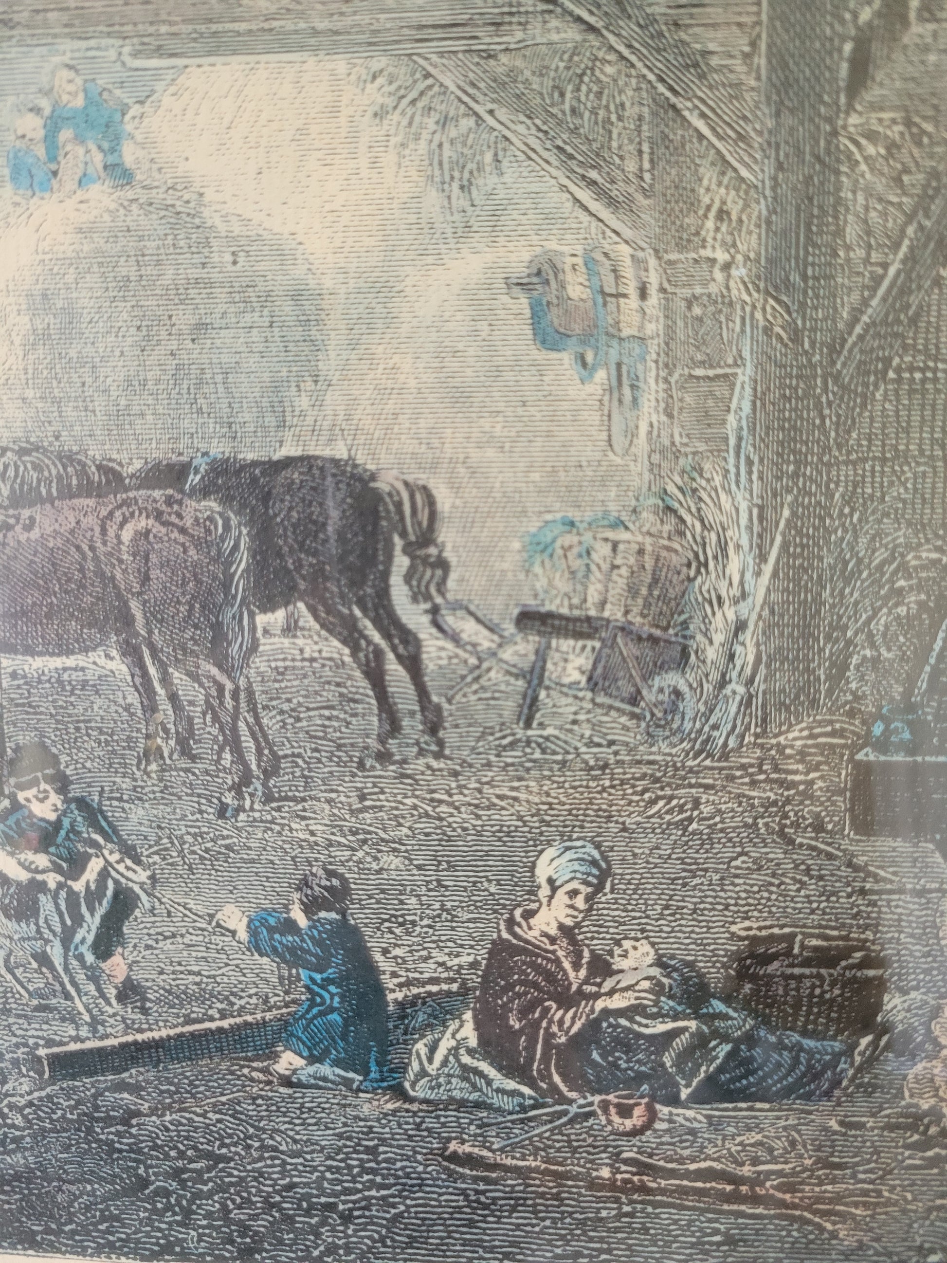 Grafik nach P. Wouwermans – „Der Pferdestall“ (um 1850)
