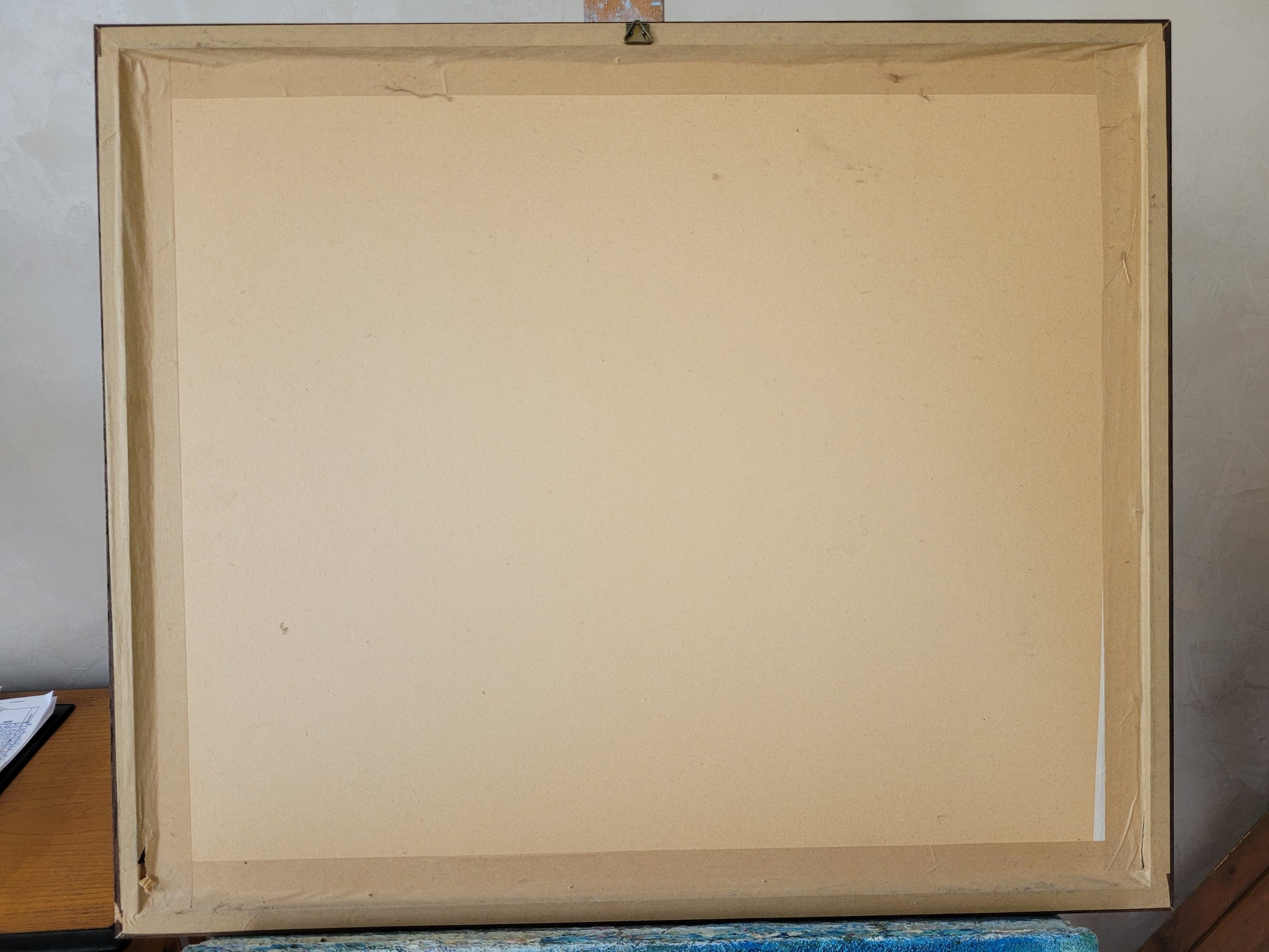 Die Blattgröße beträgt 30 x 45 cm (ohne Rahmen), gerahmt misst das Werk 50 x 60 cm. Der Zustand ist gut, mit leichten altersbedingten Spuren – siehe Fotos.