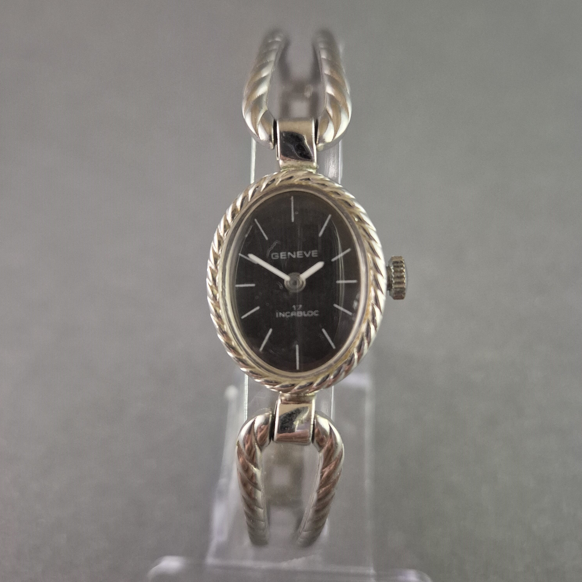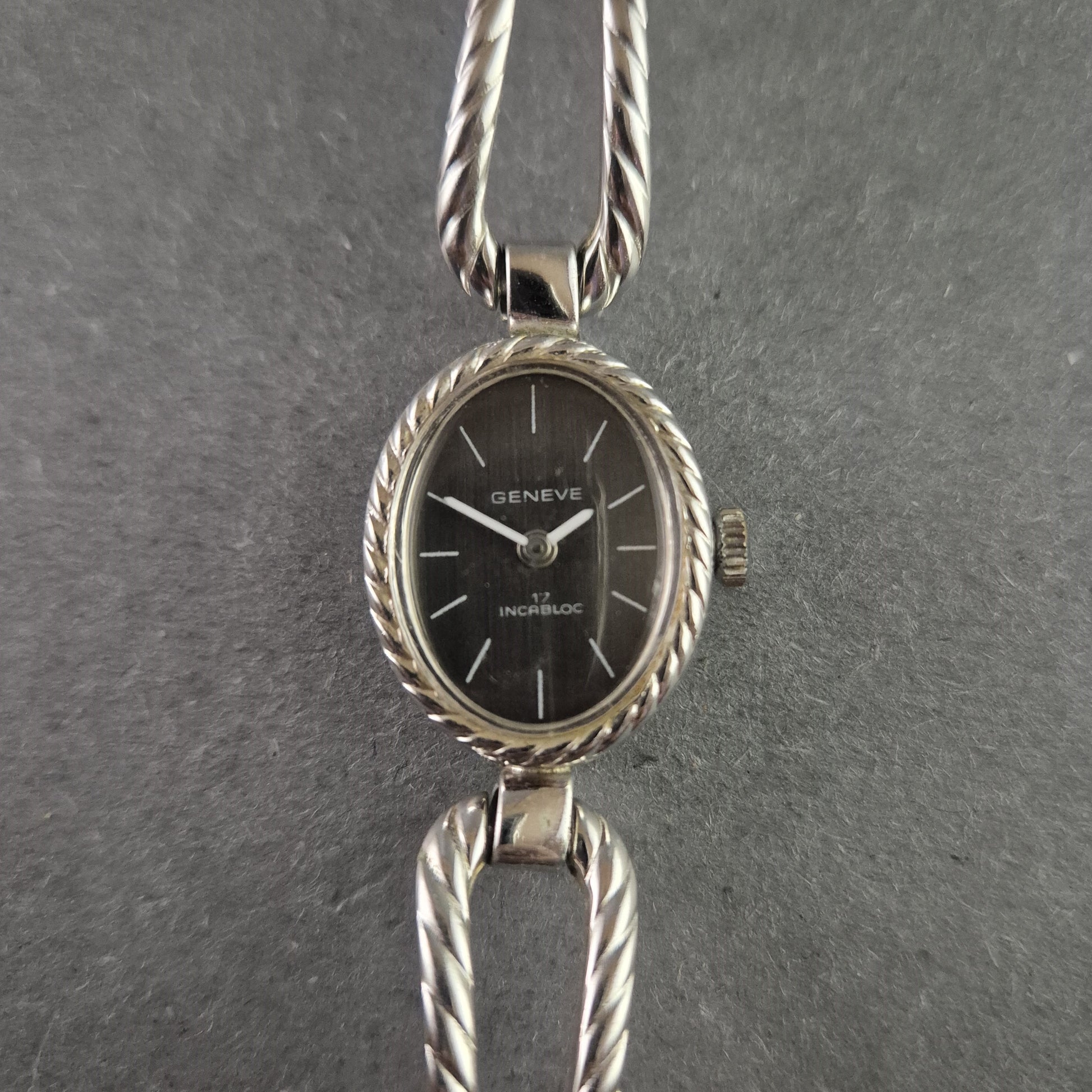 Diese stilvolle Geneva Damenarmbanduhr besticht durch ihr klassisches und elegantes Design. Das ovale Zifferblatt mit feinen Strichindizes und das filigrane Metallarmband verleihen der Uhr eine zeitlose Schönheit. Das silberne Gehäuse mit gedrehtem Rand sorgt für eine raffinierte Optik. Angetrieben von einem präzisen mechanischen Handaufzugswerk mit Incabloc-Stoßsicherung ist diese Uhr nicht nur ein stilvolles Accessoire, sondern auch ein zuverlässiger Zeitmesser.