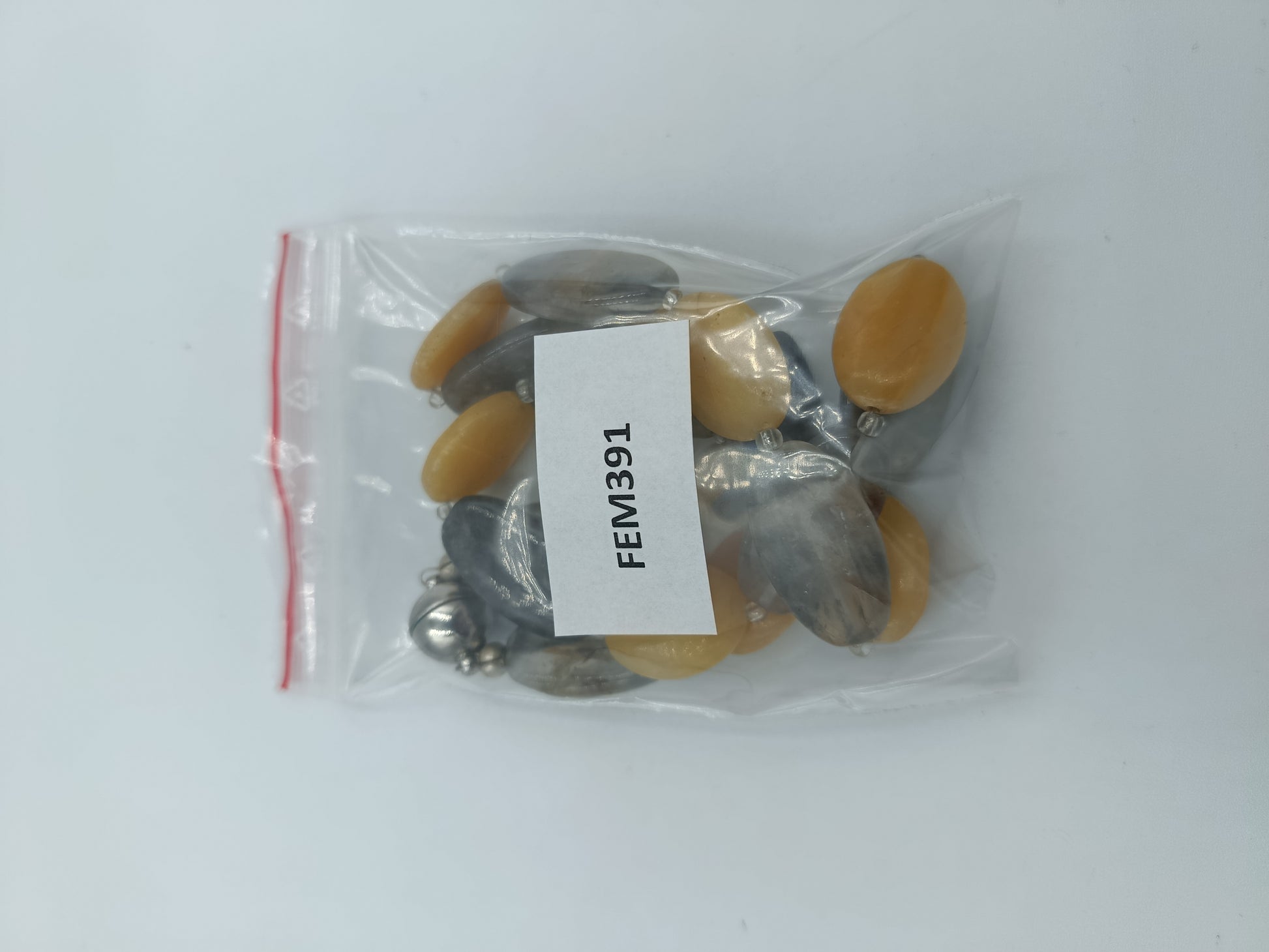 • Material: Schmucksteine (gelb & grau, poliert), Metallverschluss