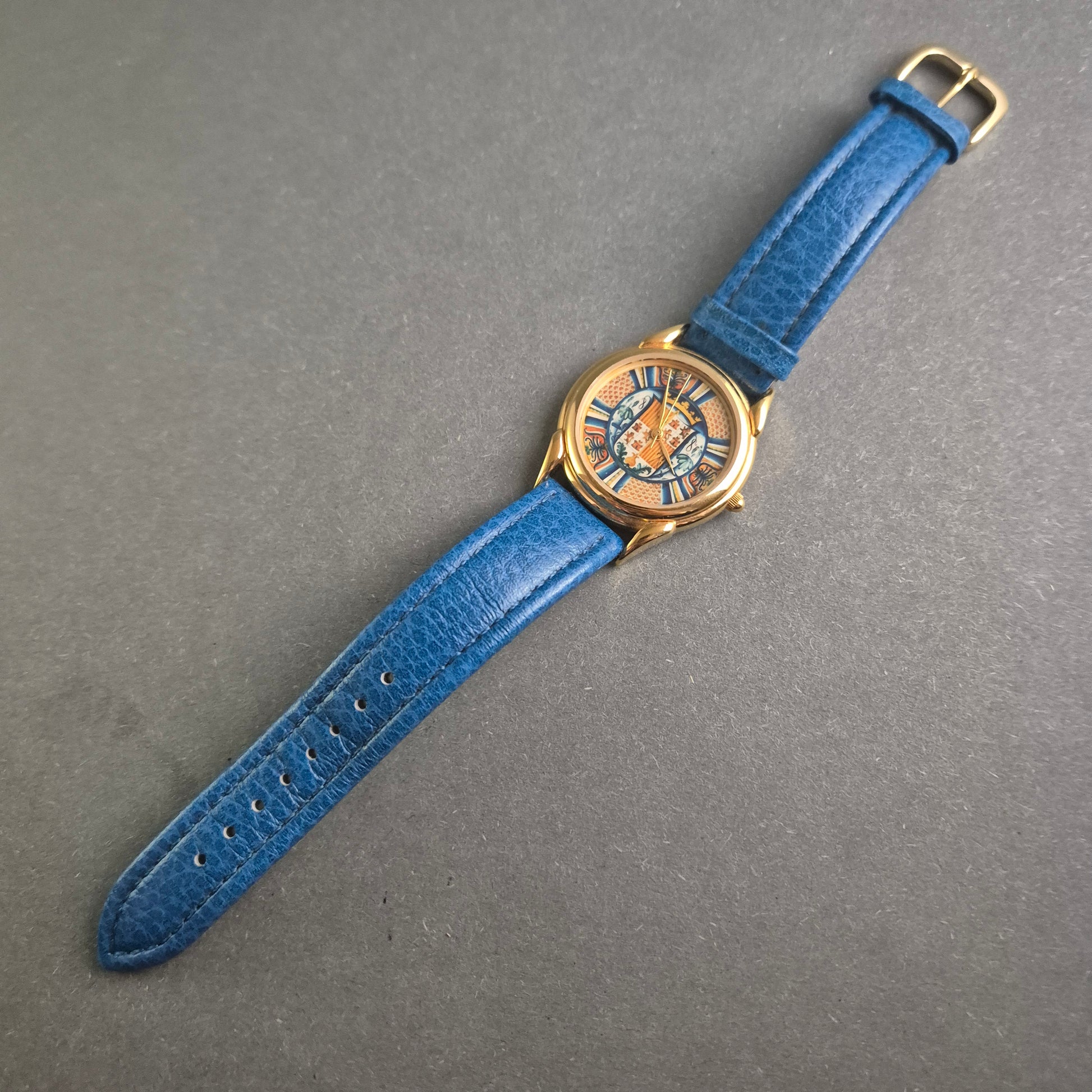 Diese exquisite Damenarmbanduhr von Palazzo Brugiotti überzeugt mit ihrem auffälligen Design, das kunstvoll den klassischen Stil mit modernem Charme verbindet. Das Zifferblatt ist ein wahres Kunstwerk, verziert mit einem aufwendigen Muster, das königlichen Luxus ausstrahlt. Das blaue Lederarmband sorgt für ein komfortables Tragegefühl und rundet das edle Erscheinungsbild perfekt ab.