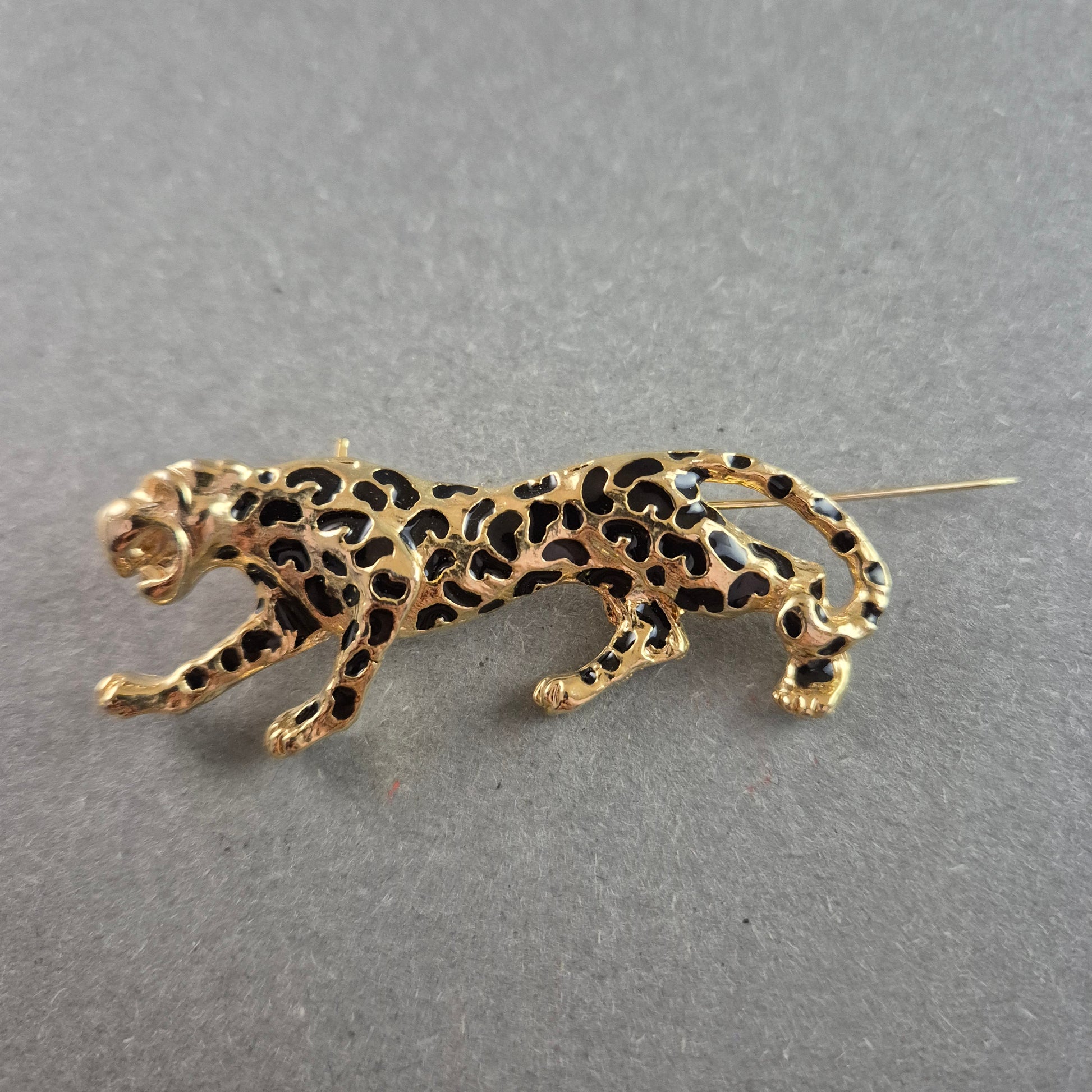 Elegante Panther-Brosche – Goldfarbener Look mit schwarzem Muster