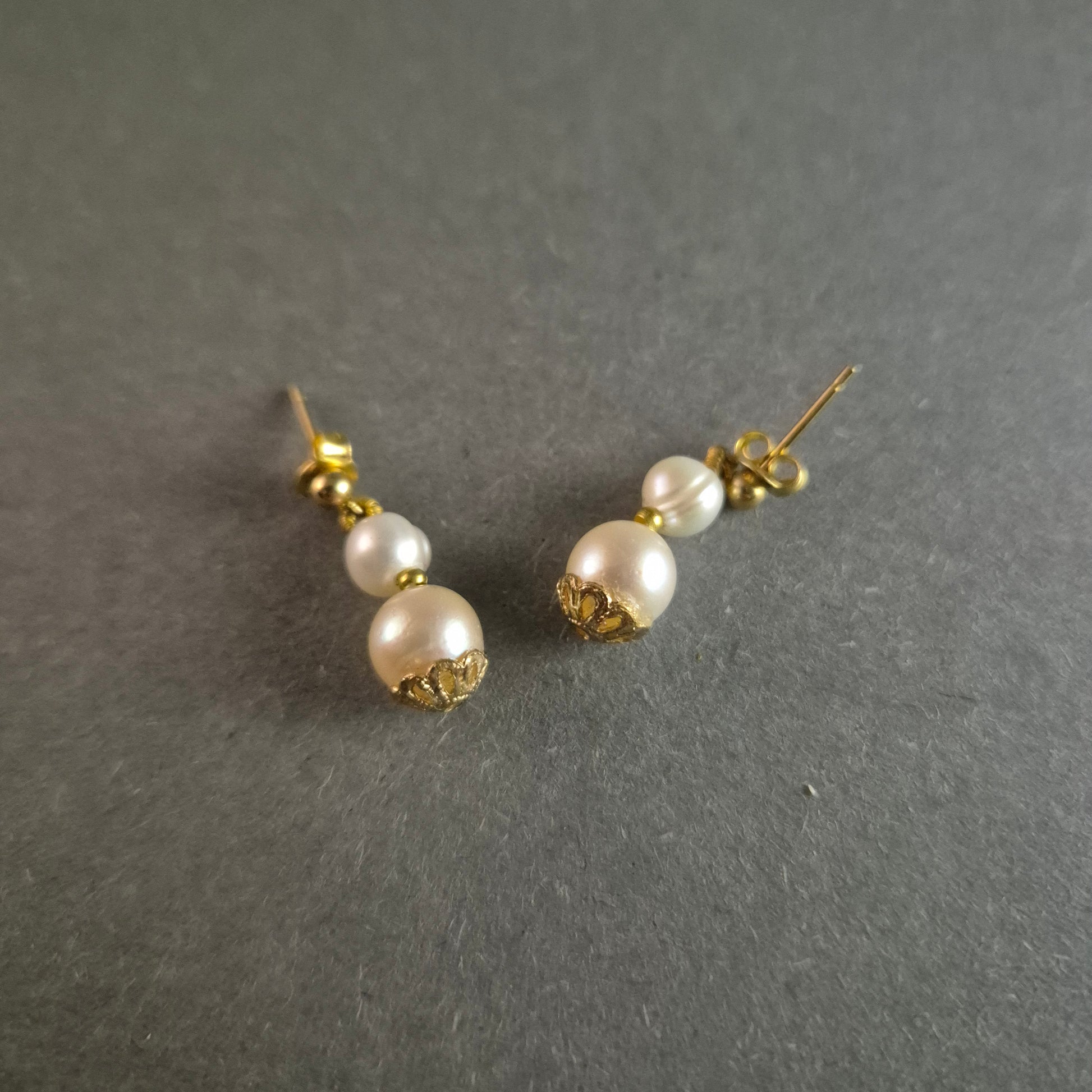 Elegante Perlen-Ohrhänger mit goldfarbenen Akzenten – Klassische Schönheit
