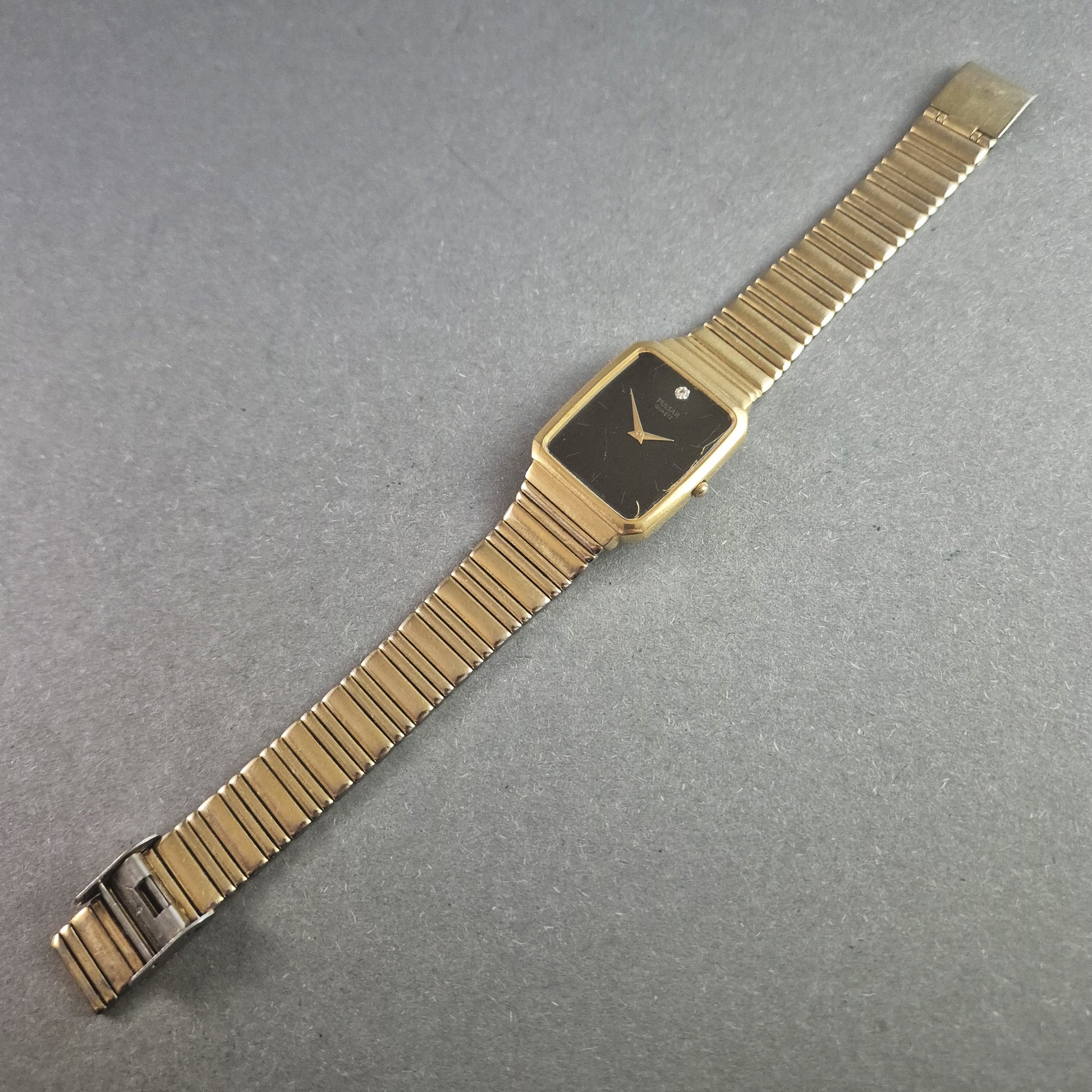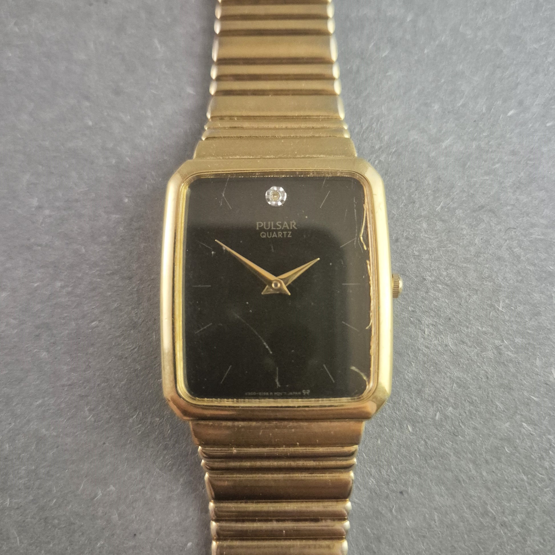 Diese stilvolle Pulsar Herrenarmbanduhr besticht durch ihr elegantes Design und ihre hochwertige Verarbeitung. Das rechteckige Gehäuse mit glänzendem Gold-Finish und das klassische schwarze Zifferblatt mit einem funkelnden Akzent bei 12 Uhr verleihen der Uhr eine edle und zeitlose Optik. Das flexible Gliederarmband sorgt für einen bequemen Tragekomfort. Ideal für stilbewusste Männer, die Wert auf Eleganz und Klasse legen.