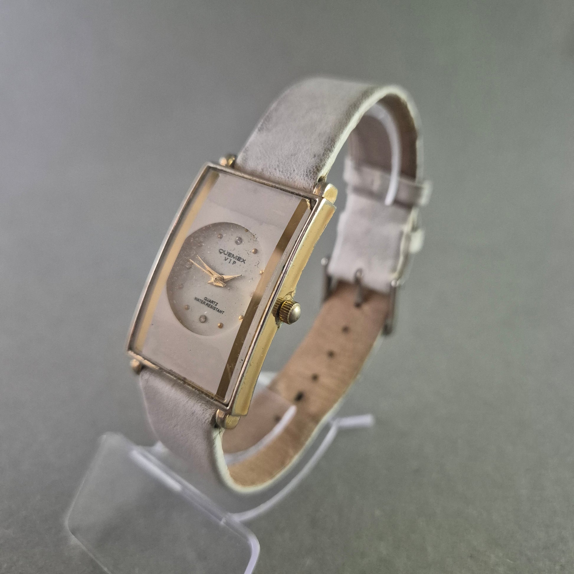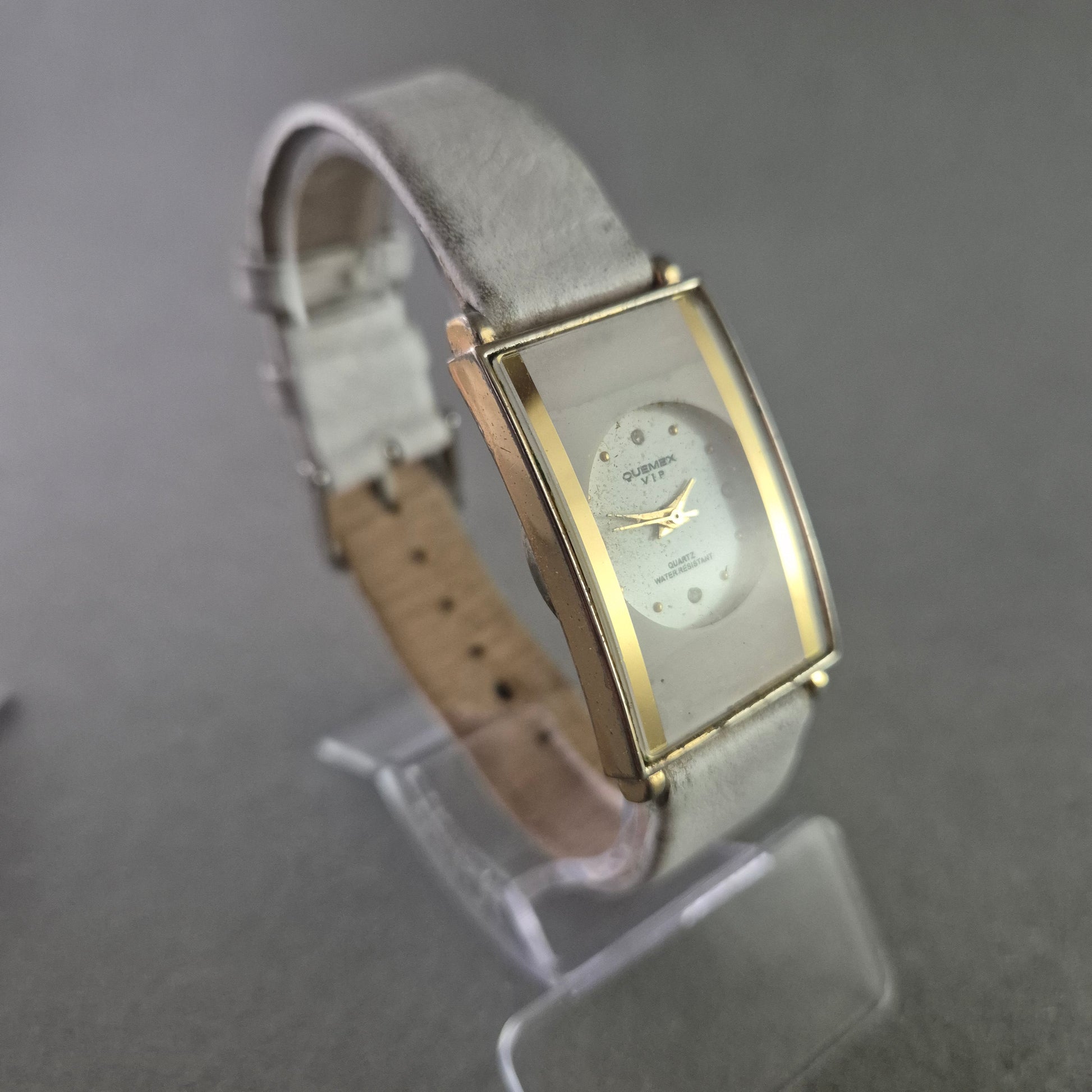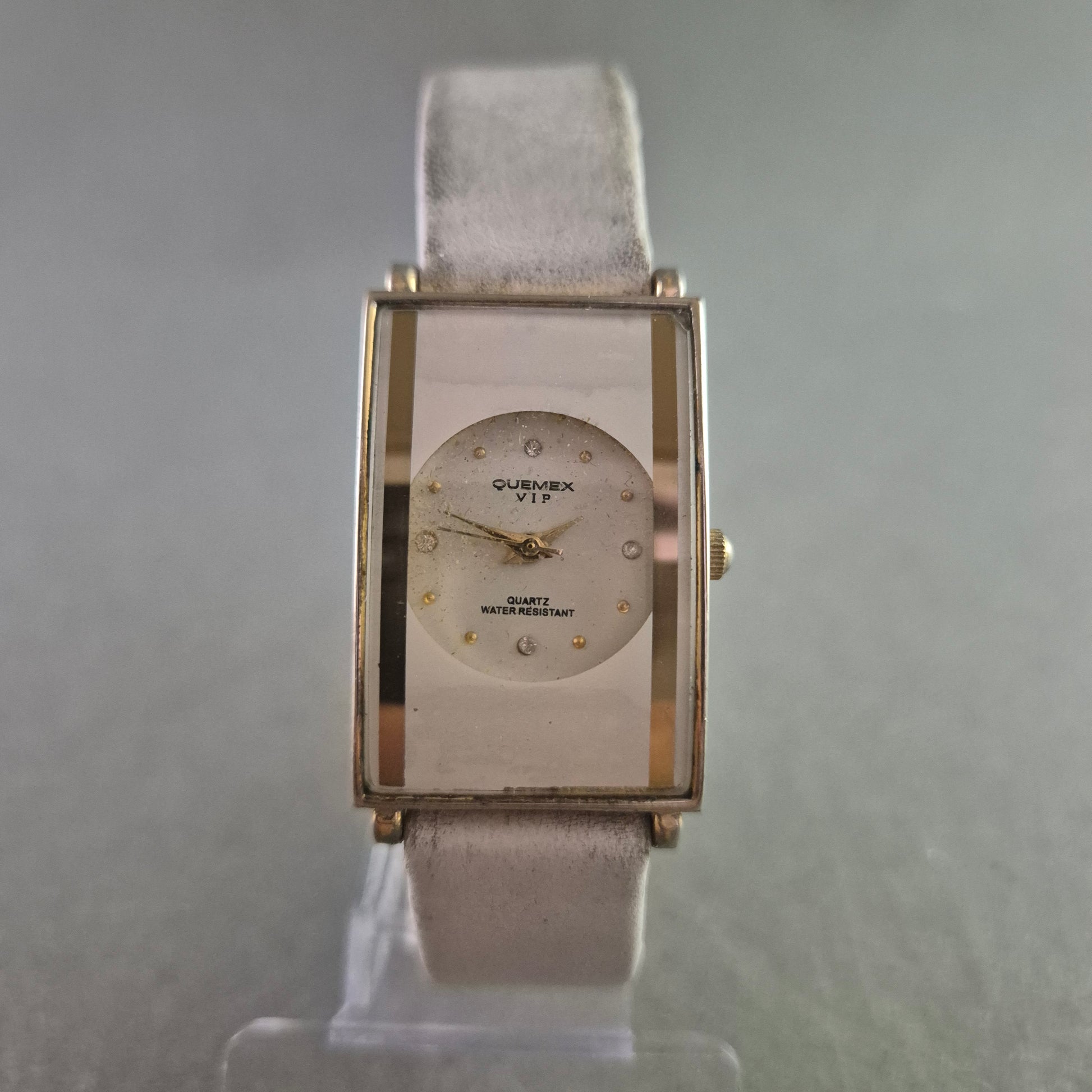 Elegante Quemex Damen Uhr mit Weißem Lederarmband