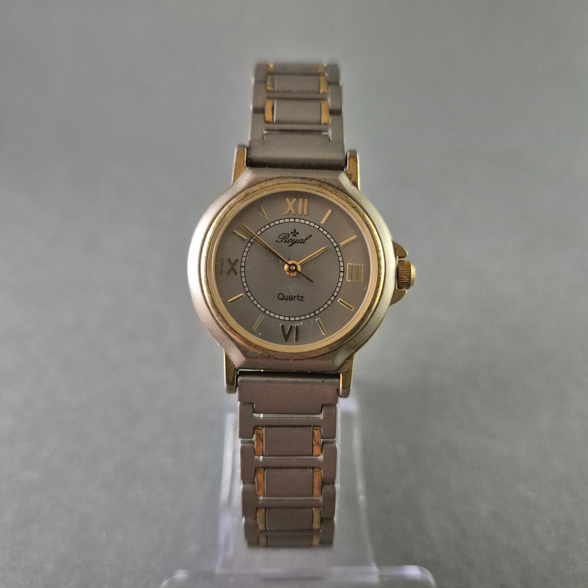 Diese elegante Damenarmbanduhr der Marke Royal besticht durch ihr klassisches Design mit einem zeitlosen Zifferblatt und römischen Ziffern. Die Kombination aus Edelstahlgehäuse mit goldfarbenen Akzenten sorgt für einen stilvollen Look. Dank des zuverlässigen Quarzwerks bietet die Uhr präzise Zeitmessung und hohen Tragekomfort.