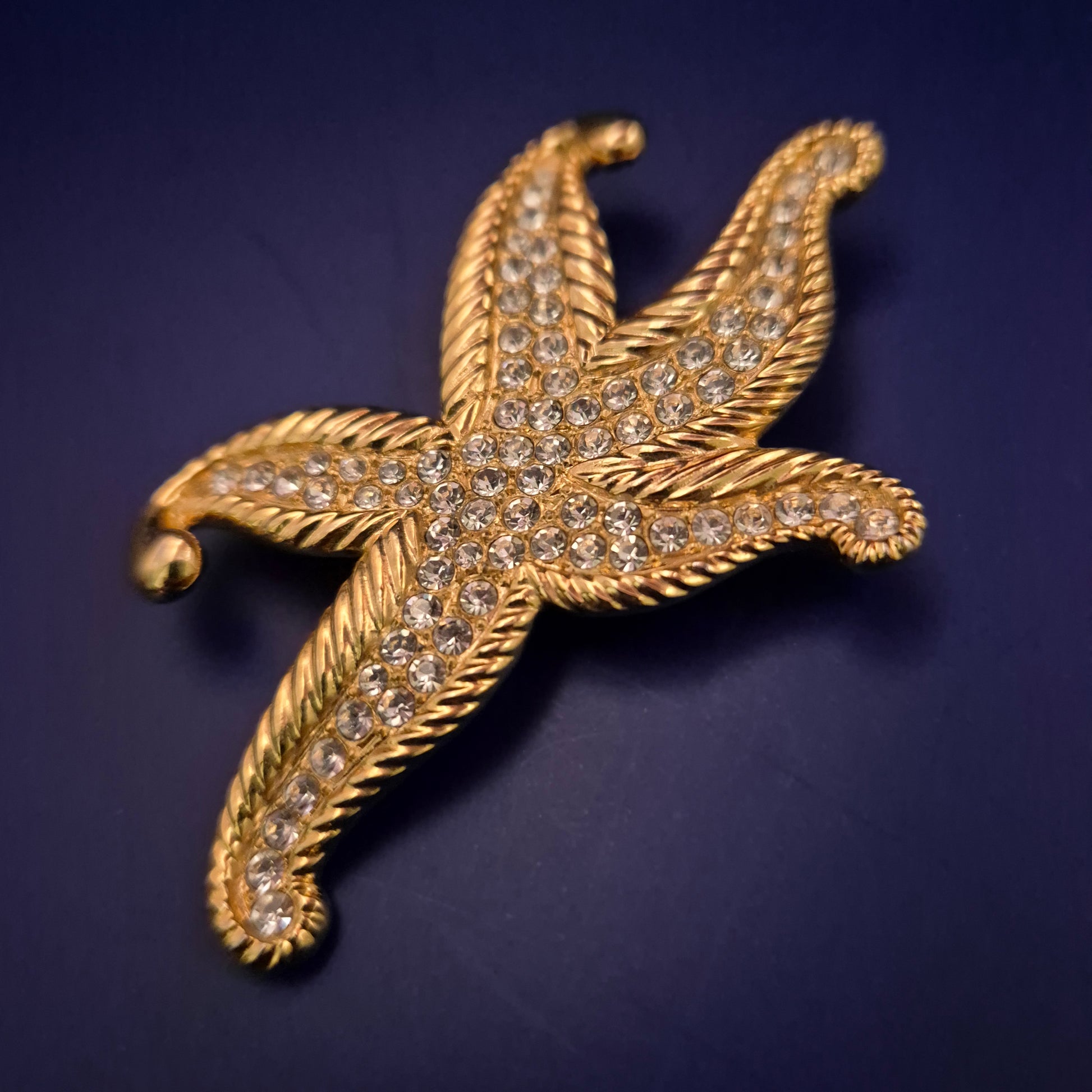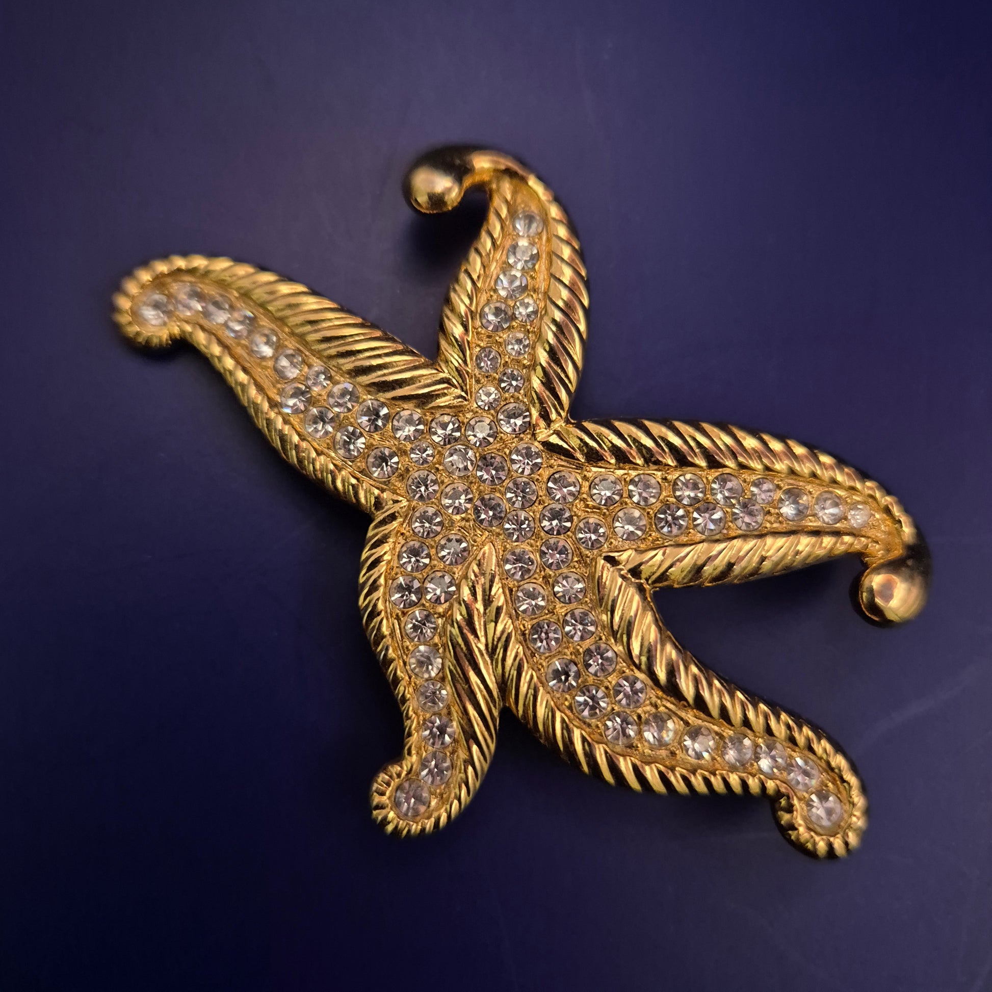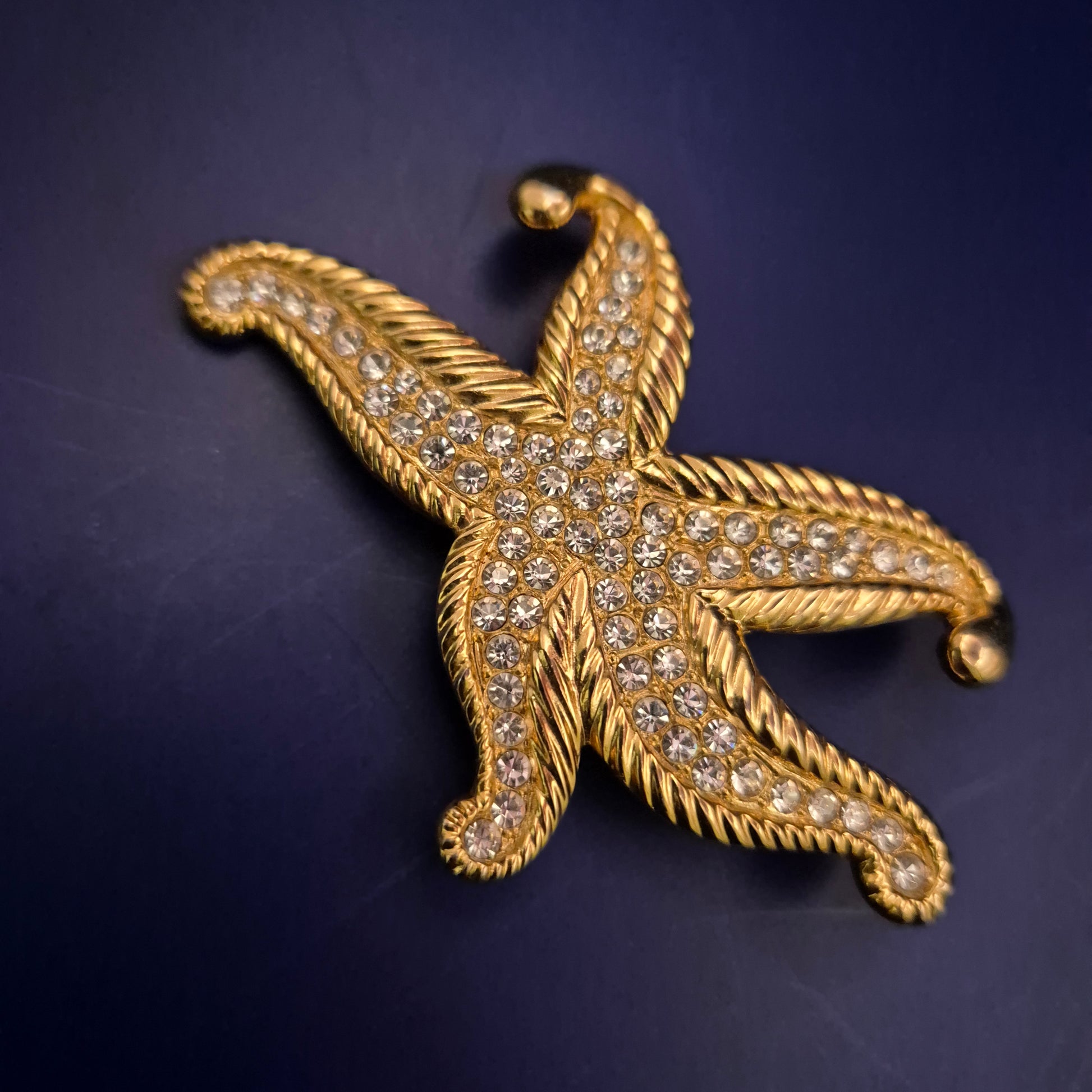 Elegante Seestern Brosche – Vergoldet mit funkelnden Strasssteinen