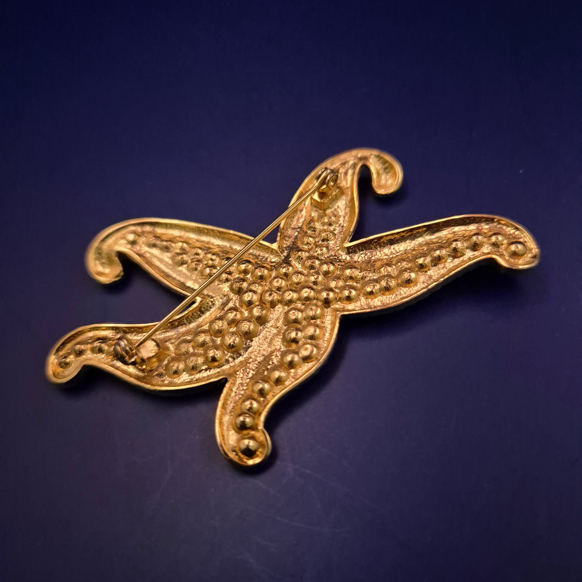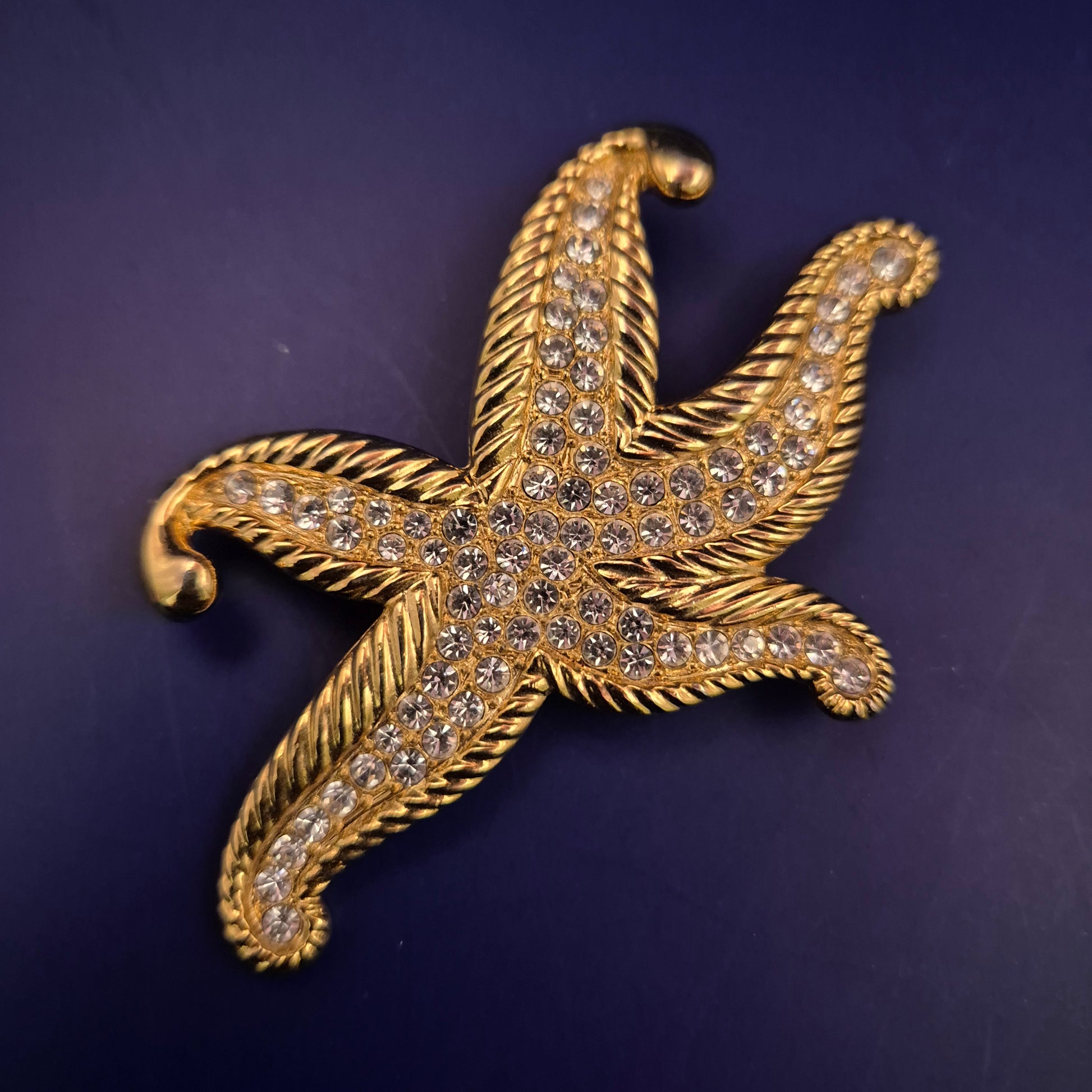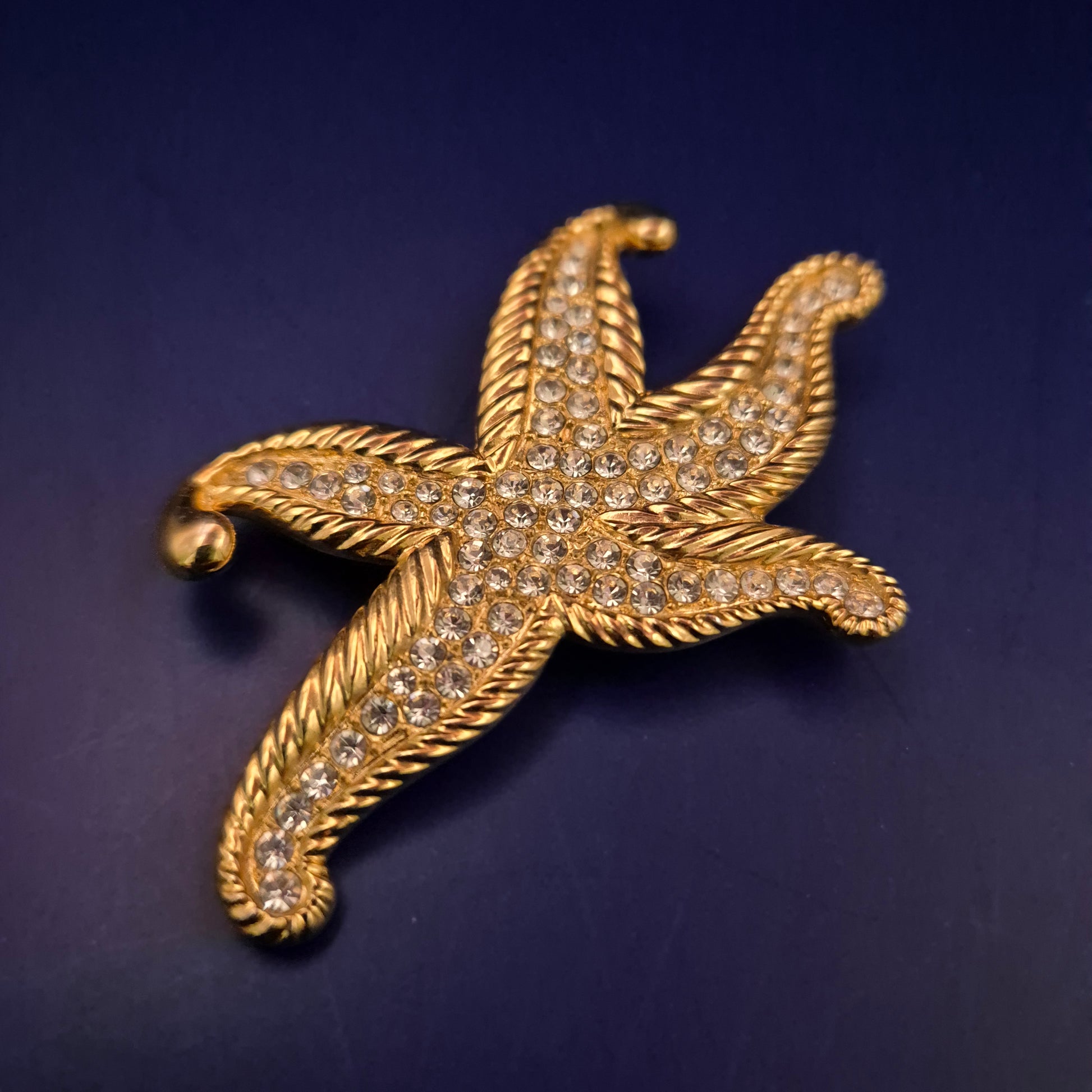 Elegante Seestern Brosche – Vergoldet mit funkelnden Strasssteinen