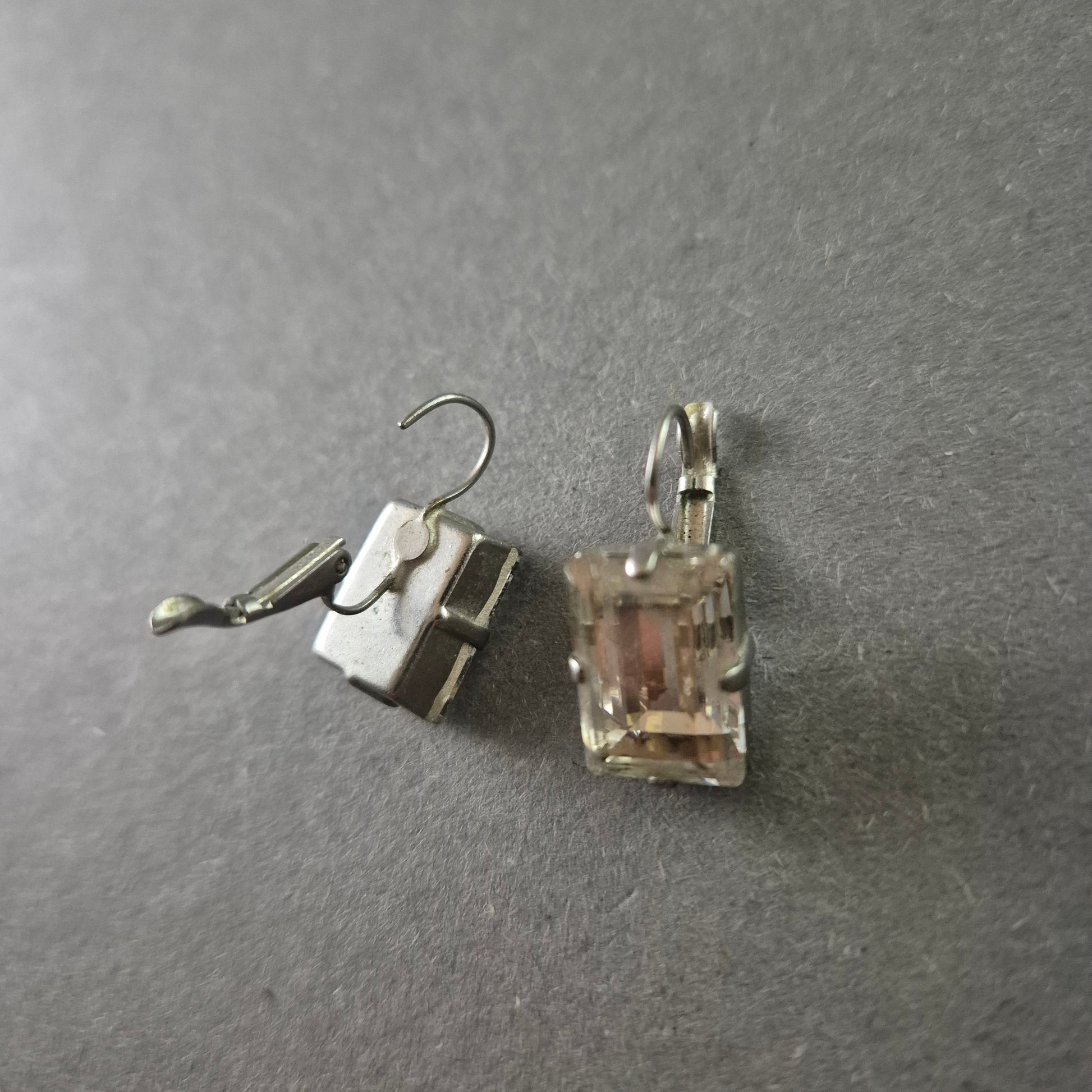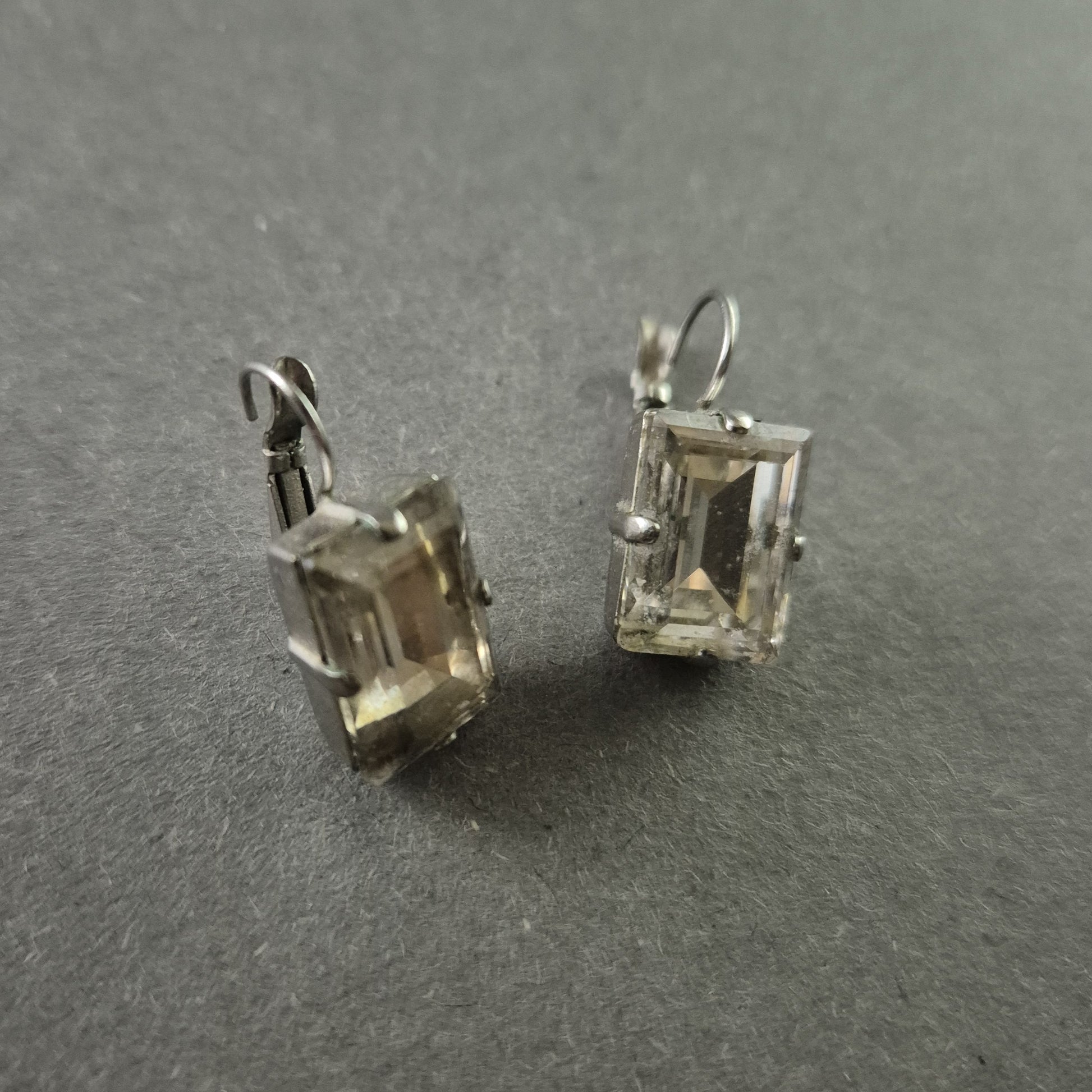 Diese edlen Vintage-Ohrringe aus Silber bestechen durch ihre rechteckigen, facettierten Steine, die das Licht wunderschön reflektieren. Die klassische Klammermechanik sorgt für sicheren Halt und hohen Tragekomfort. Durch ihr zeitloses Design sind sie sowohl für den Alltag als auch für besondere Anlässe perfekt geeignet.