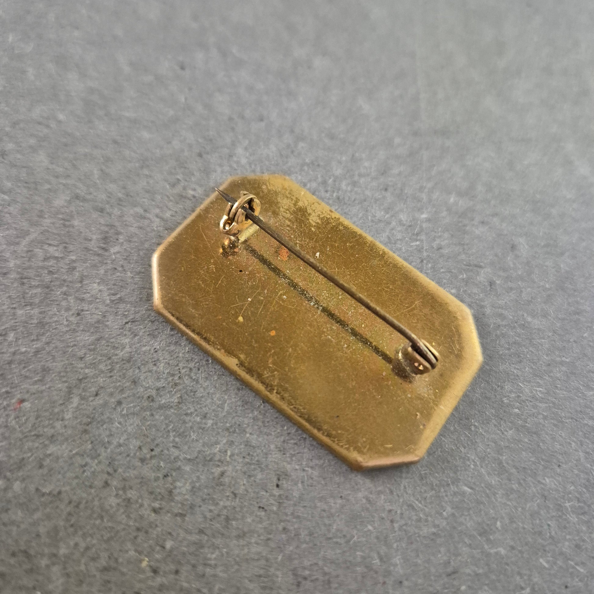 Diese elegante Vintage Brosche besticht durch ihr stilvolles Design mit einem schimmernden Perlmutt-Inlay. Der goldfarbene Rahmen mit seinen abgeschrägten Ecken umrahmt ein abstraktes Muster im Inlay, das an stilisierte Blüten oder geometrische Formen erinnert. Ein raffiniertes Accessoire, das durch seine Materialien und sein zeitloses Design besticht.