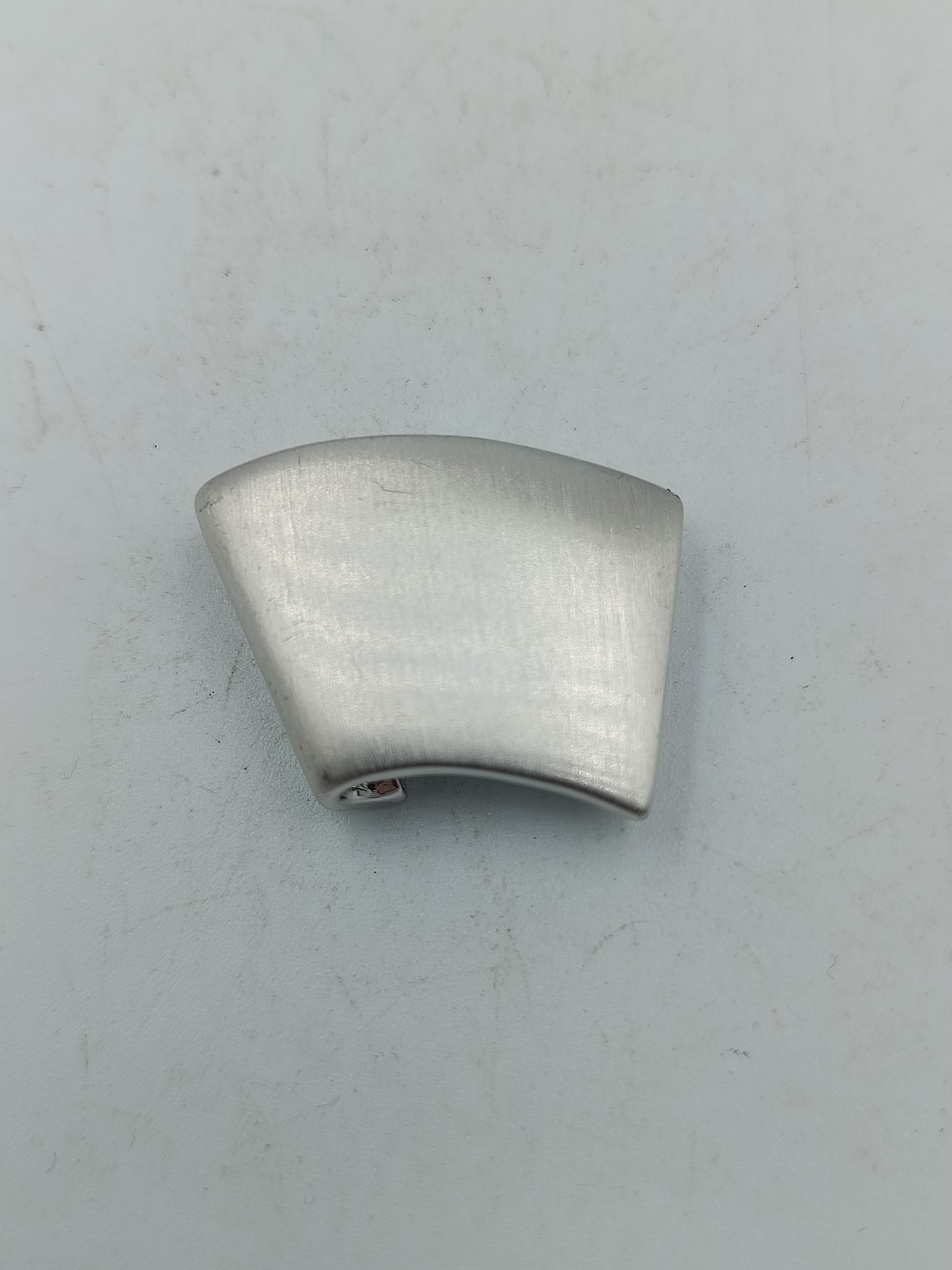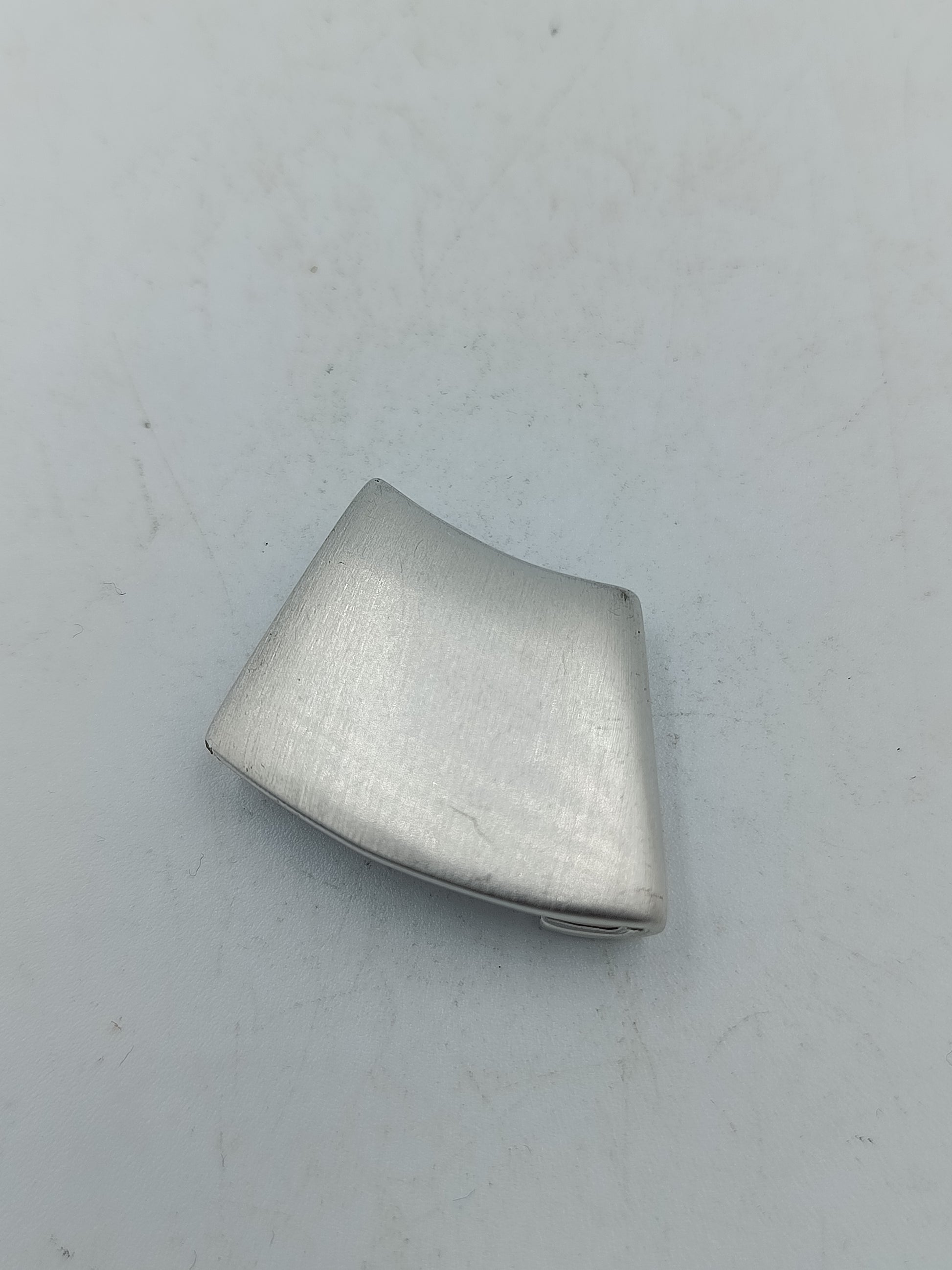 Dieser markante, silberfarbene Anhänger der Marke Pierre Lang besticht durch sein modernes, geschwungenes Design. Das zentrale, versilberte Inlay weist eine feine gehämmerte oder strukturierte Oberfläche auf, die von einem glatten, glänzenden Rand umgeben ist. Der Anhänger ist im Inneren mit dem "PL"-Stempel versehen, dem Qualitätszeichen des österreichischen Unternehmens für hochwertigen Modeschmuck, der keine allergischen Reaktionen hervorrufen soll.