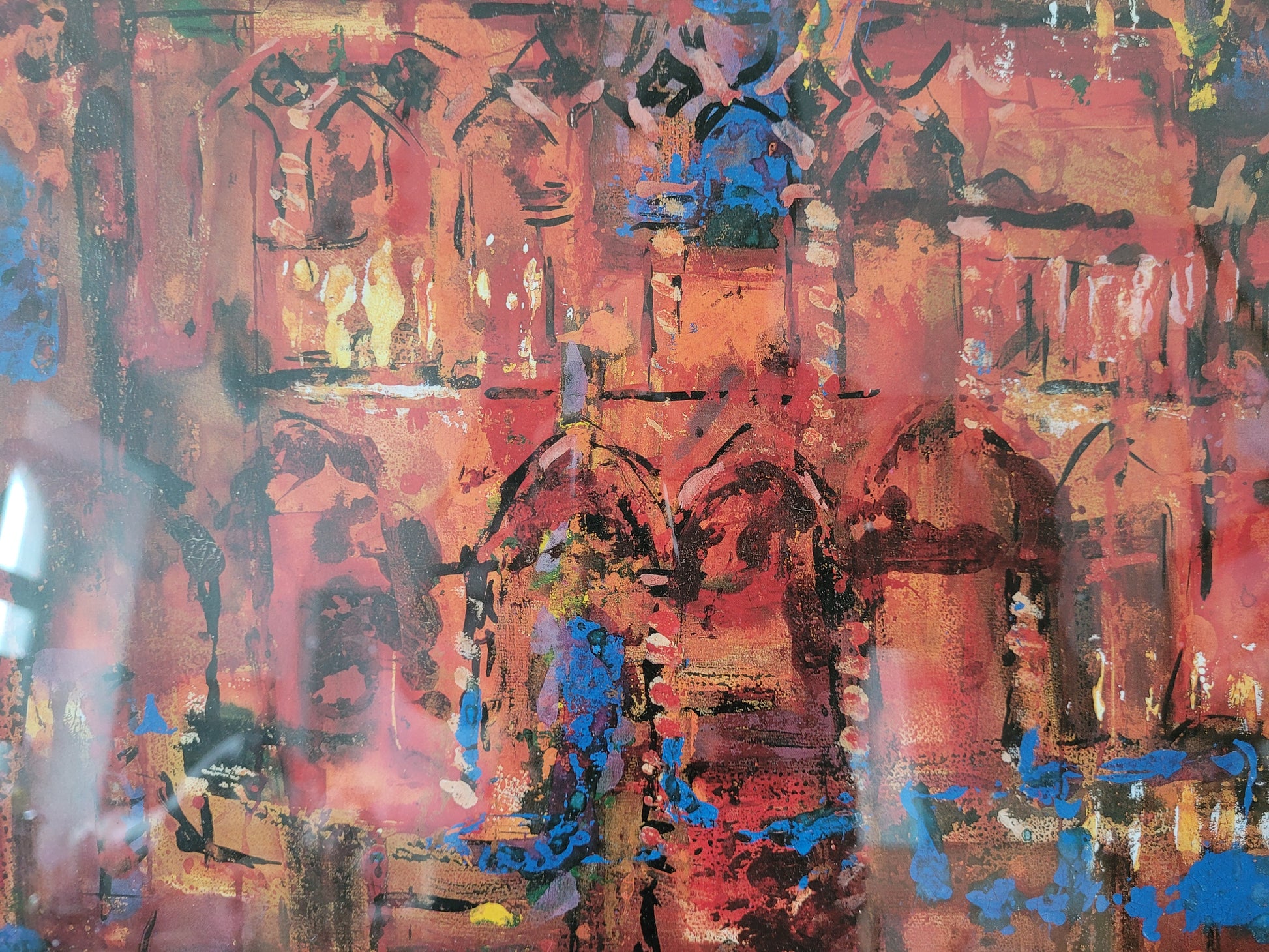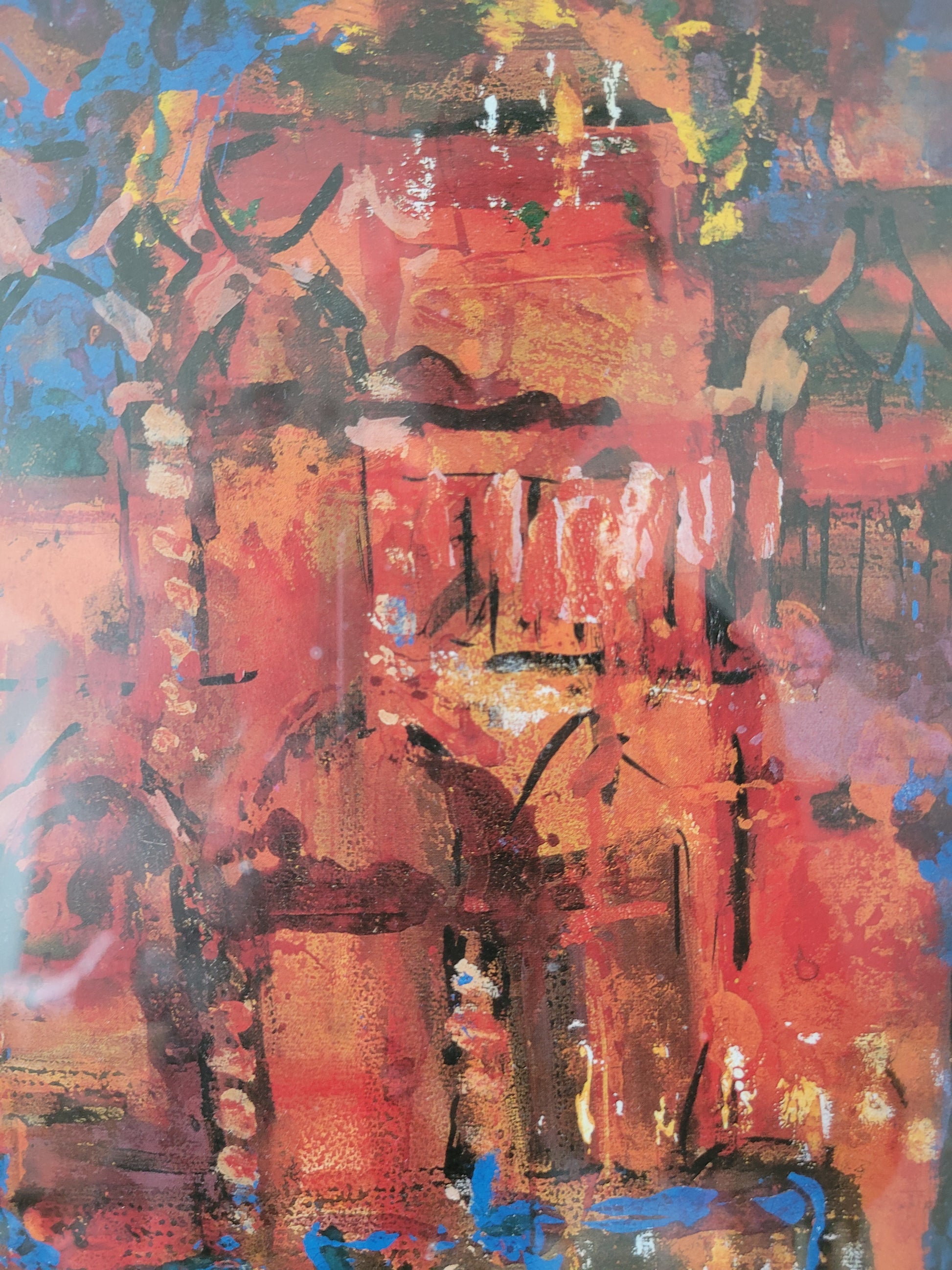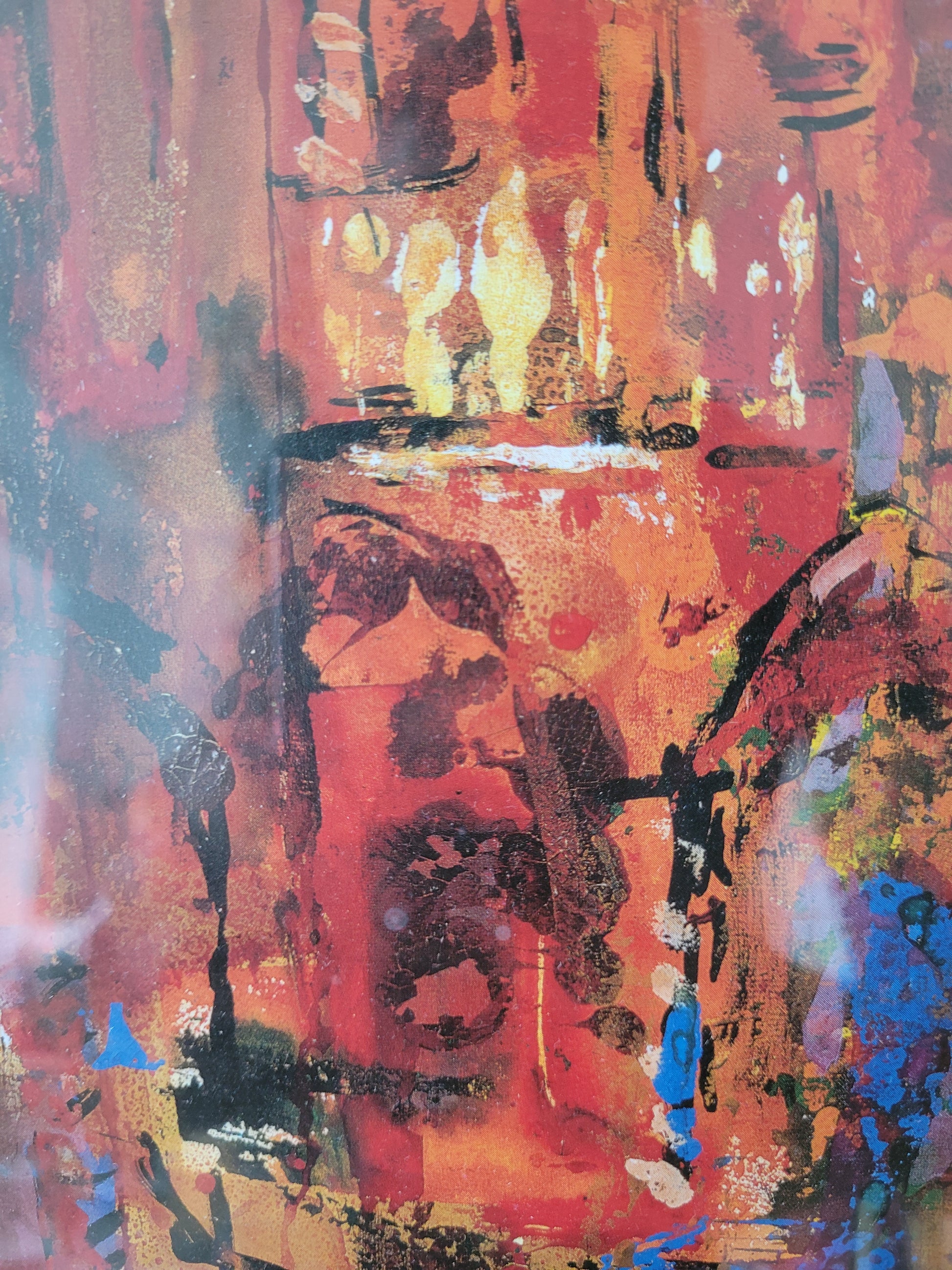 Angeboten wird eine Grafik eines abstrakten Kunstgemäldes aus der Exilkunstbewegung. Das Werk besticht durch lebendige rote Farbtöne, die eine emotionale Tiefe und Dynamik vermitteln. Die abstrakte Komposition lädt den Betrachter ein, seine eigene Interpretation und Emotionen in die Farben und Formen einzubringen.