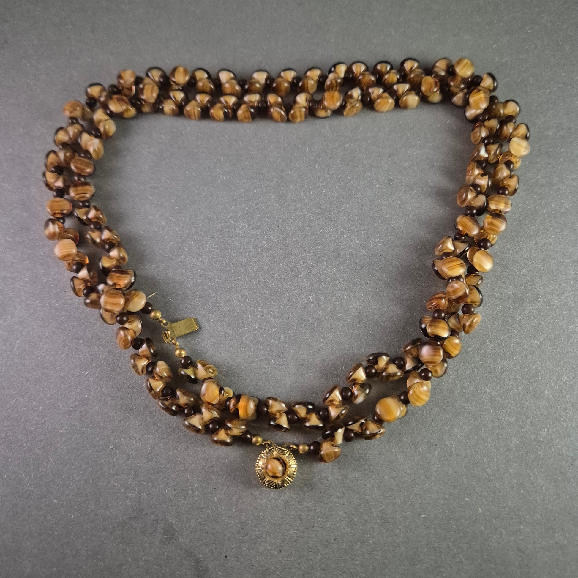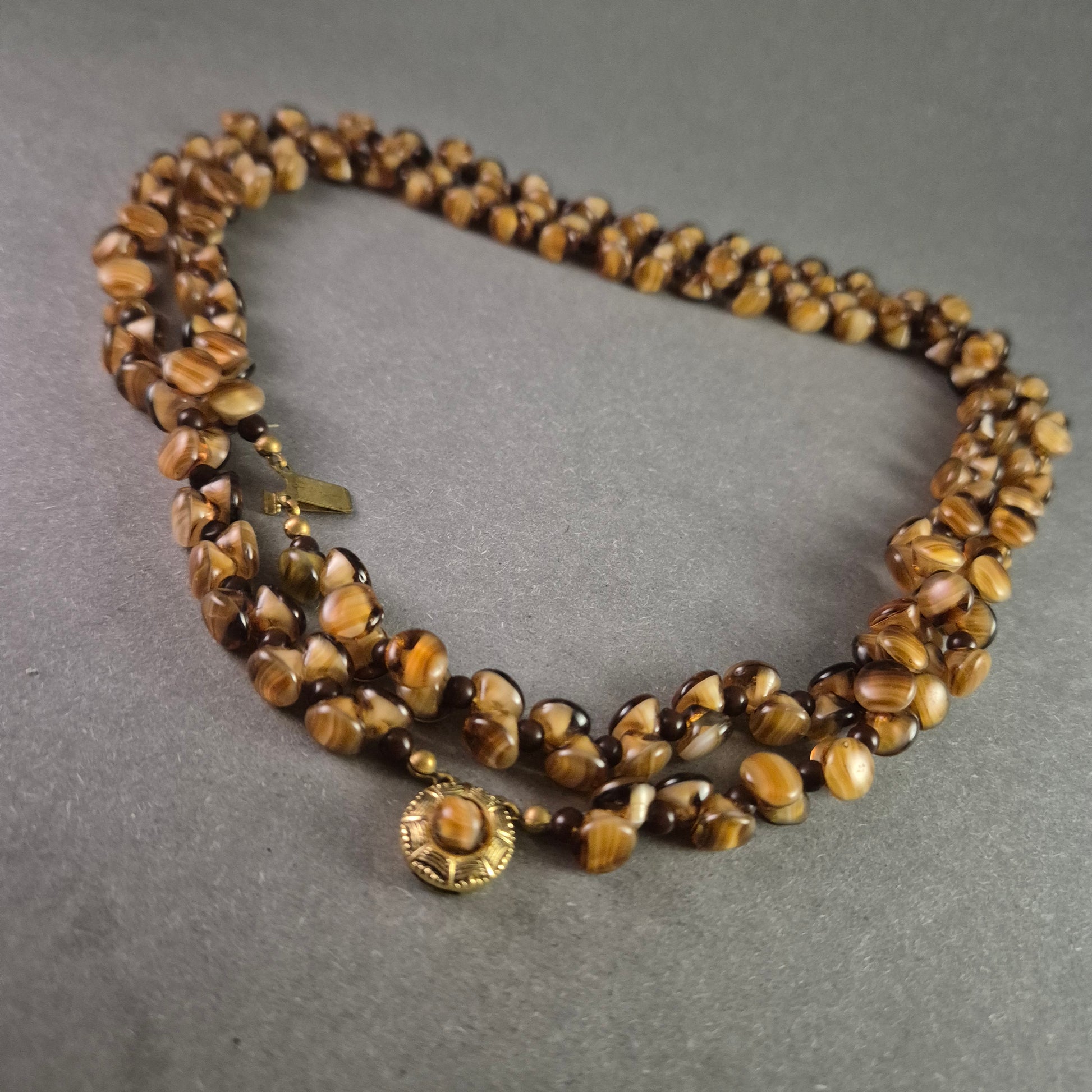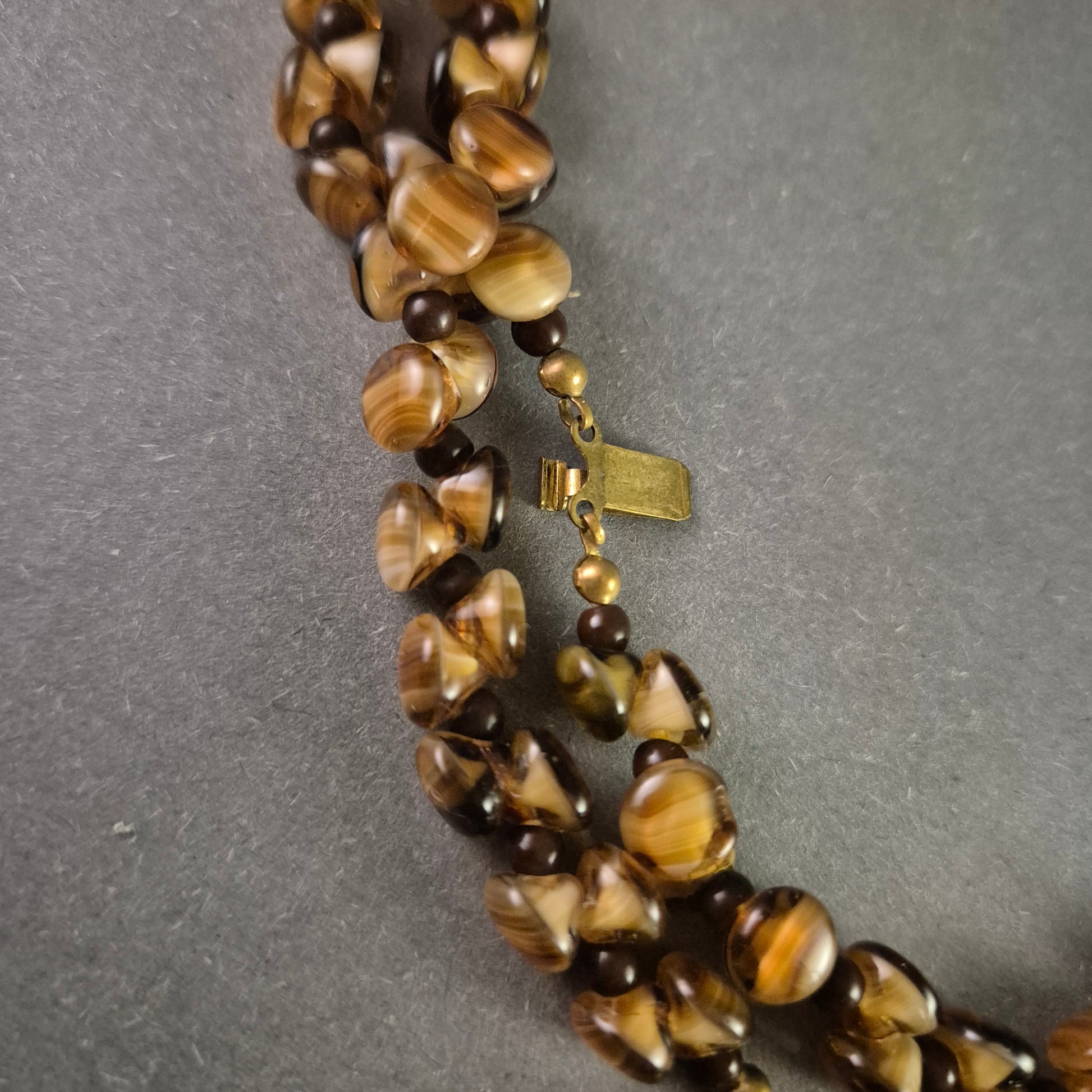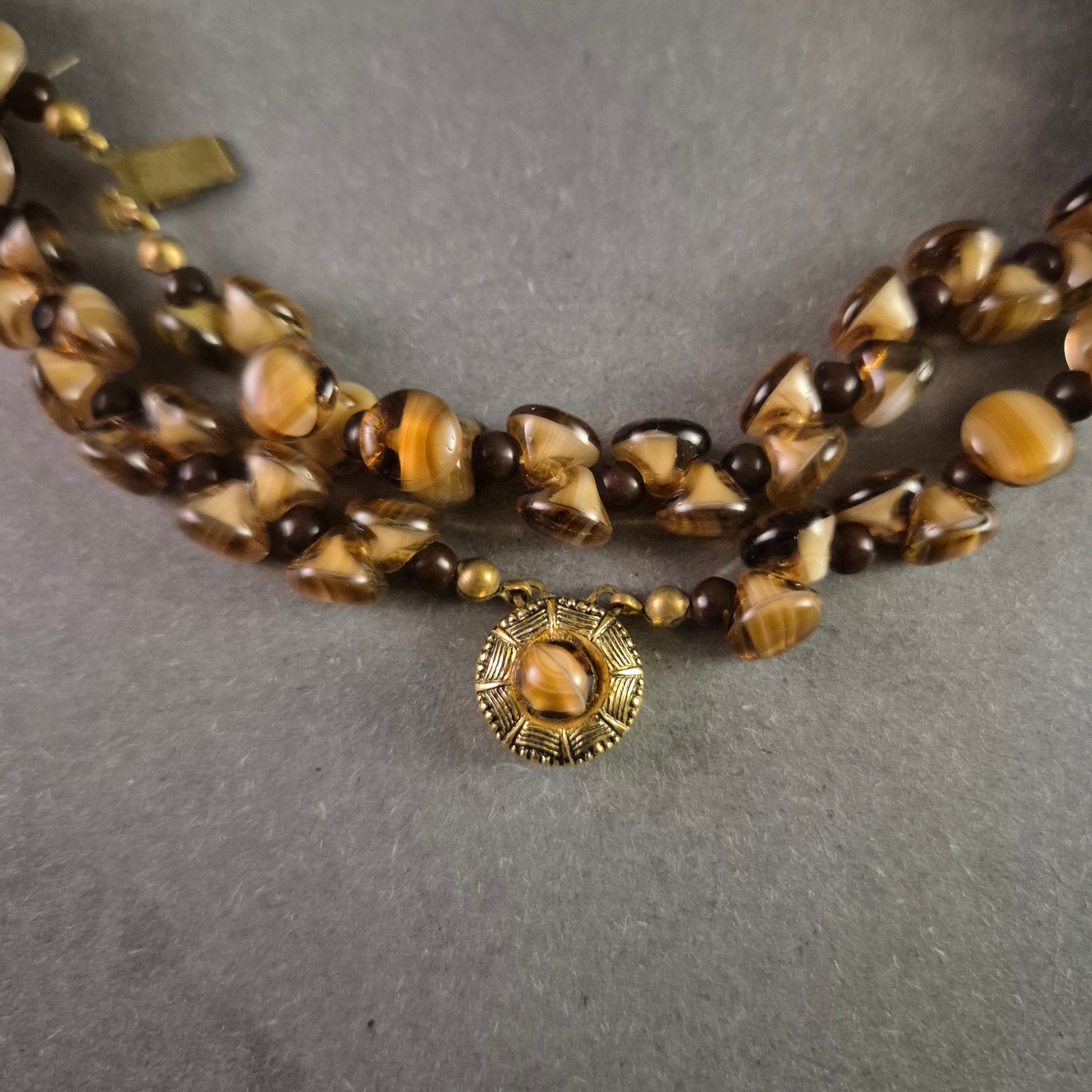 Exklusive Vintage-Halskette mit dreireihigen Tigeraugen-Glasperlen