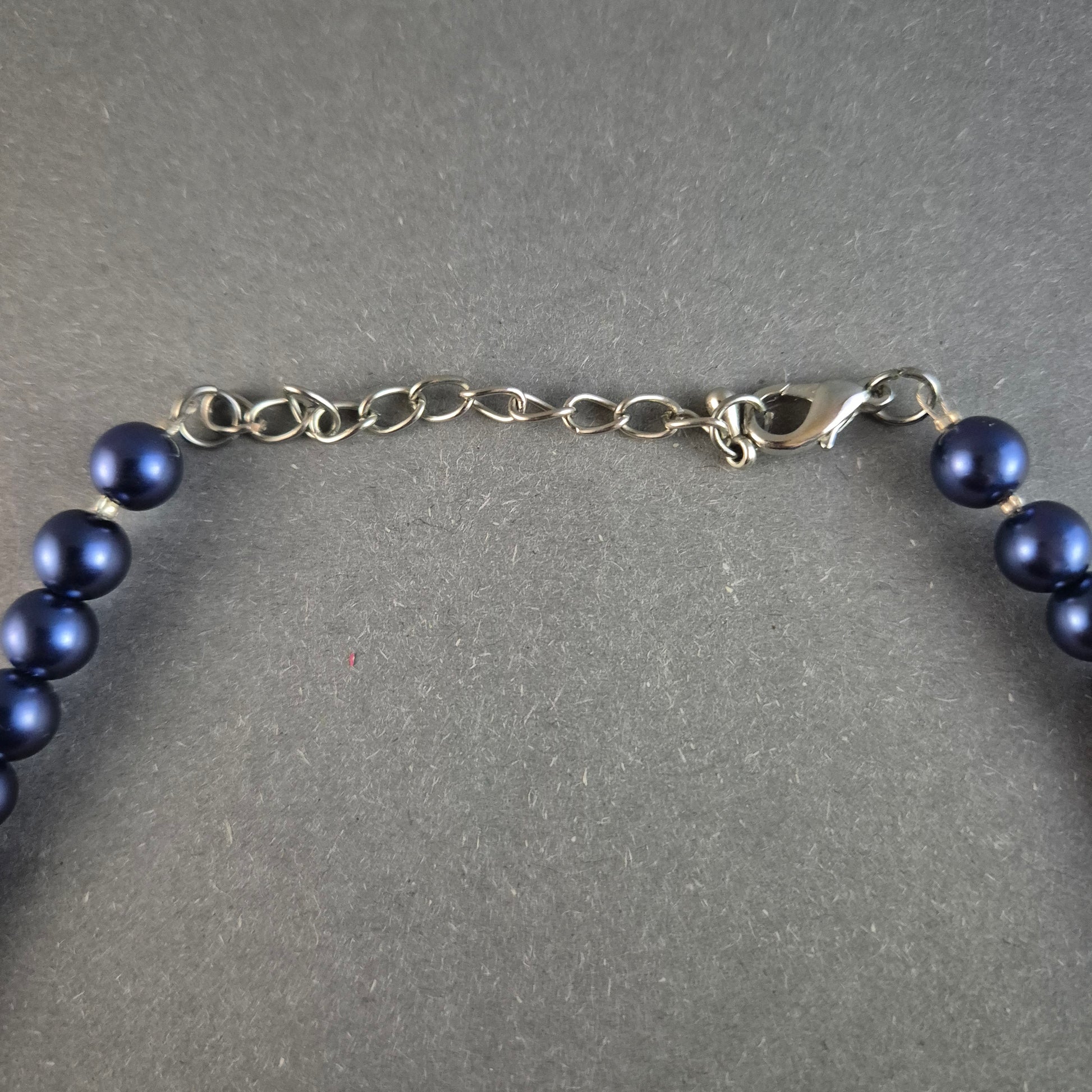 Diese auffällige Statement-Kette kombiniert verschiedene Perlenarten in tiefem Blau mit metallischen Akzenten. Besondere Highlights sind die textilüberzogenen Kugeln, die der Kette eine interessante Struktur verleihen. Glänzende Metall- und Glasperlen sorgen für einen edlen Kontrast und runden das Design harmonisch ab. Dank des verstellbaren Verschlusses kann die Länge individuell angepasst werden. Perfekt für besondere Anlässe oder als stilvoller Hingucker im Alltag.