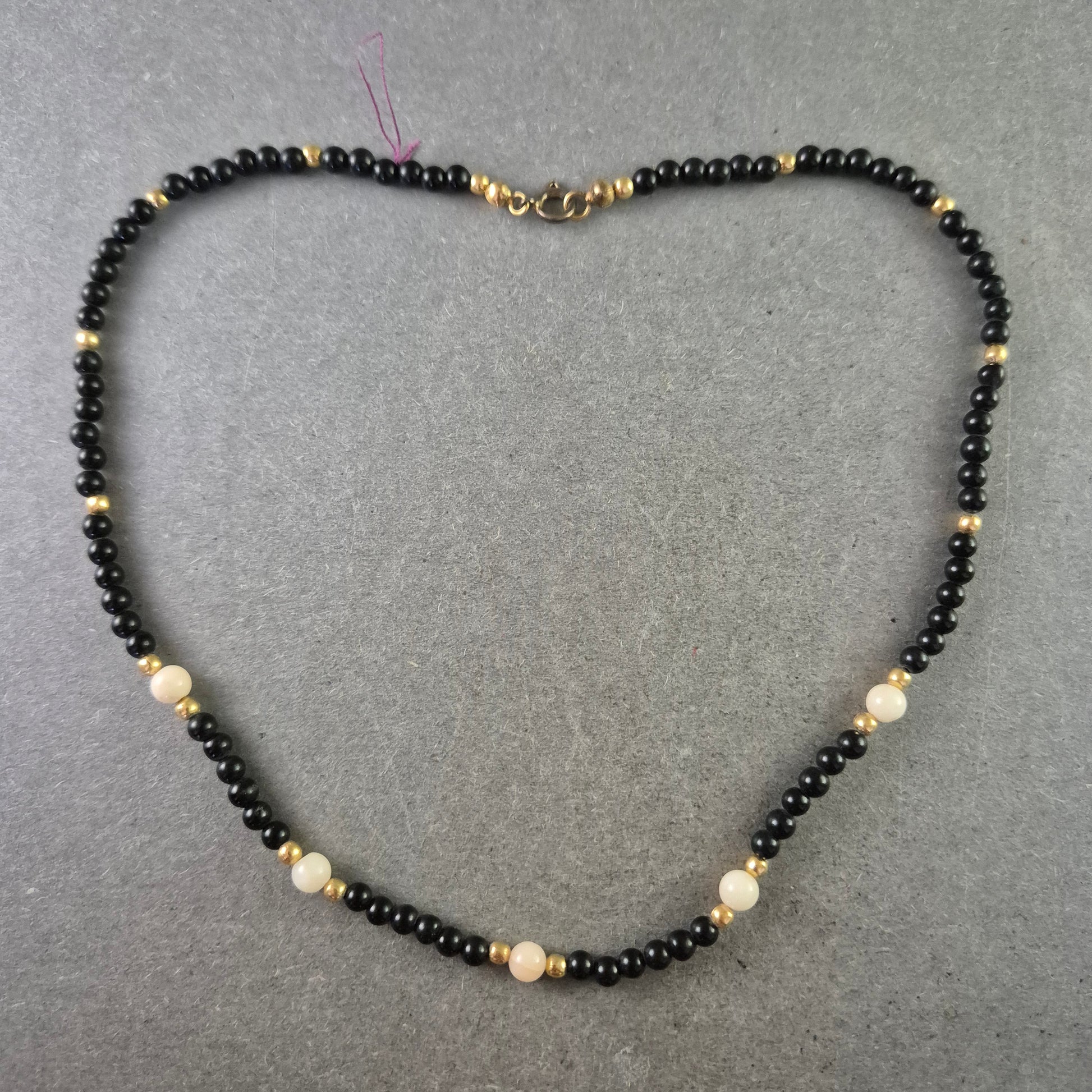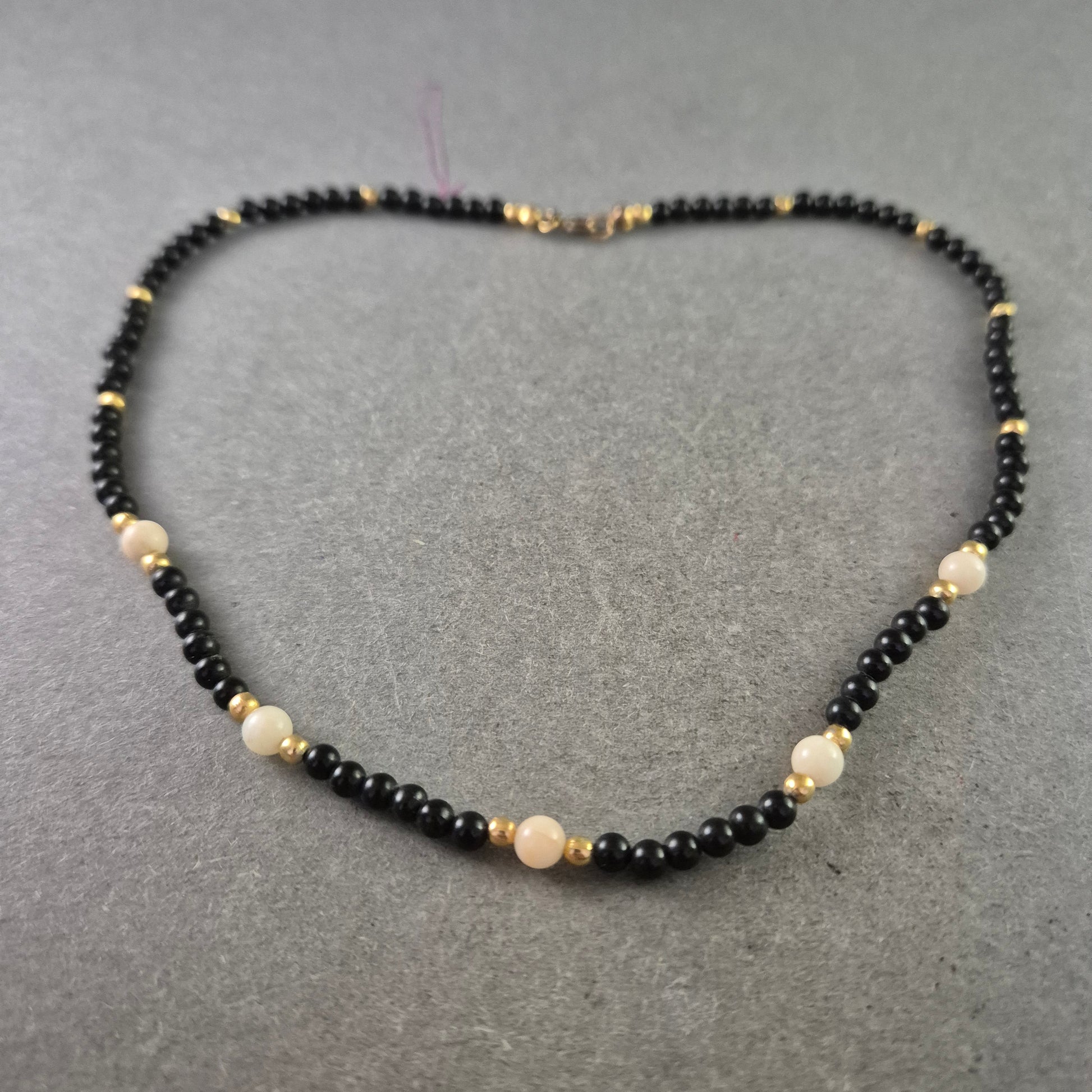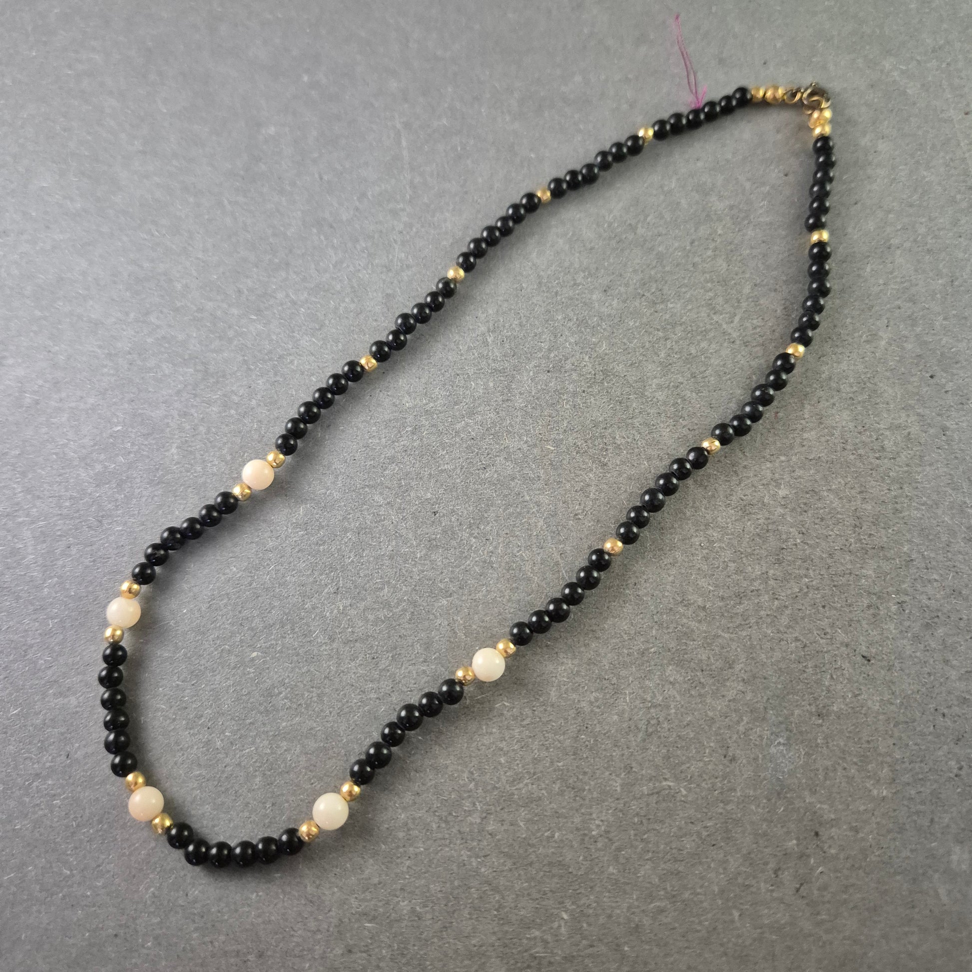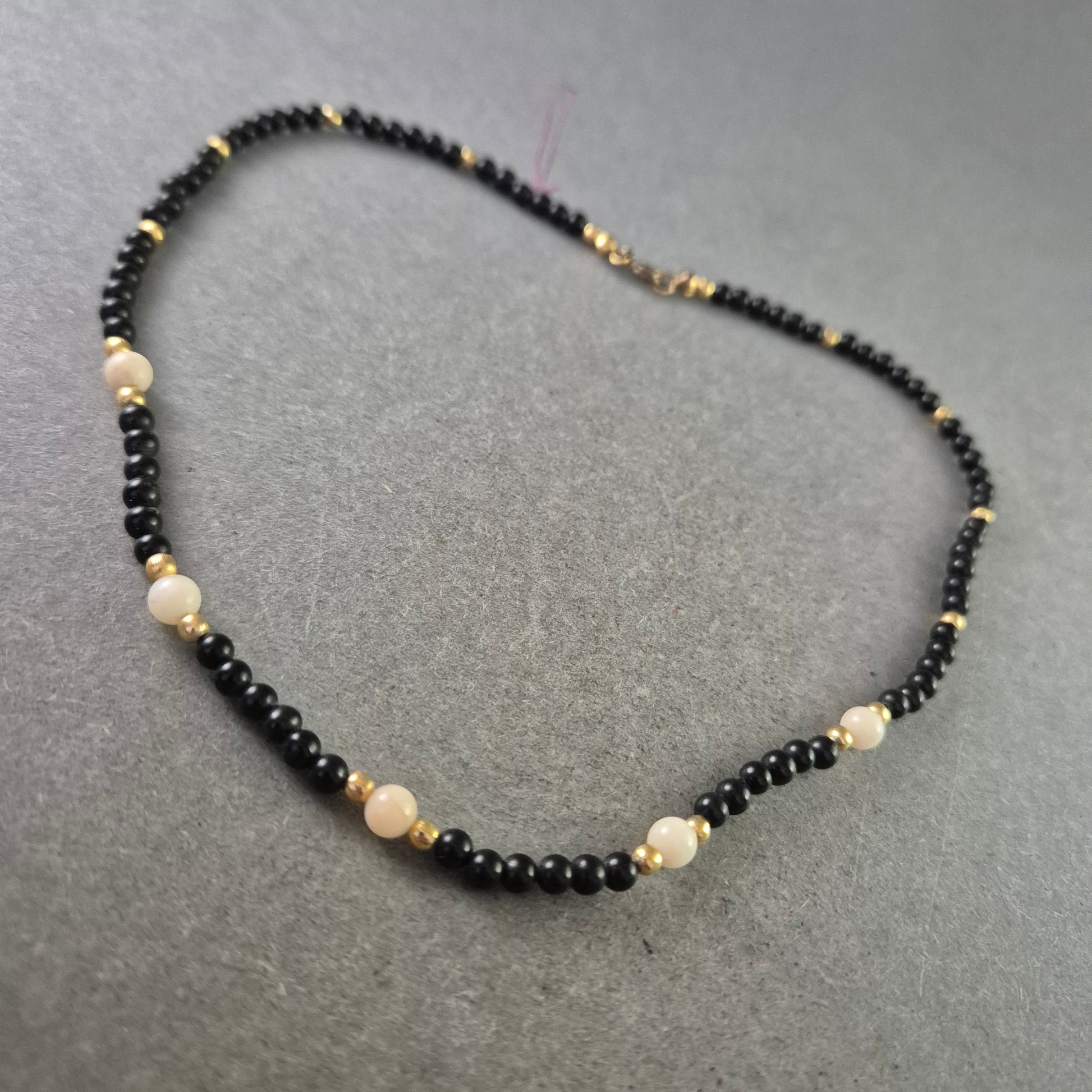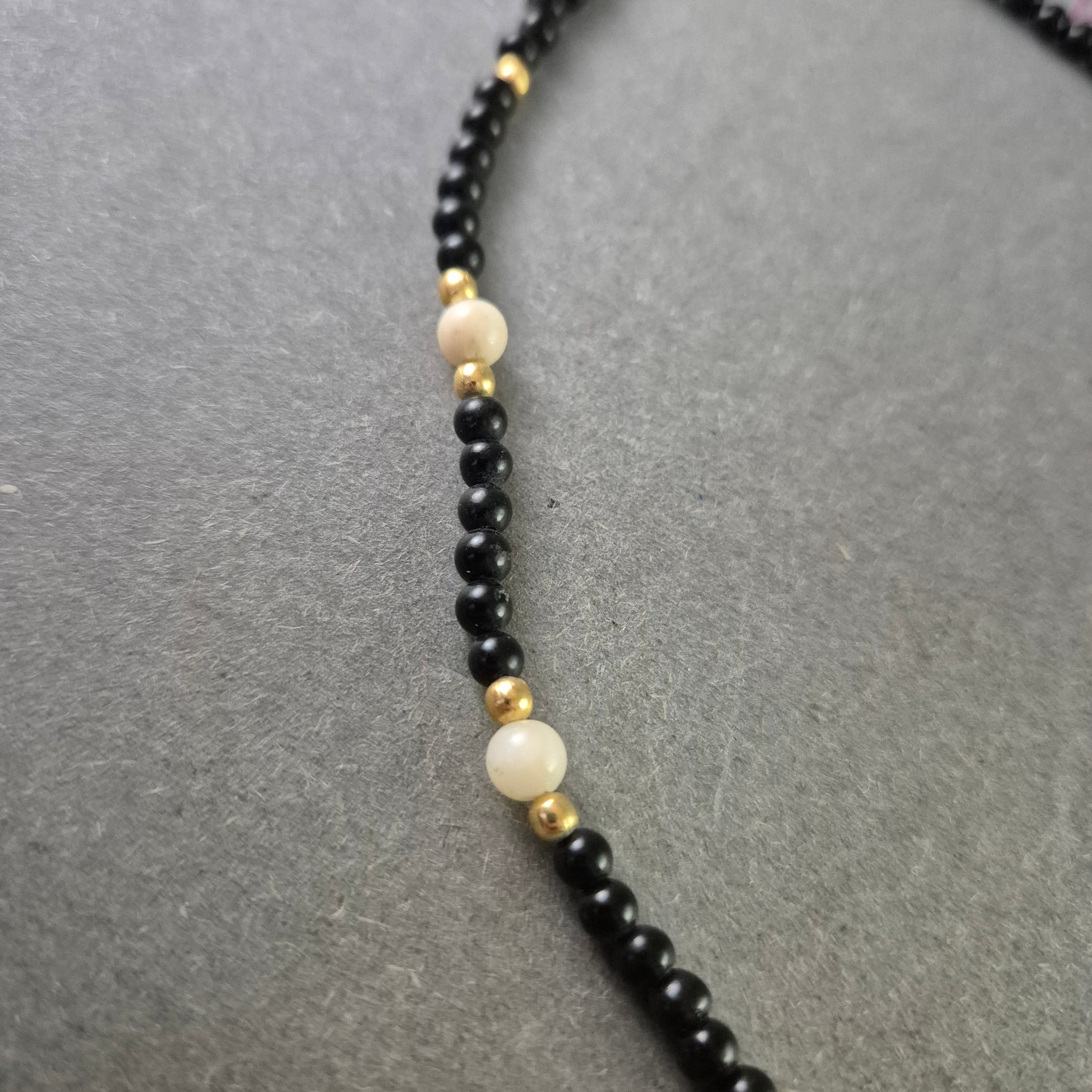 Feine Halskette mit schwarzen Perlen & goldfarbenen Akzenten