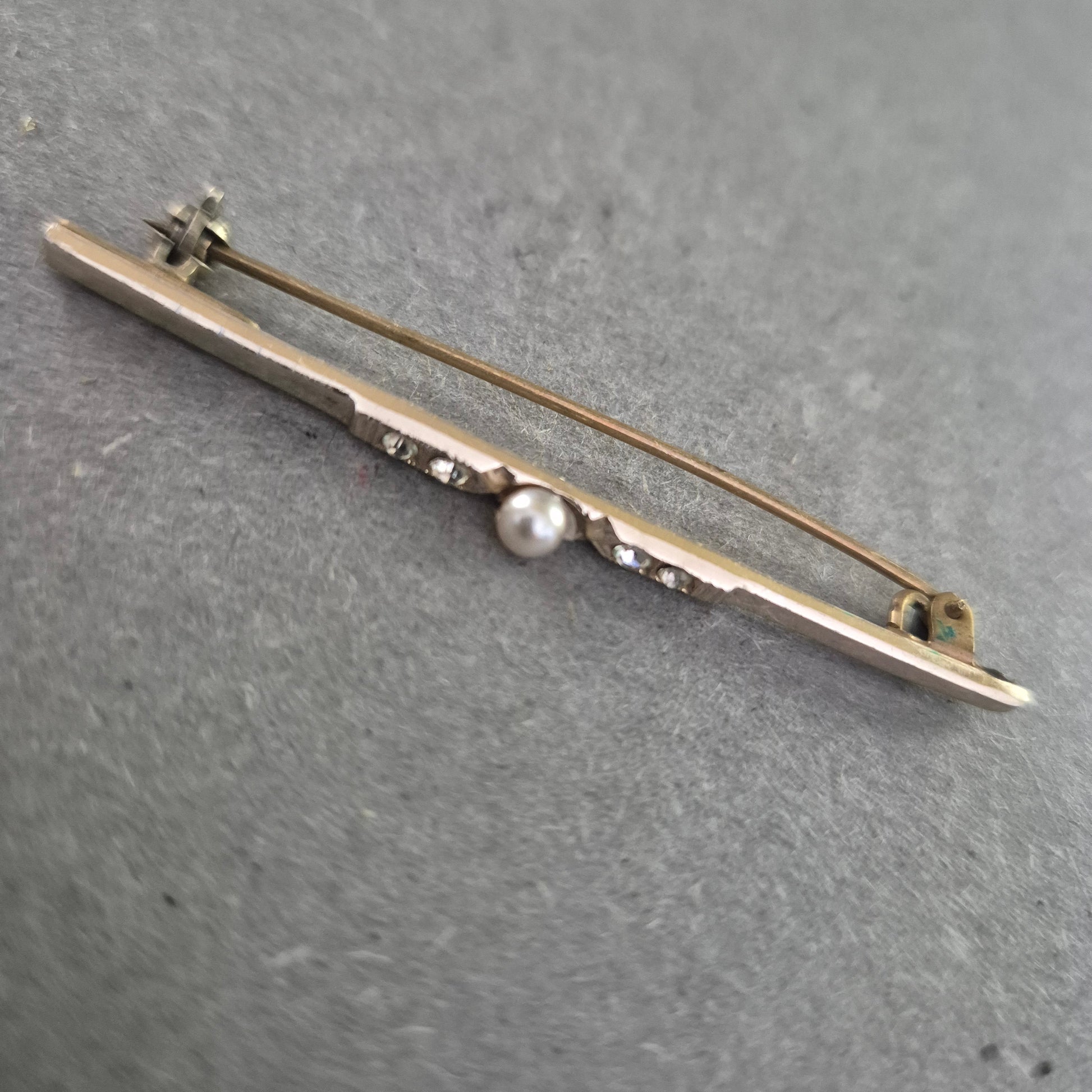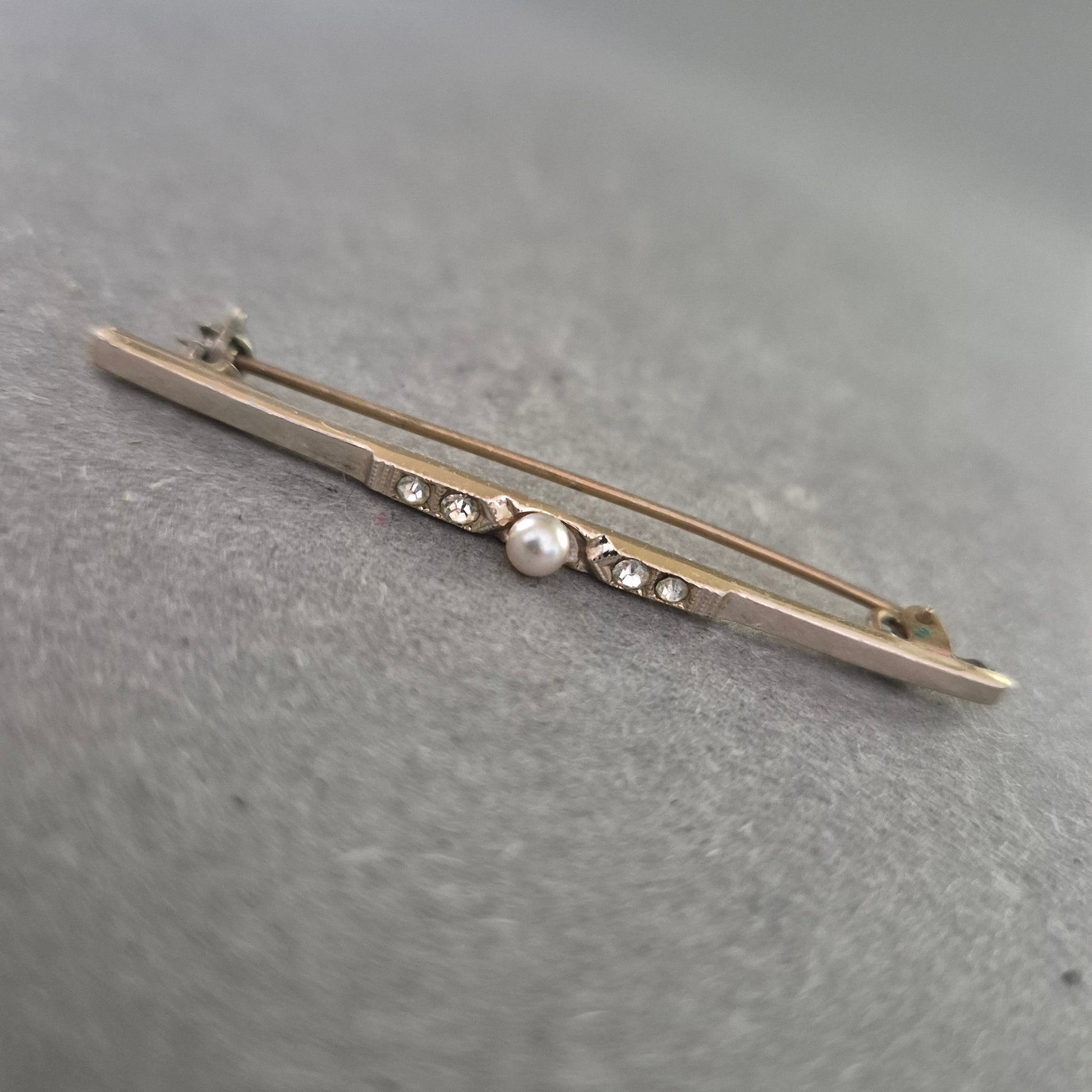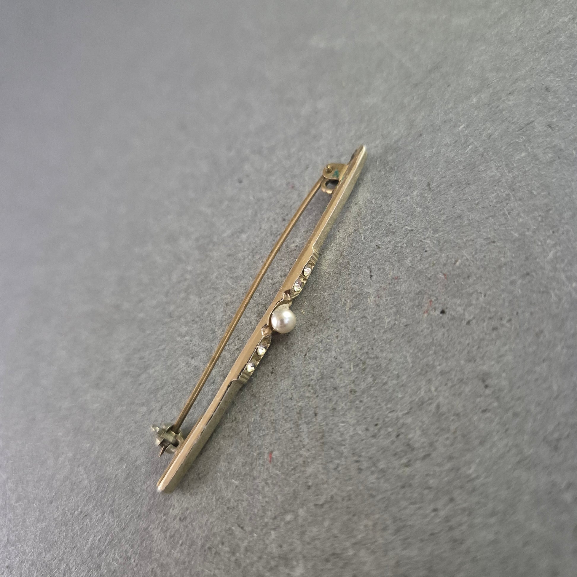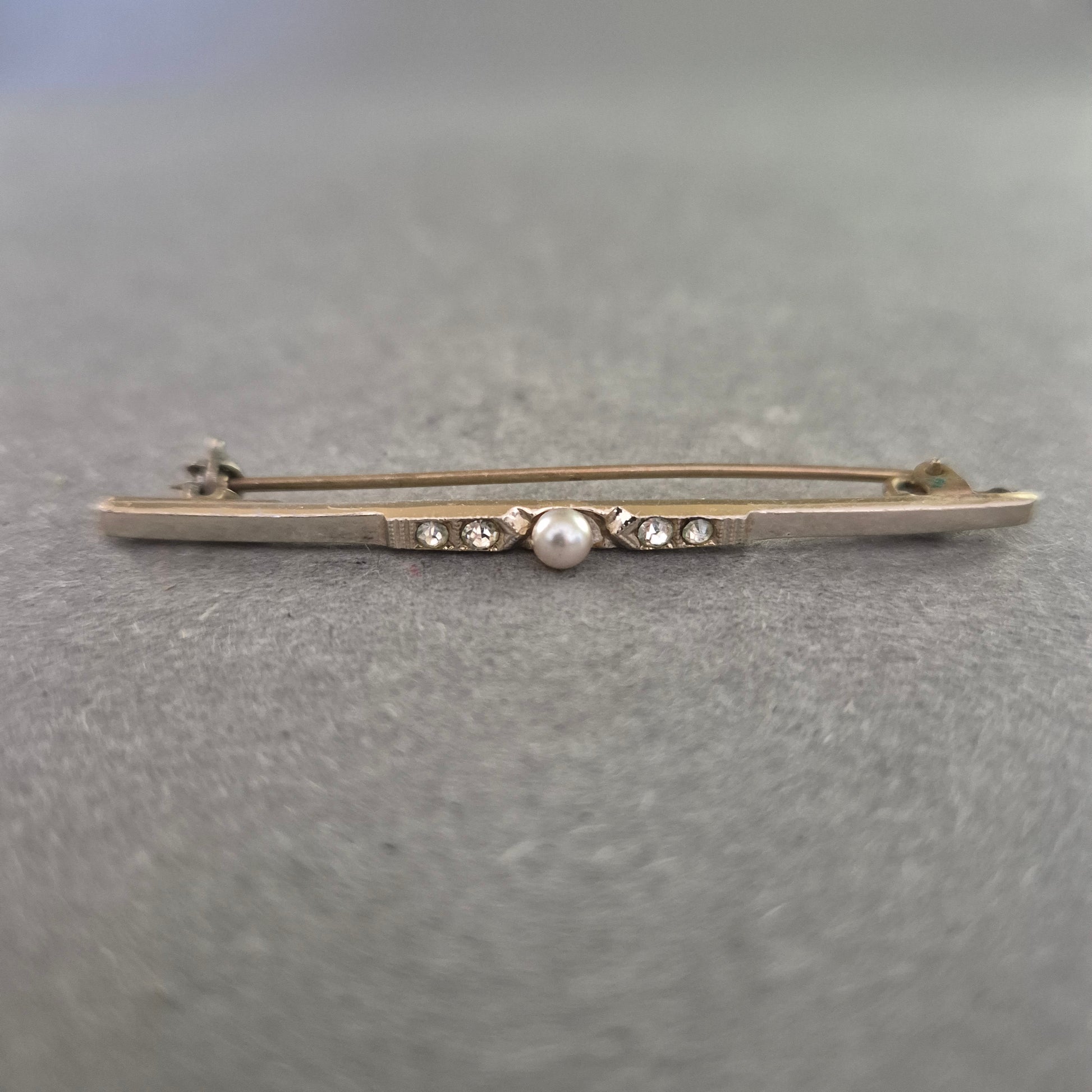 Feine Vintage-Brosche im Art-Déco-Stil mit Perle und Strasssteinen