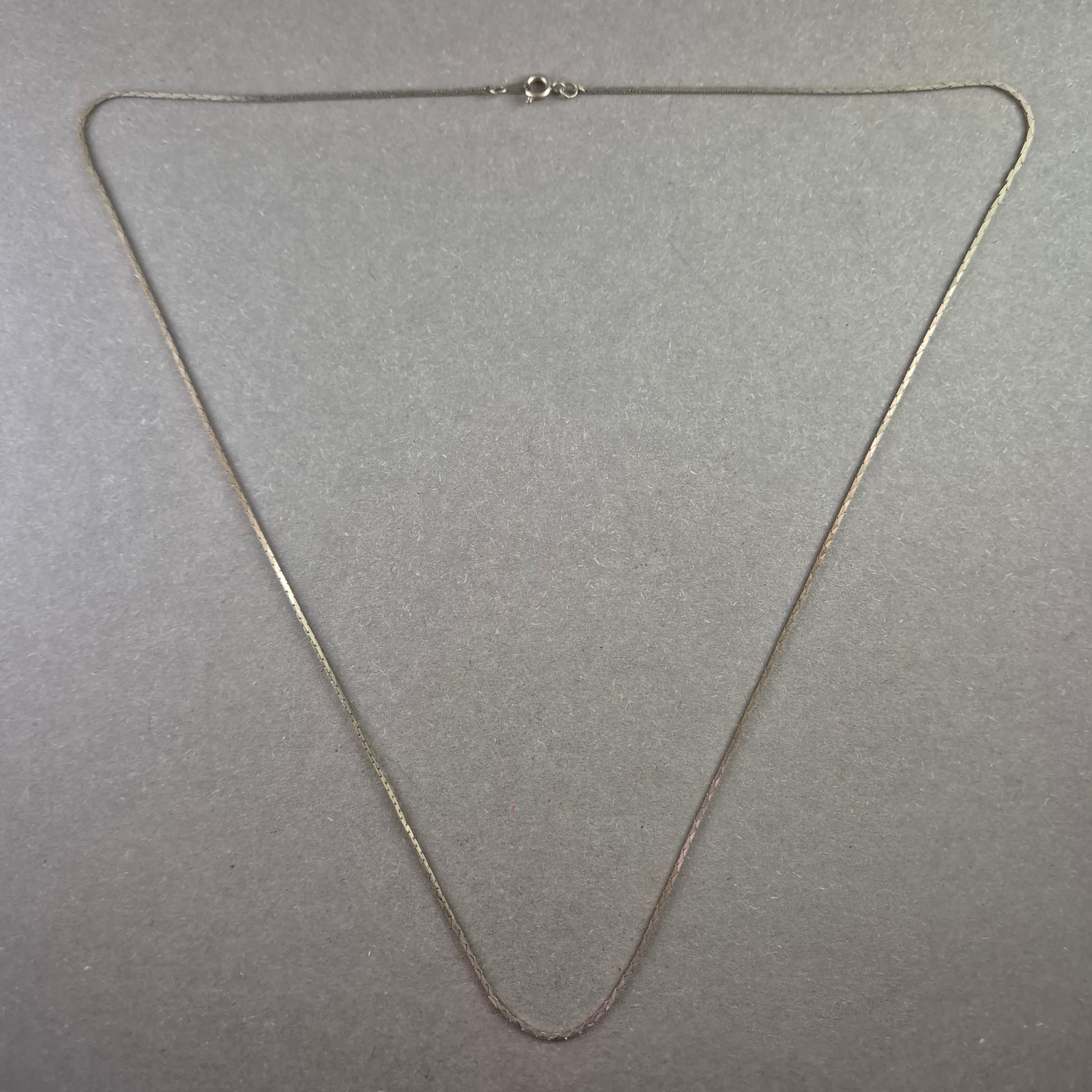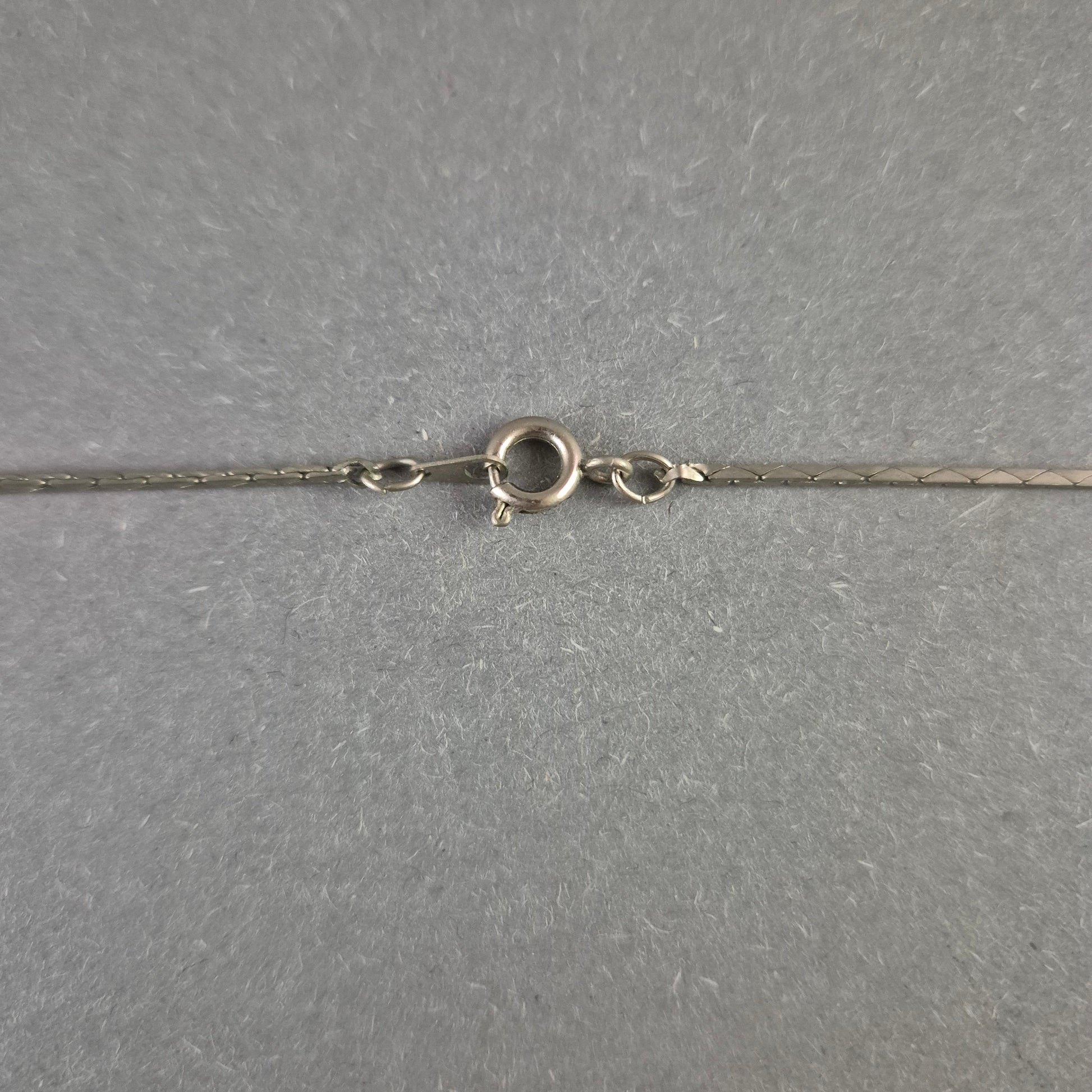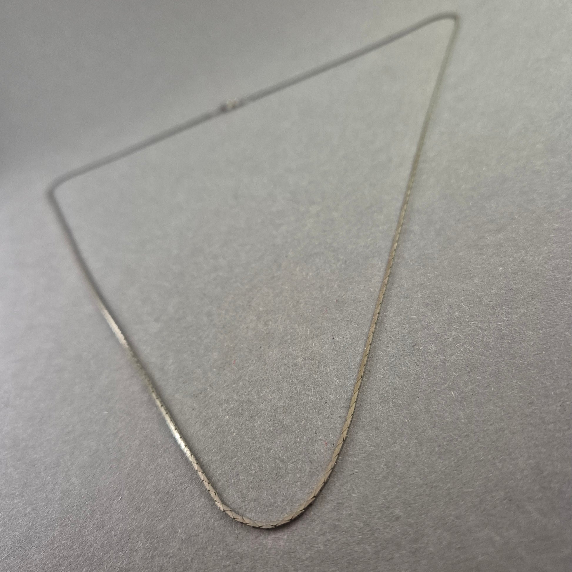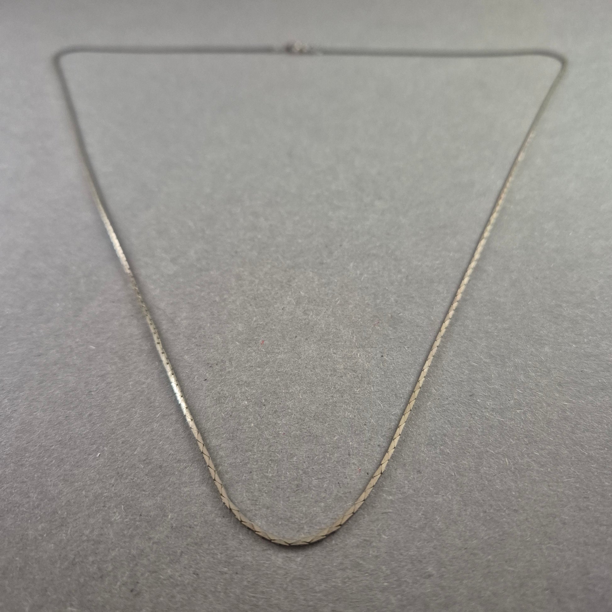 Diese filigrane Vintage-Halskette besticht durch ihre schlichte Eleganz und eine dezent strukturierte Oberfläche, die dem Schmuckstück einen edlen Glanz verleiht. Die Kette ist ideal als Solostück oder in Kombination mit einem zarten Anhänger tragbar. Dank ihres zeitlosen Designs eignet sie sich sowohl für den Alltag als auch für besondere Anlässe.
