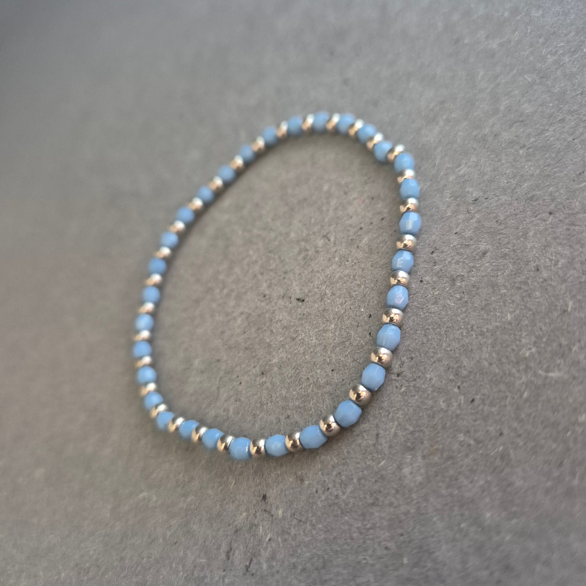 Feines Perlenarmband in Hellblau & Silber – Minimalistischer Boho-Style