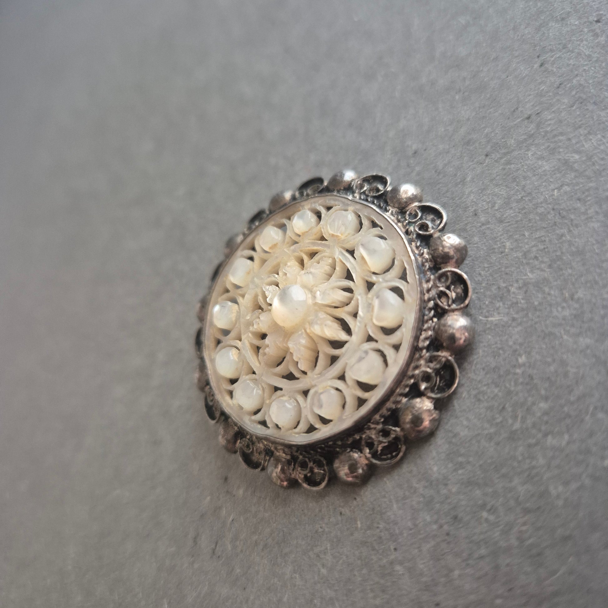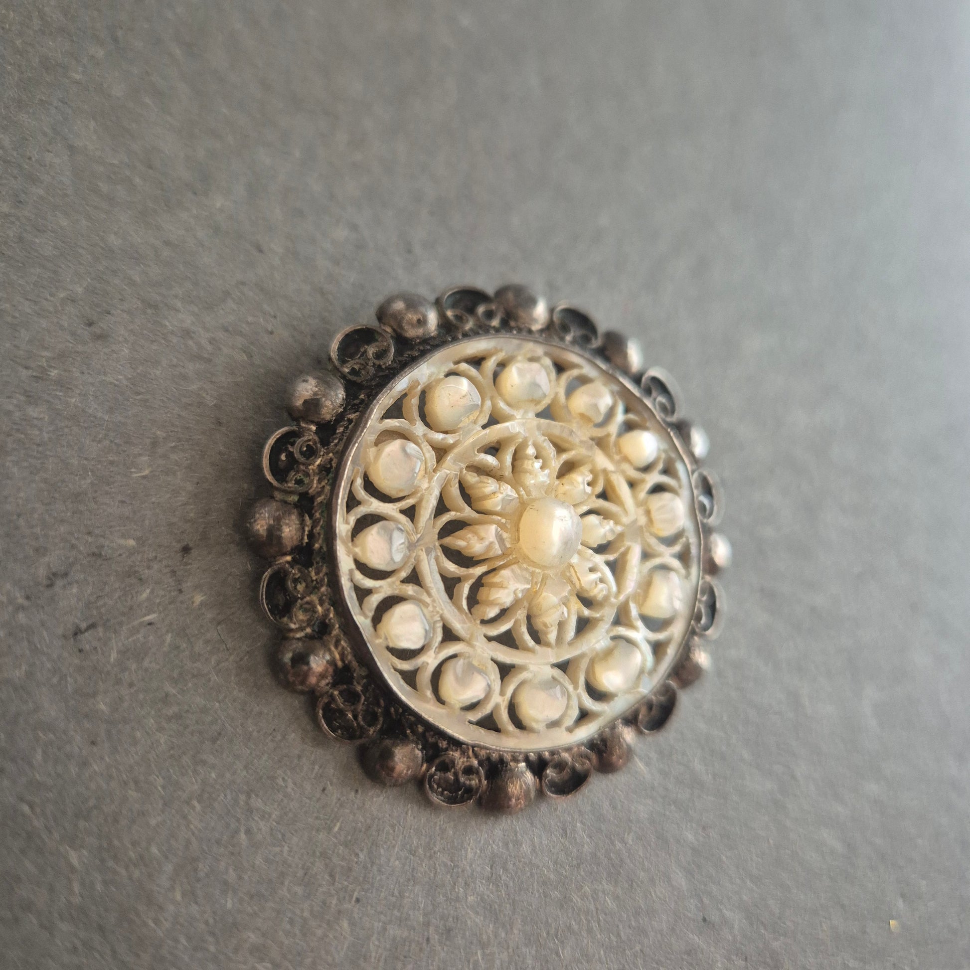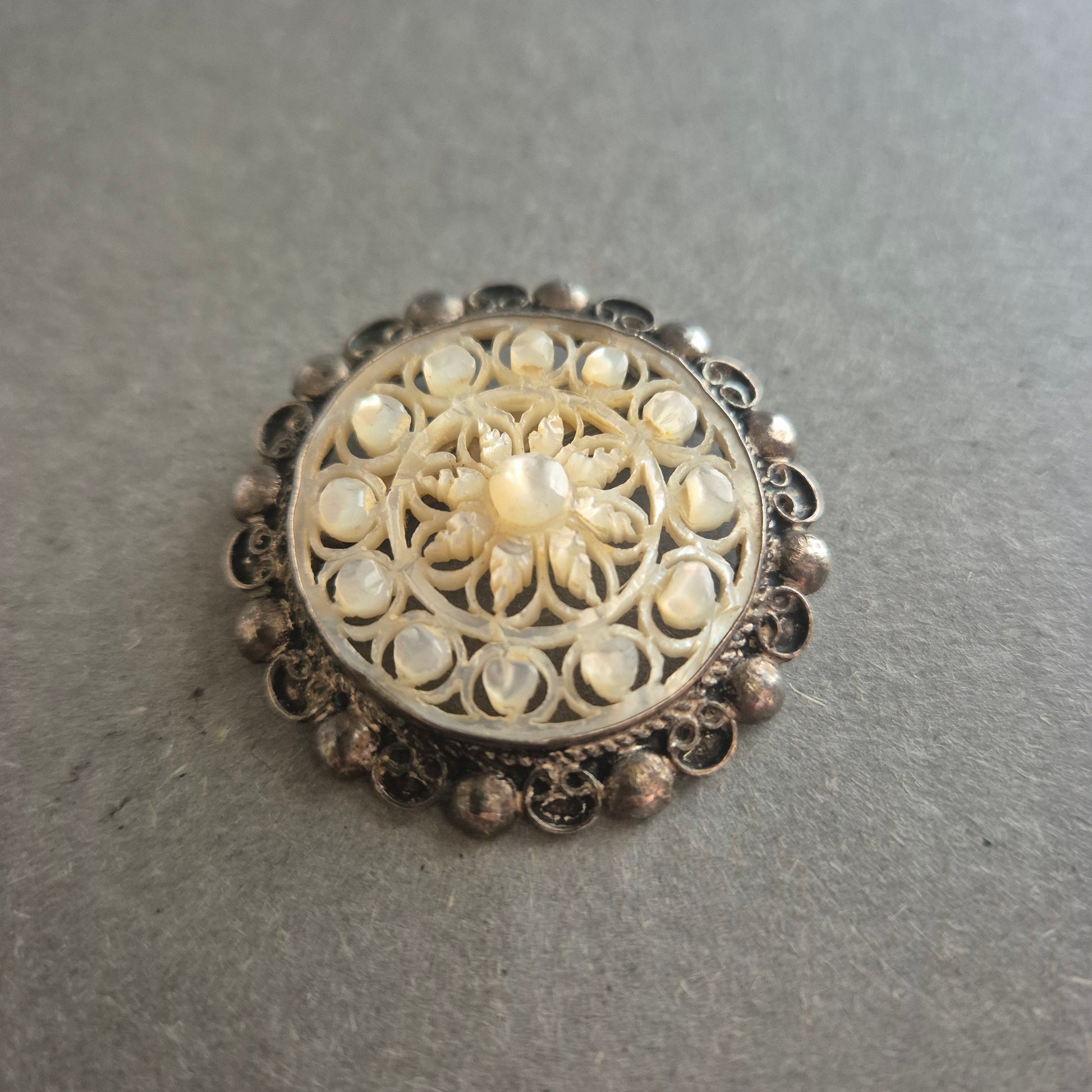 Filigrane Jerusalem-Brosche aus 925er Silber – Mit Perlmutteinlage