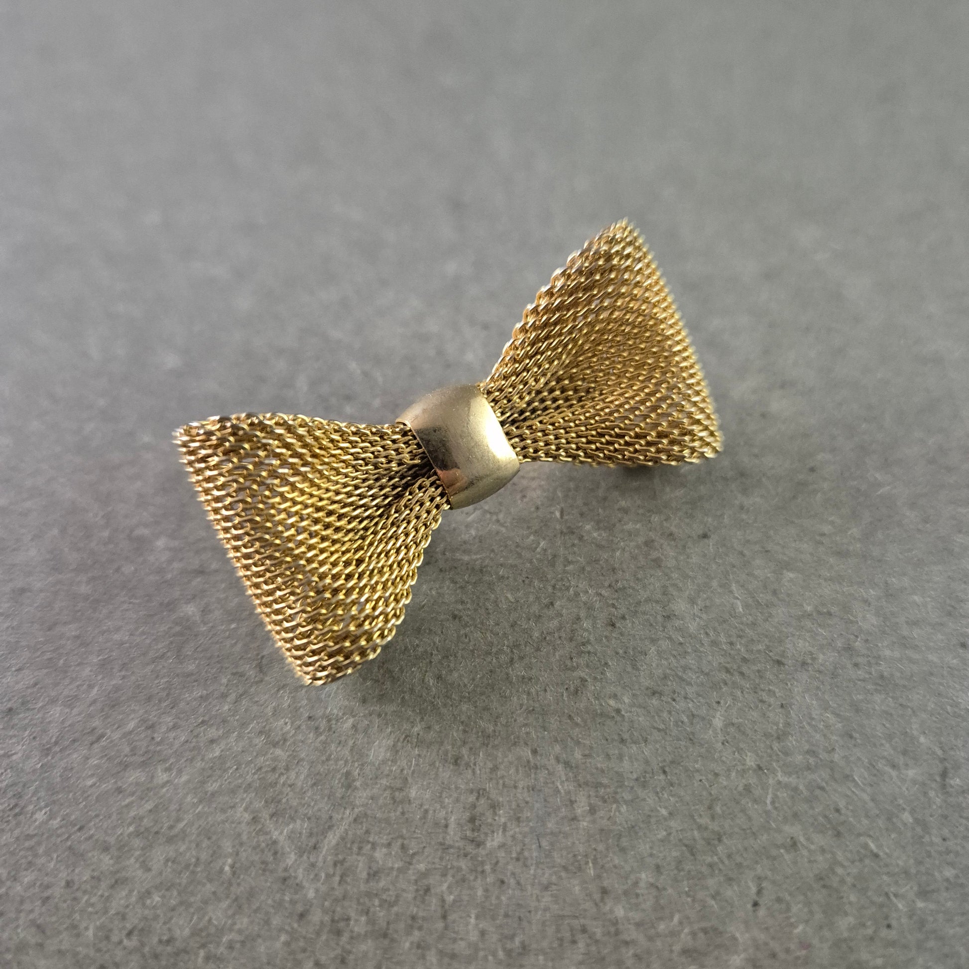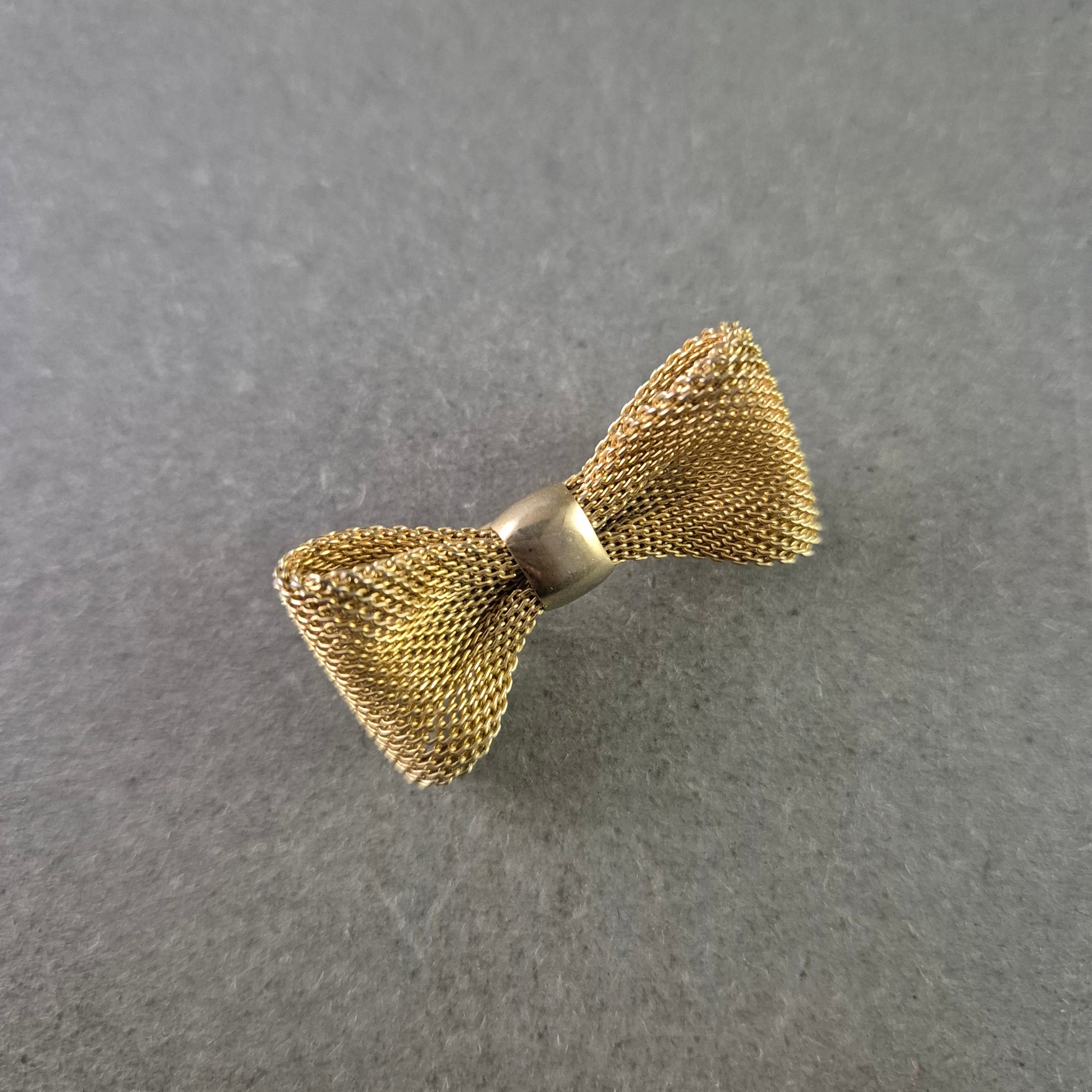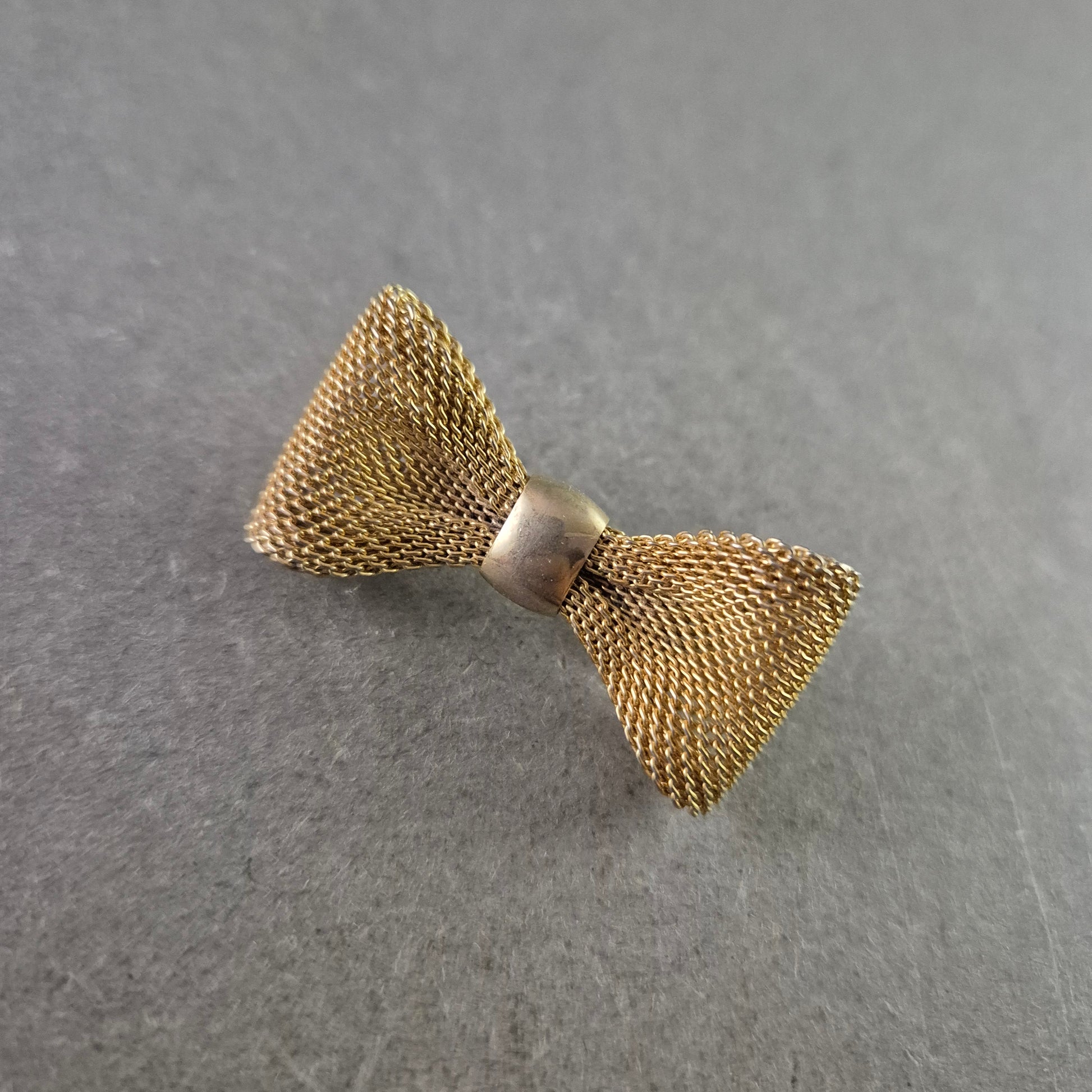 Diese elegante Brosche in Schleifenform besticht durch ihr filigranes Maschendesign. Gefertigt aus goldfarbenem Metallgeflecht, vereint sie Schlichtheit und Raffinesse. Ob an Blazer, Kleid oder Schal – diese Brosche setzt einen charmanten Akzent und rundet jedes Outfit stilvoll ab.