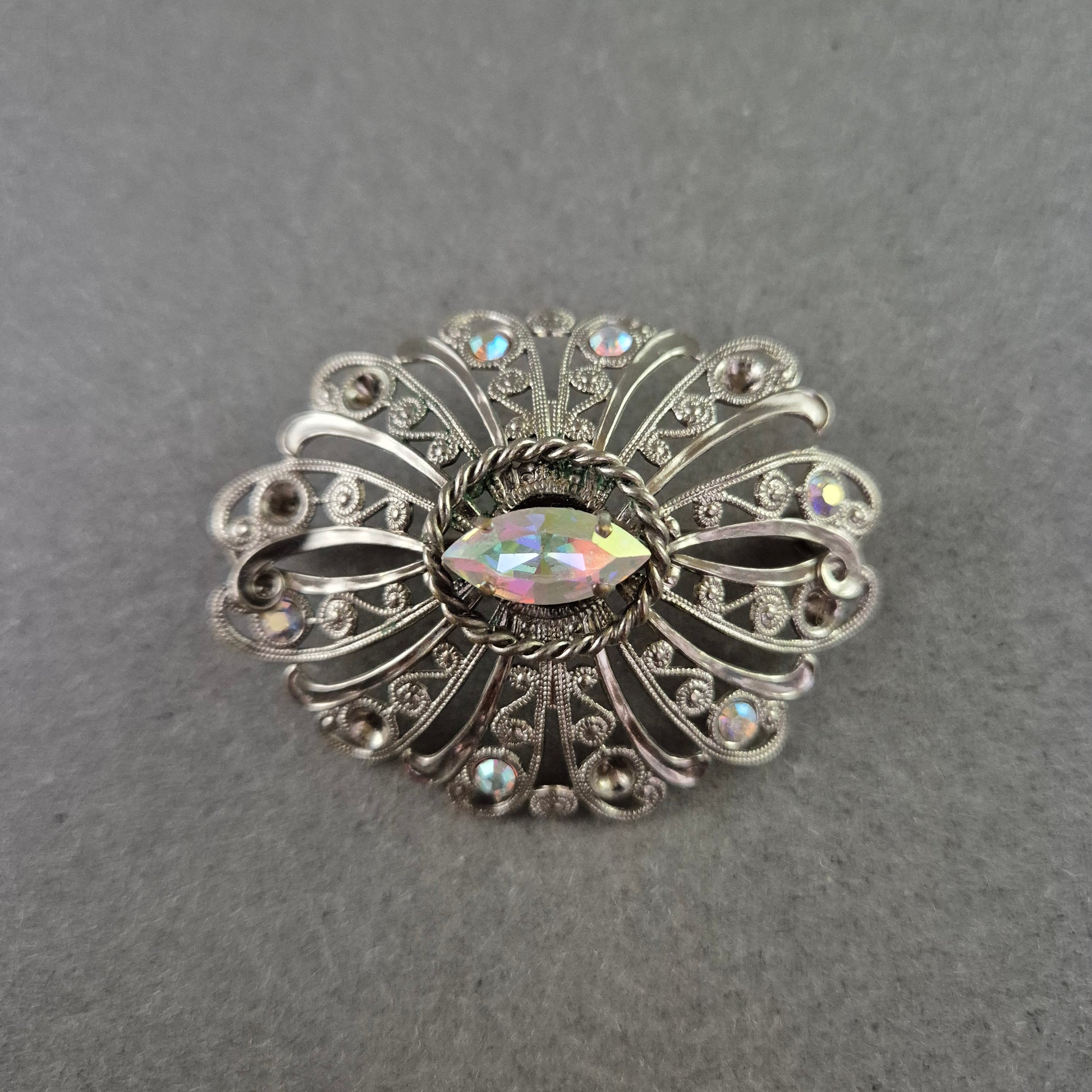 Filigrane Vintage-Brosche mit irisierendem Stein – Ovales Design