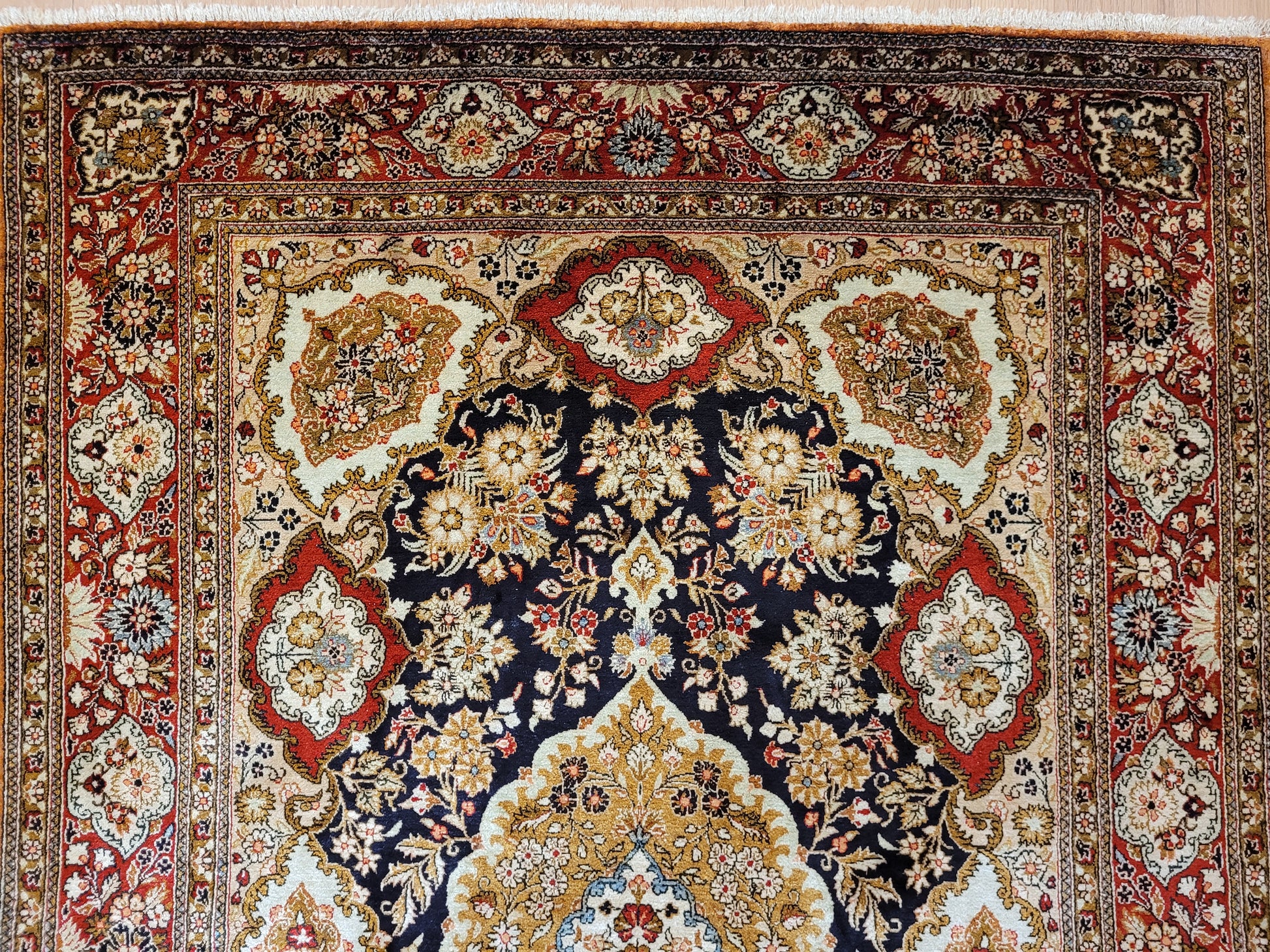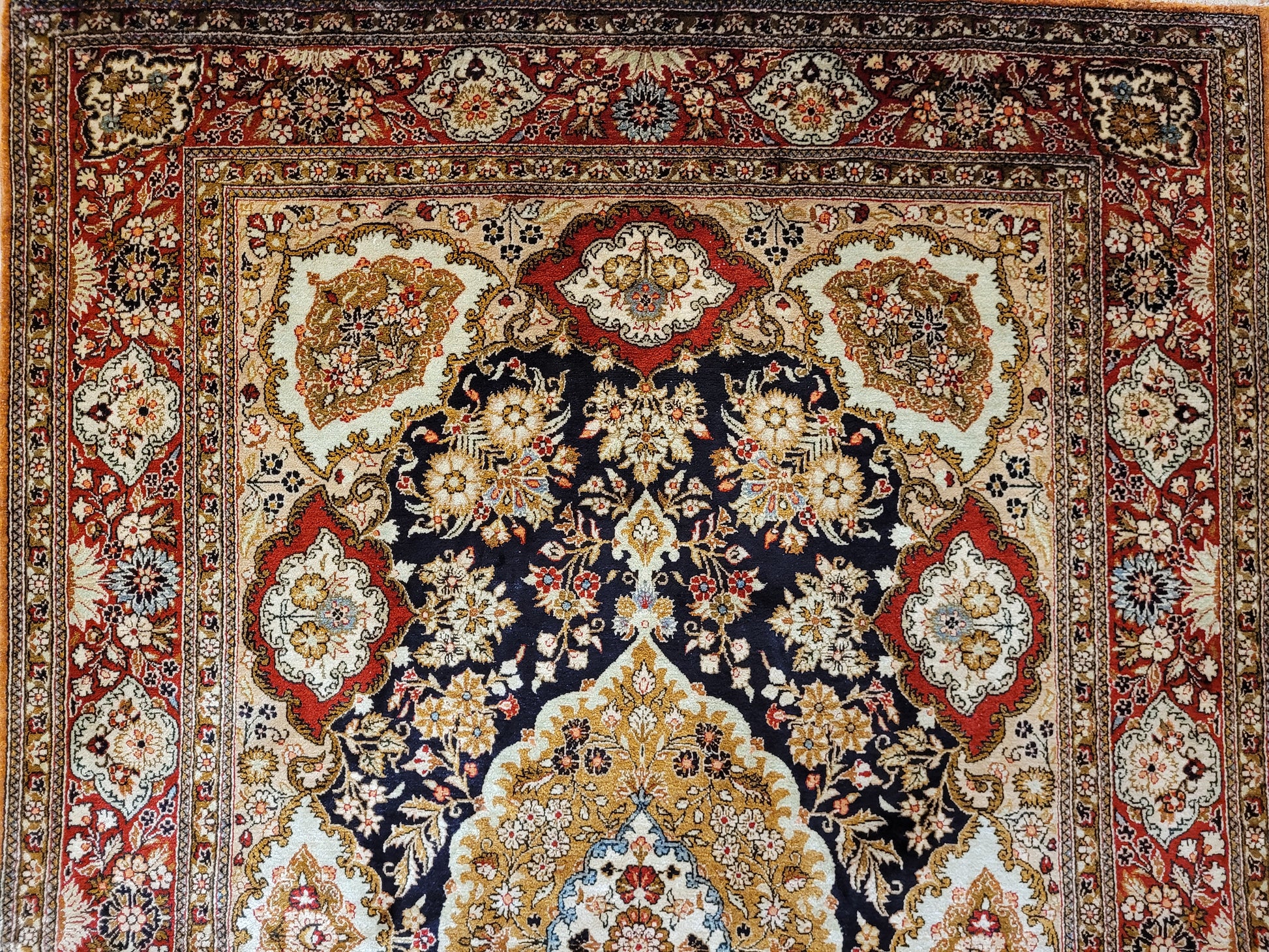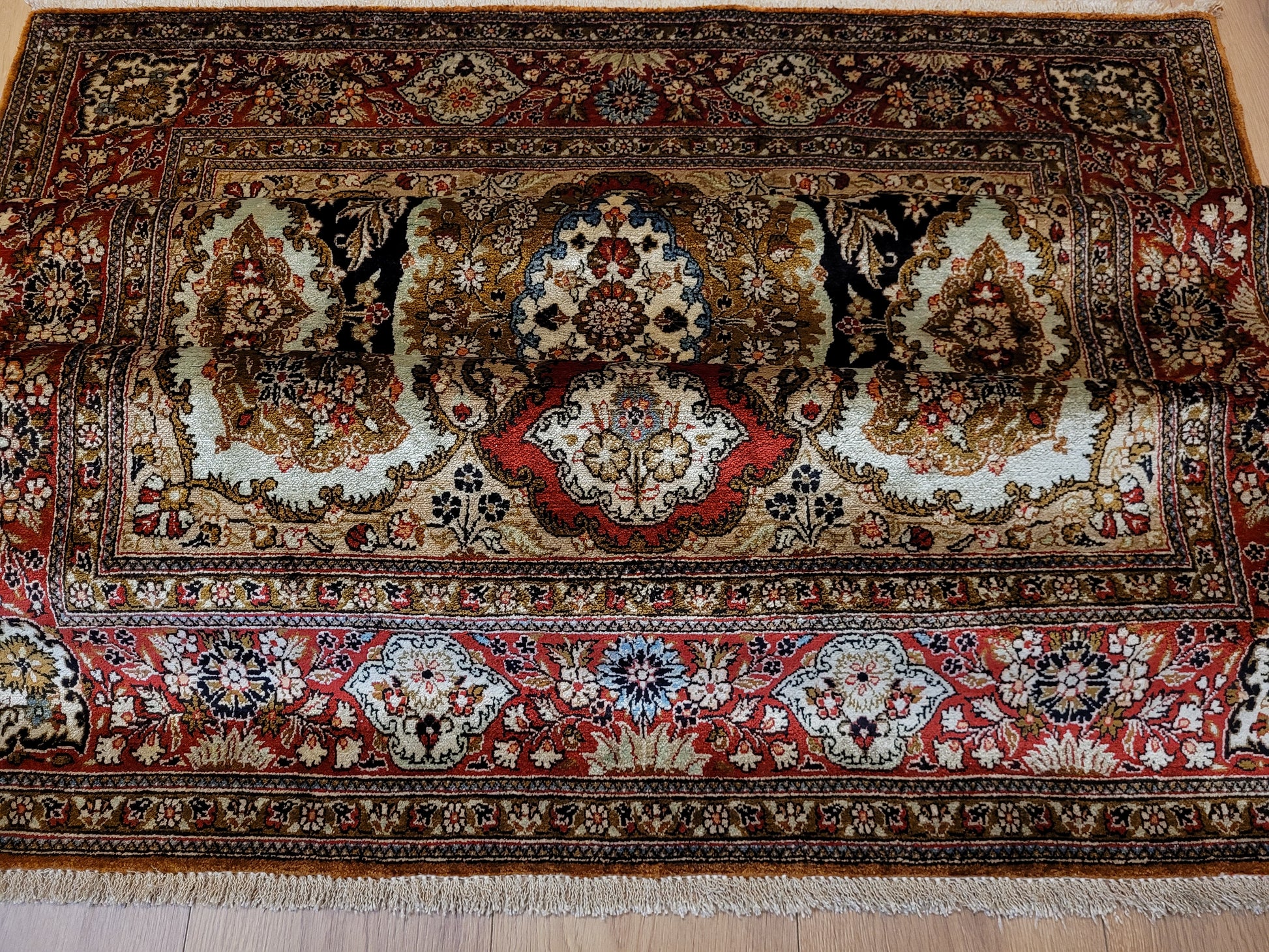 Ghom Seide Teppich Medaillon Blumenornamente feine Knüpfung