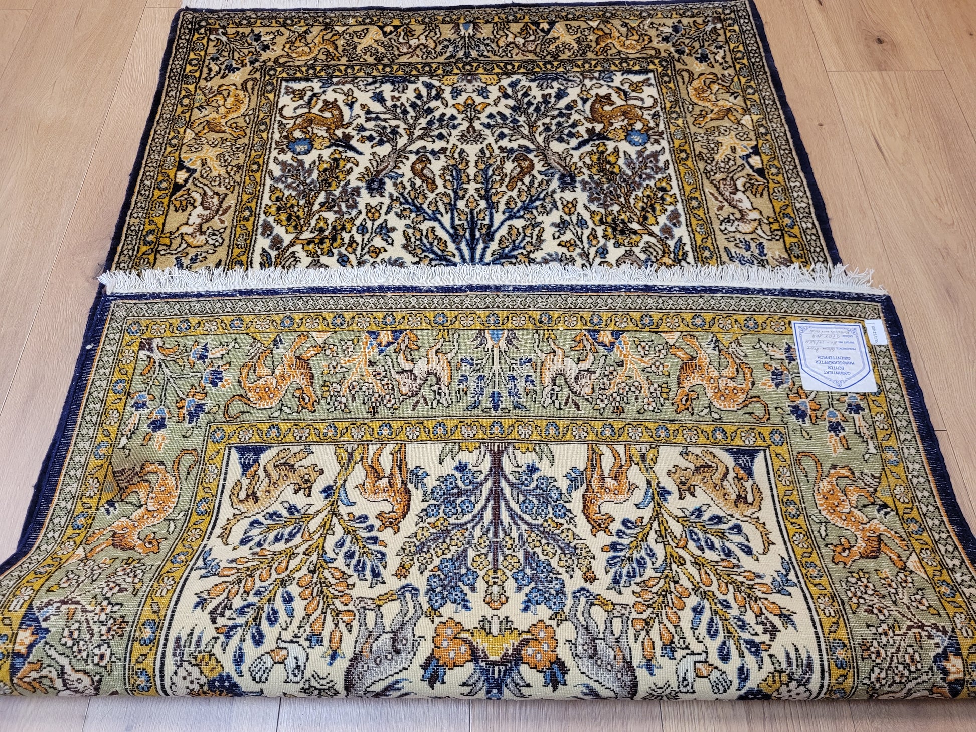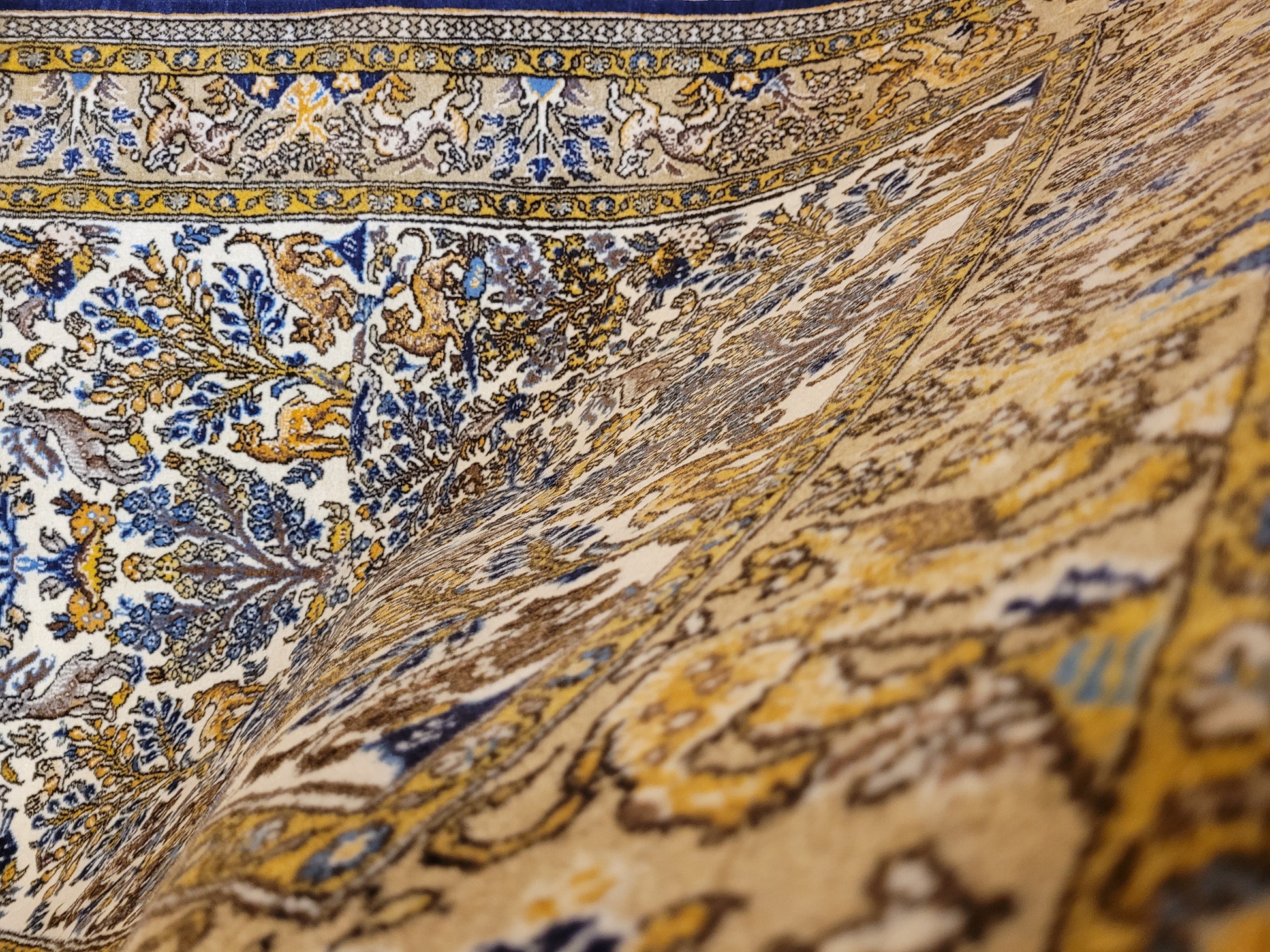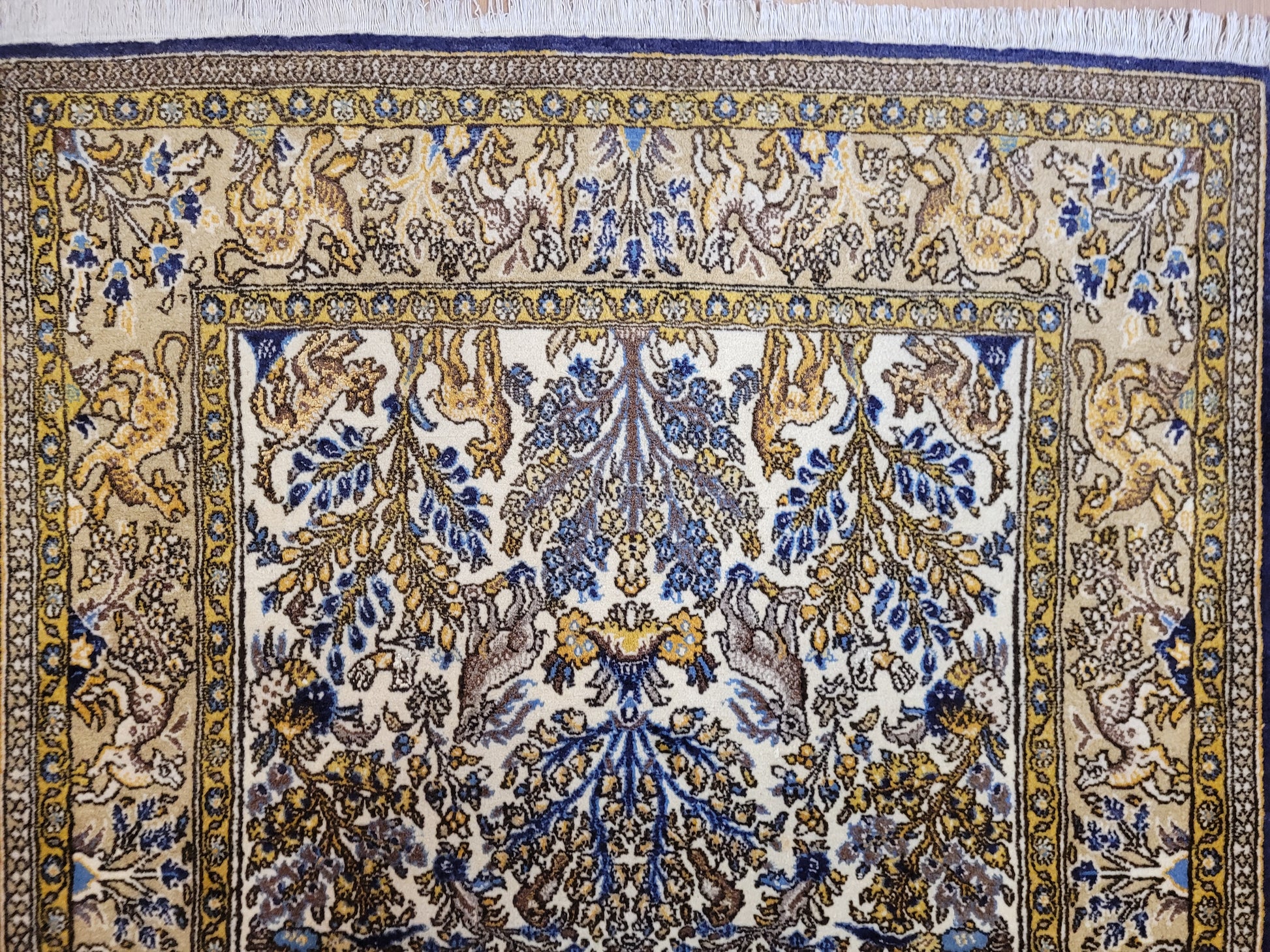 Ghom Teppich Korkwolle auf Seide Tierdarstellungen feine Knüpfung