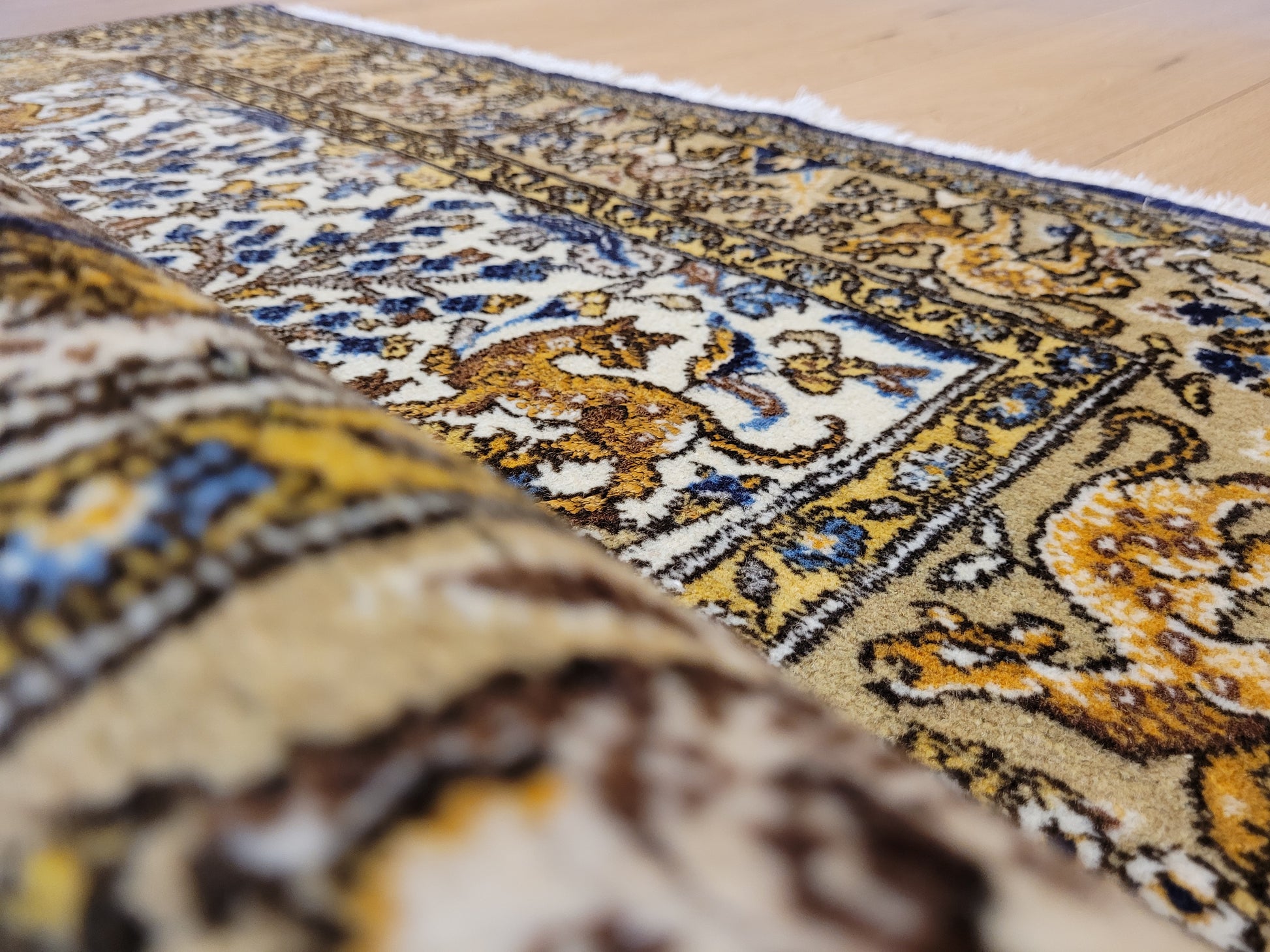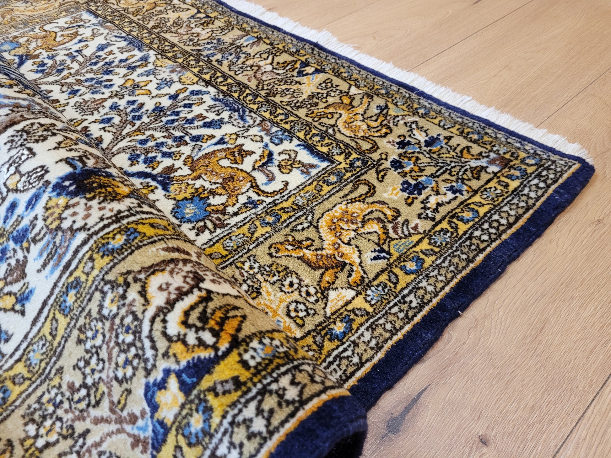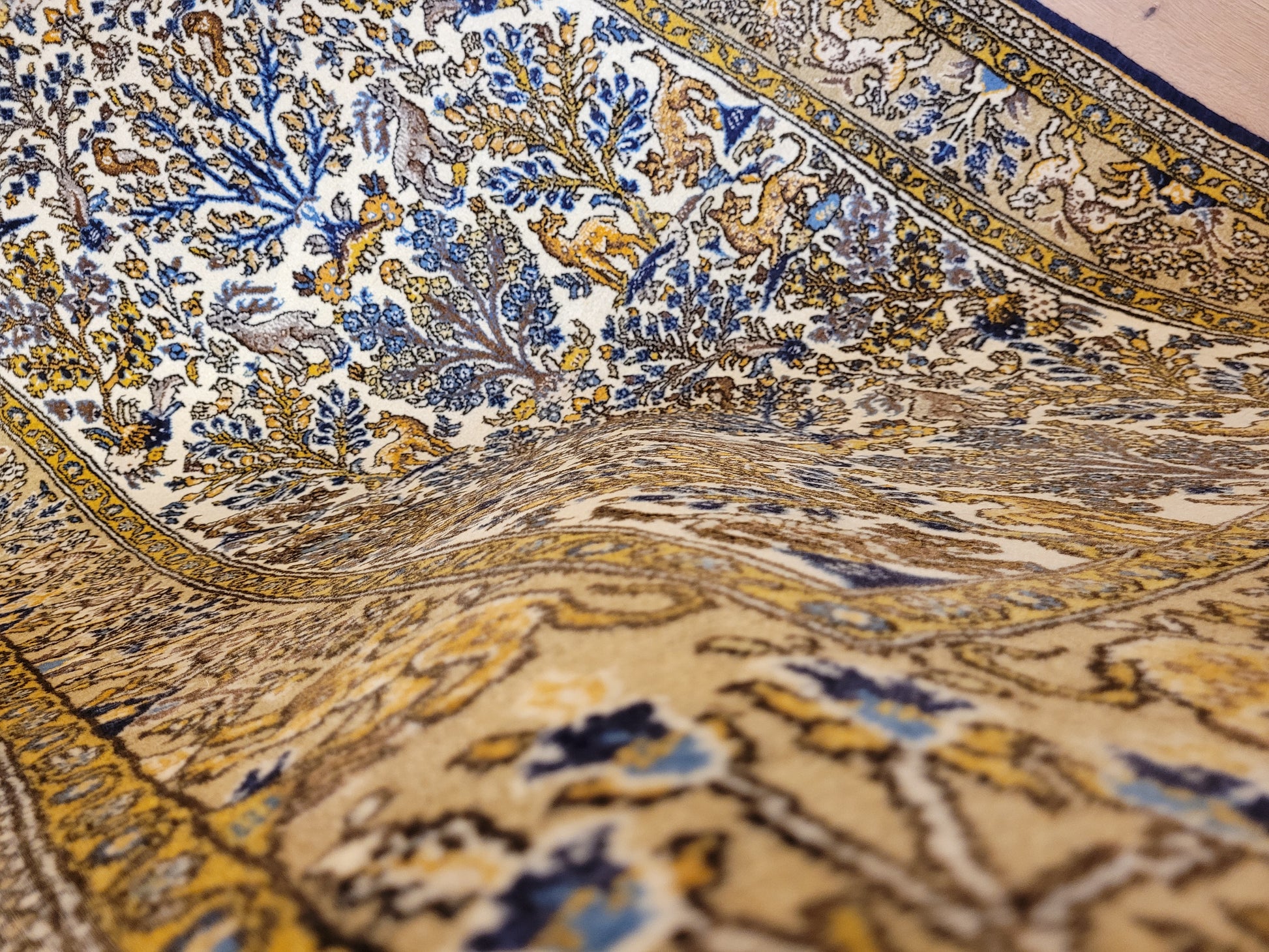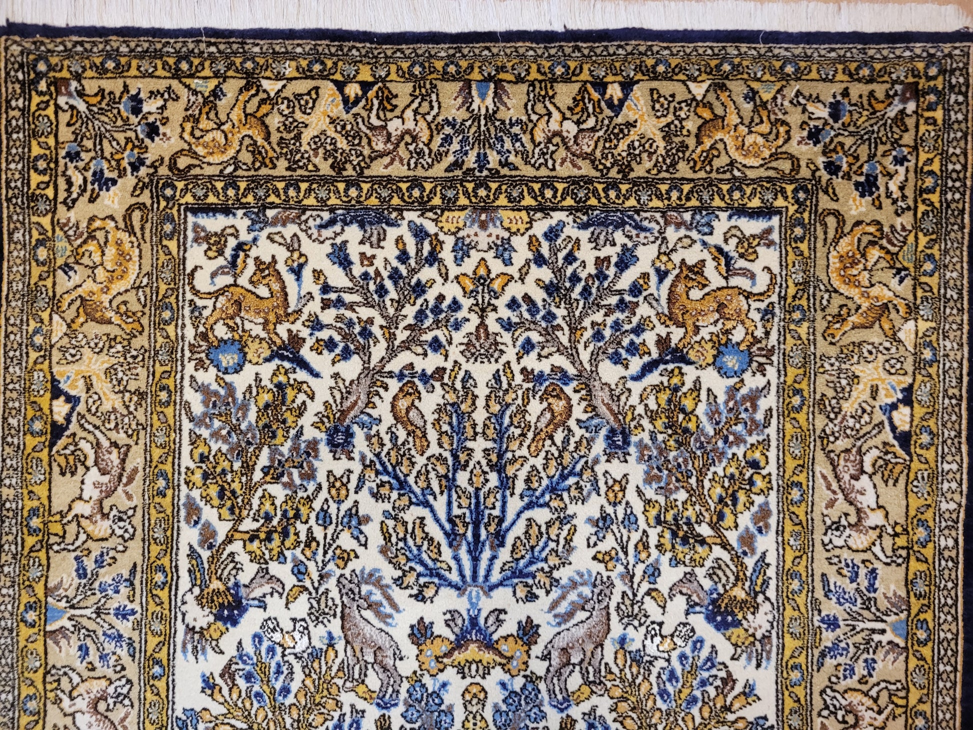 Ghom Teppich Korkwolle auf Seide Tierdarstellungen feine Knüpfung