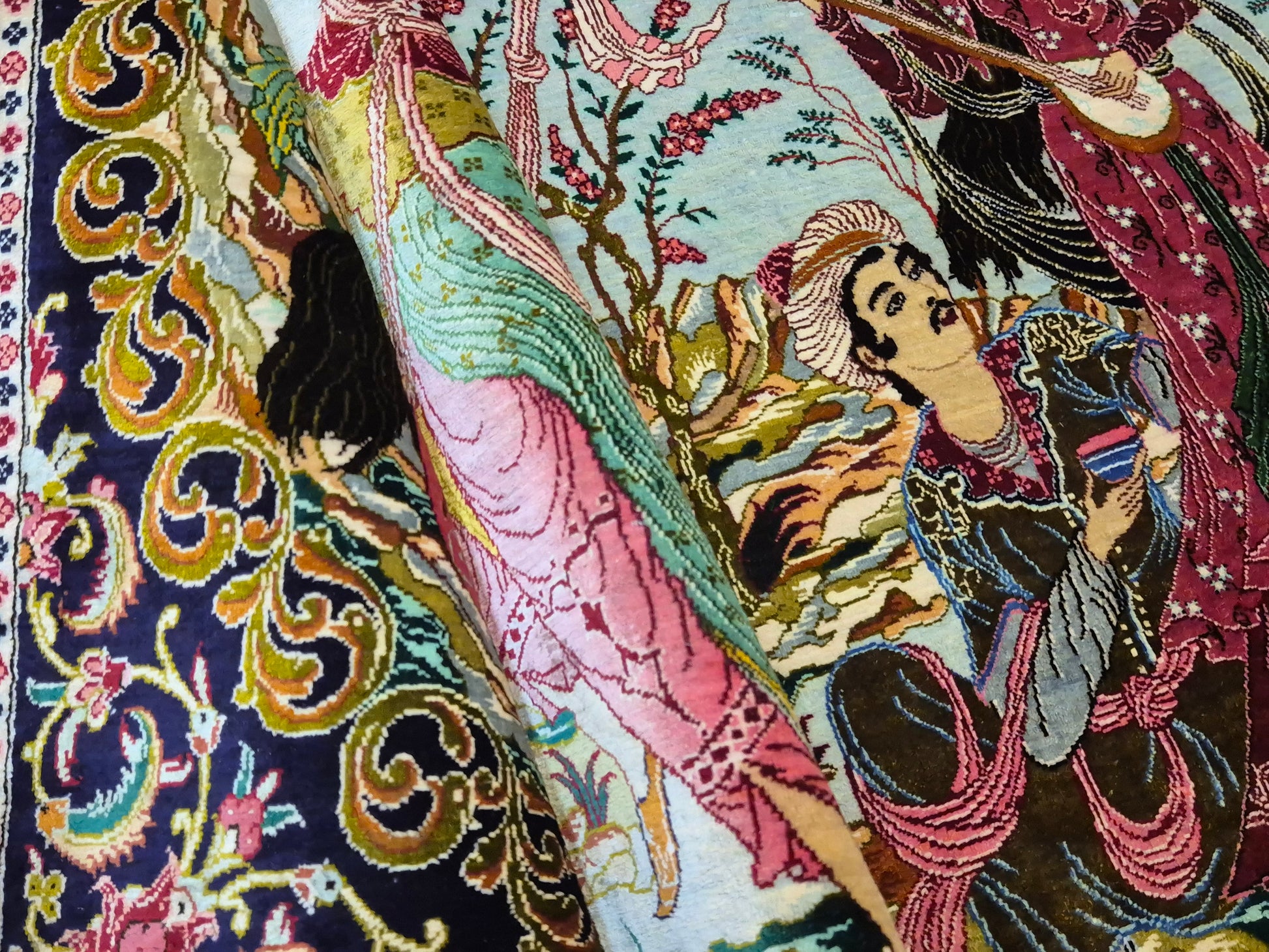 Ghom Teppich reine Seide figürliche Darstellung feine Knüpfung