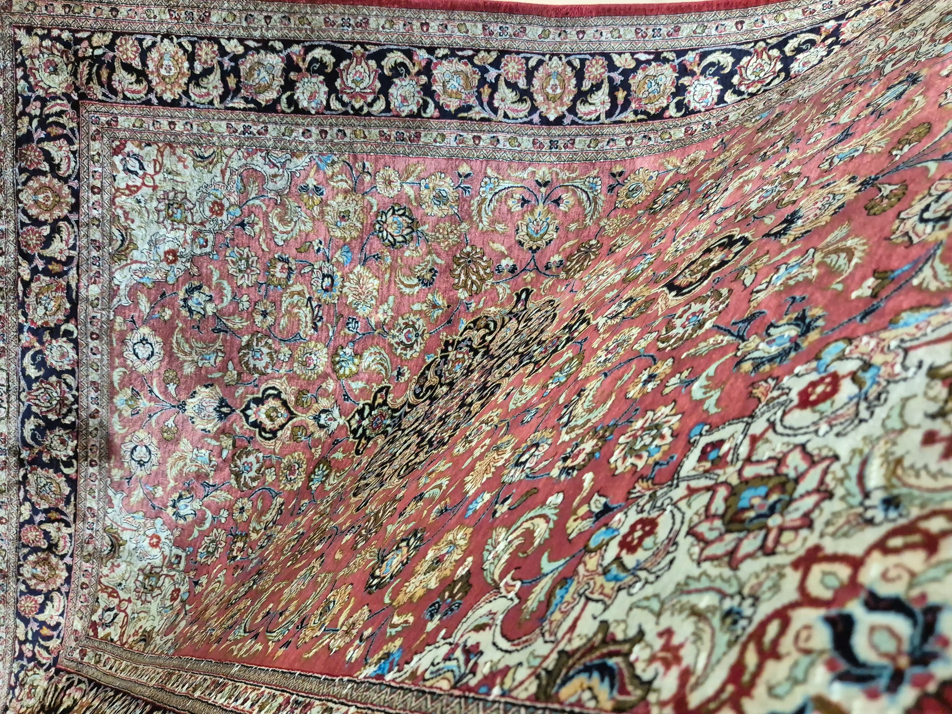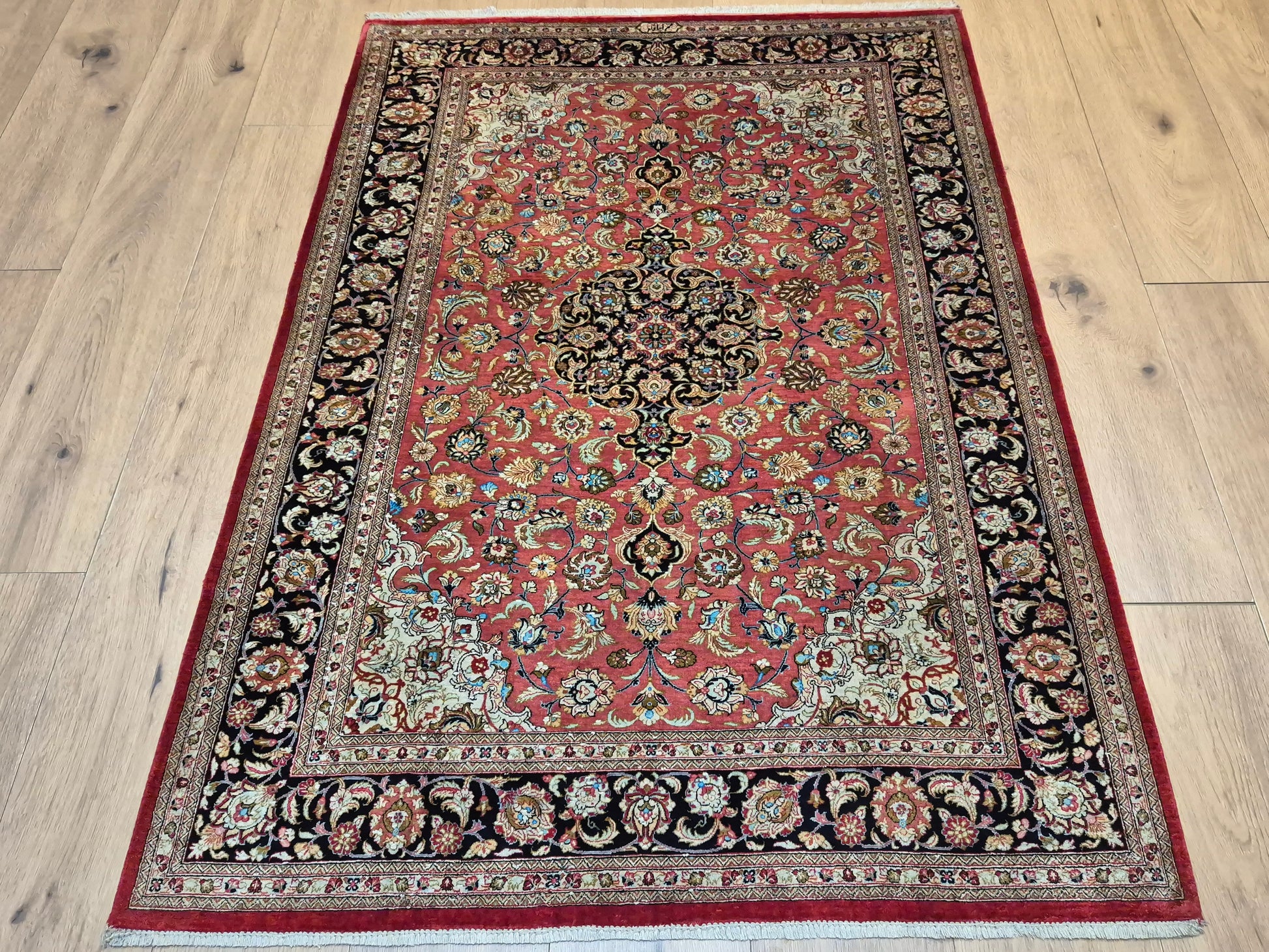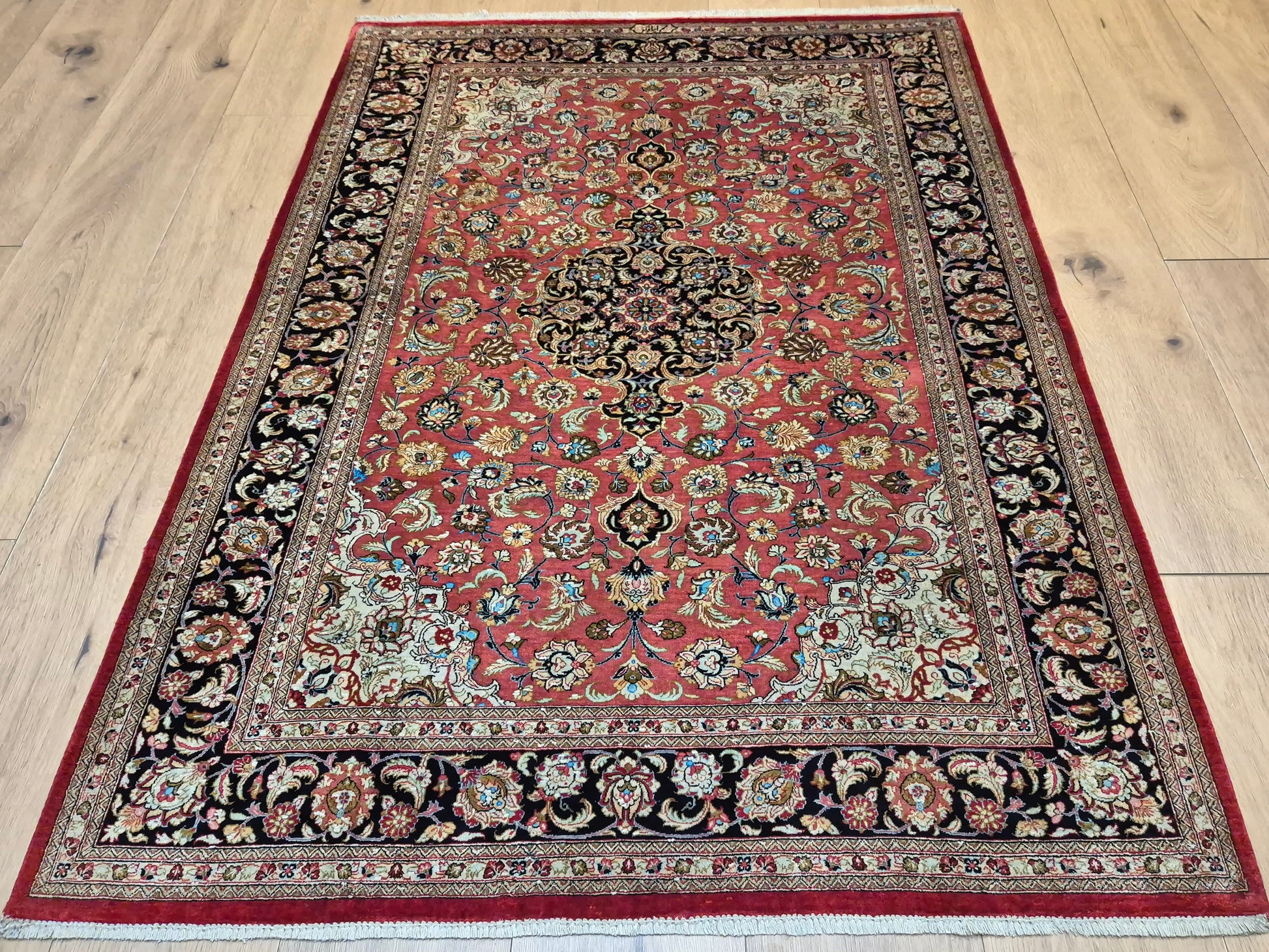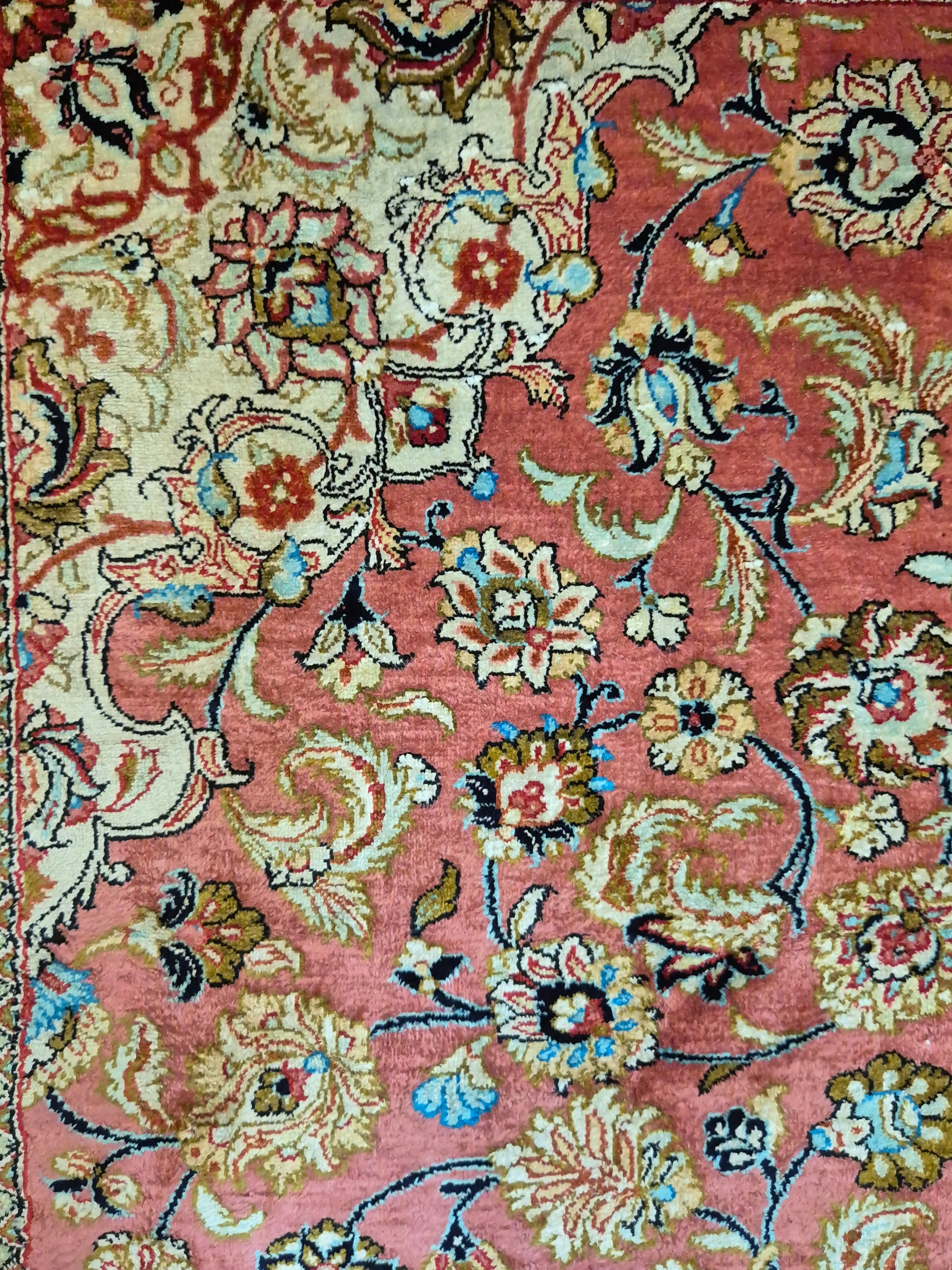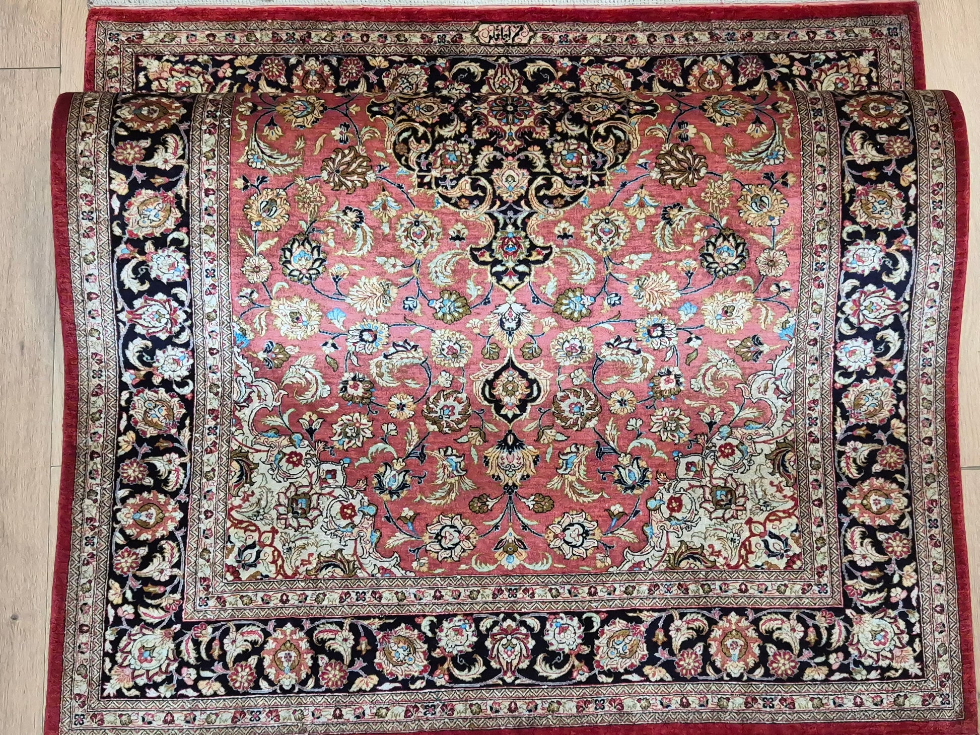 Ghom Teppich Seide auf Seide signiert floral fein