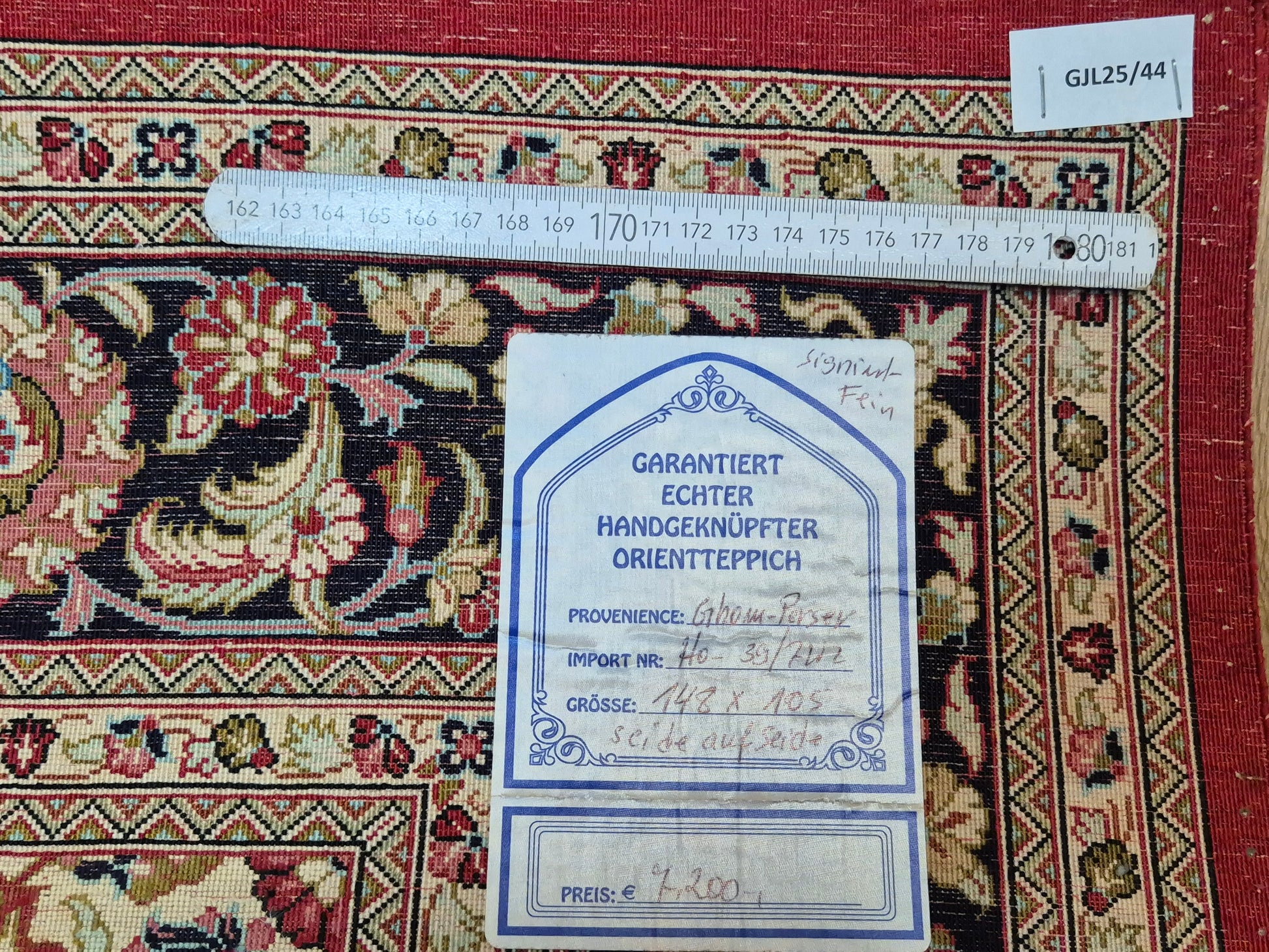 • Signatur im oberen Bereich als Zeichen meisterhafter Knüpfkunst